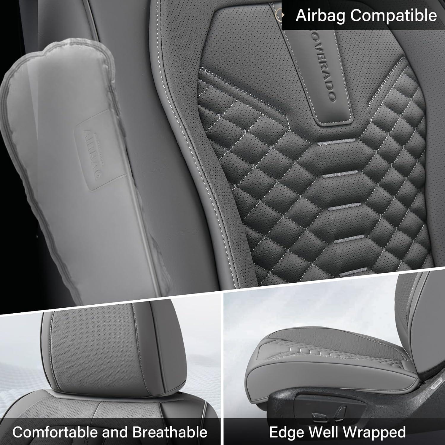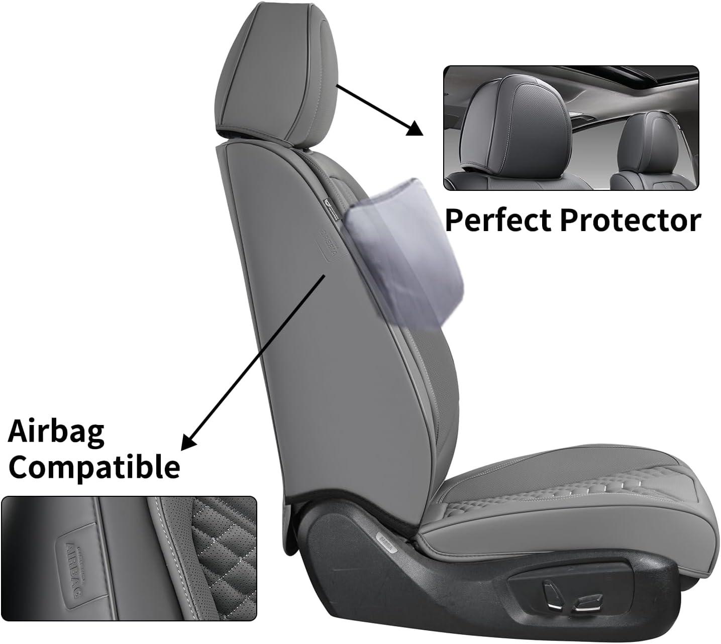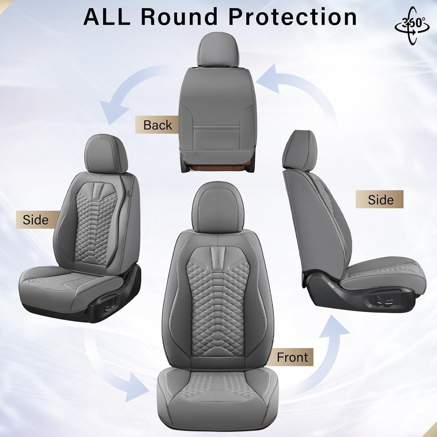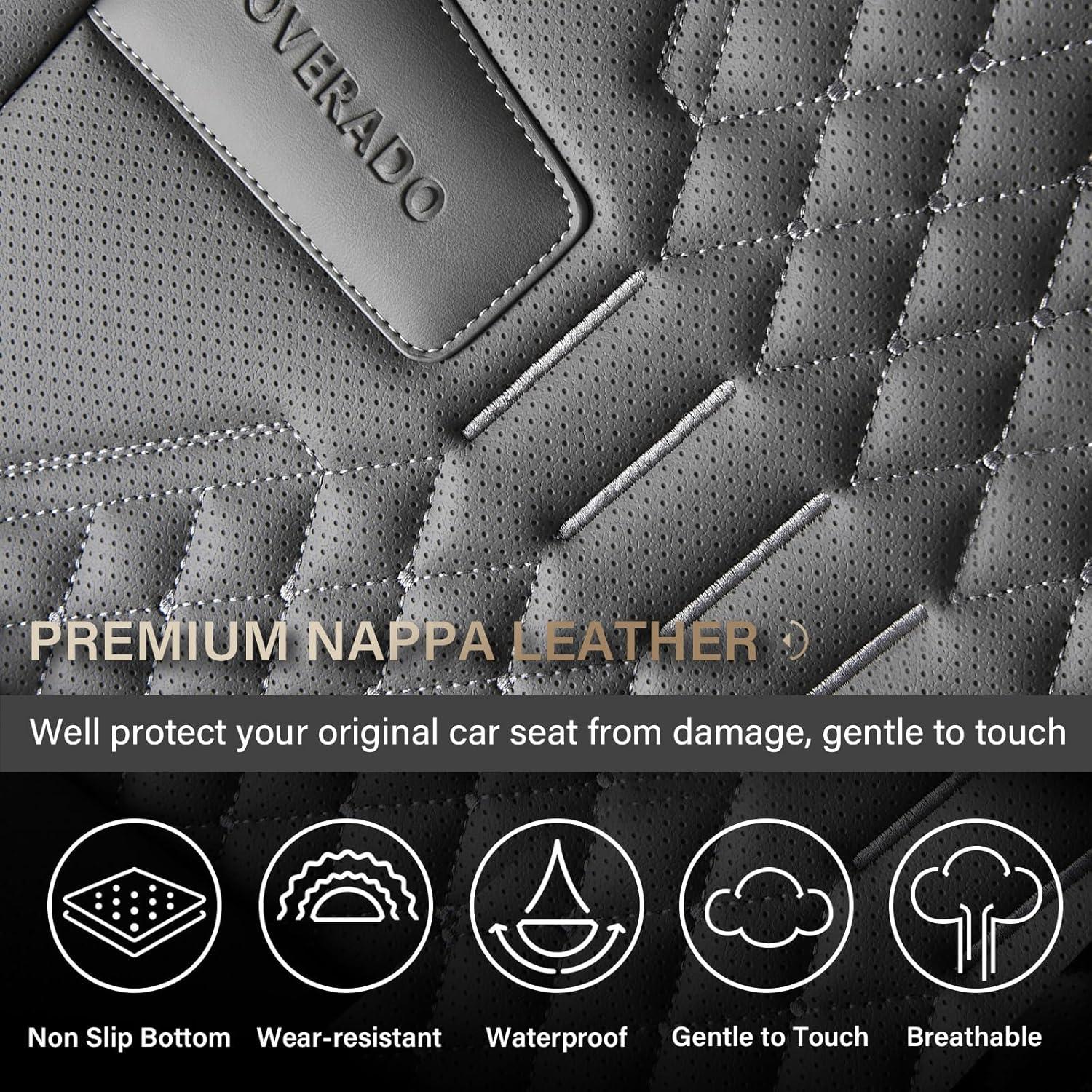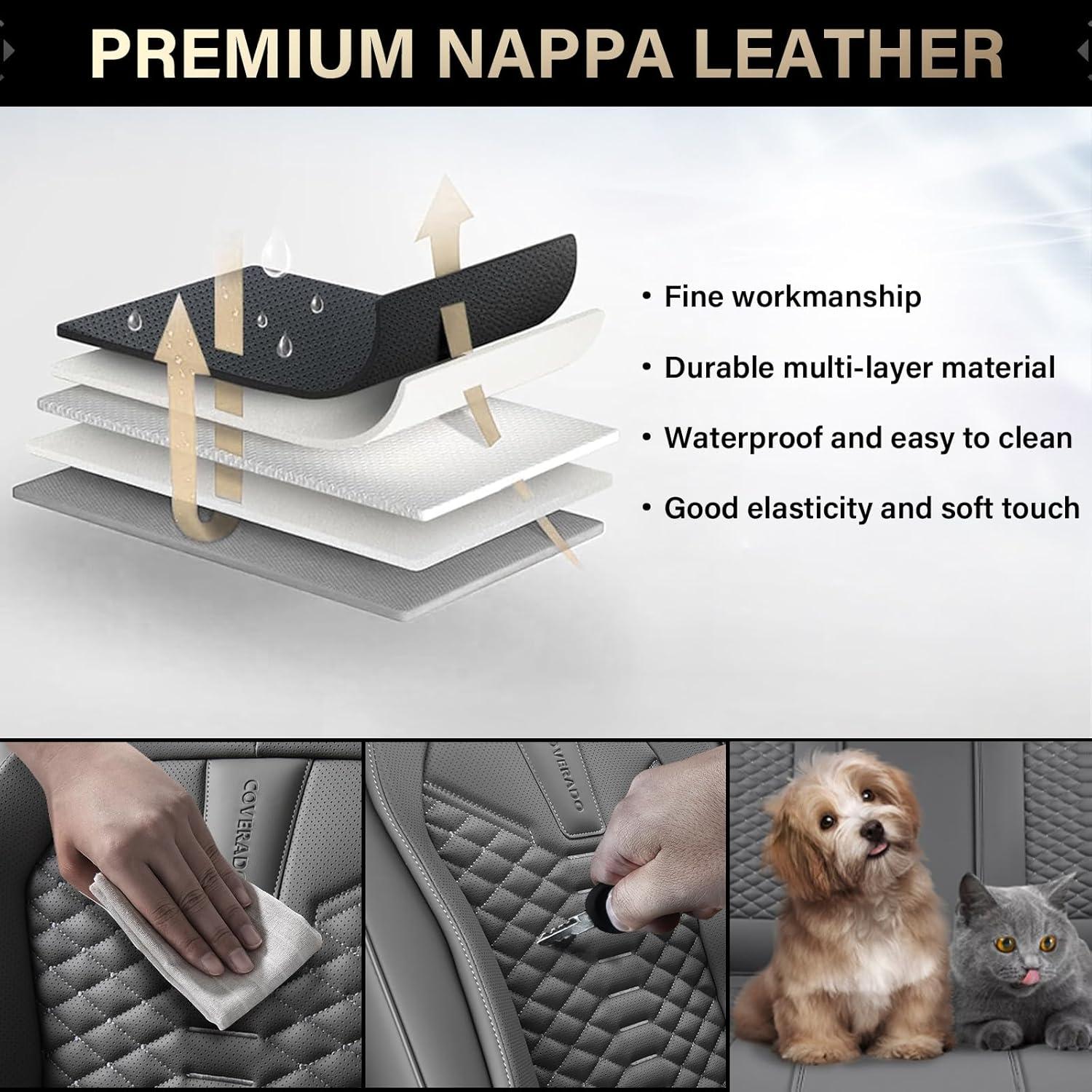 SUPERIOR PROTECTION: Car seat covers are crafted from premium NAPPA Leather and durable leatherette, they are resistant to fading, gentle to touch, waterproof, breathable and made for years to come. The seat covers also filled with high-density soft foam, providing excellent comfort while driving. The fully wrapped side design protects the seats from liquid splashes, stains, pet hair, and harmful UV rays