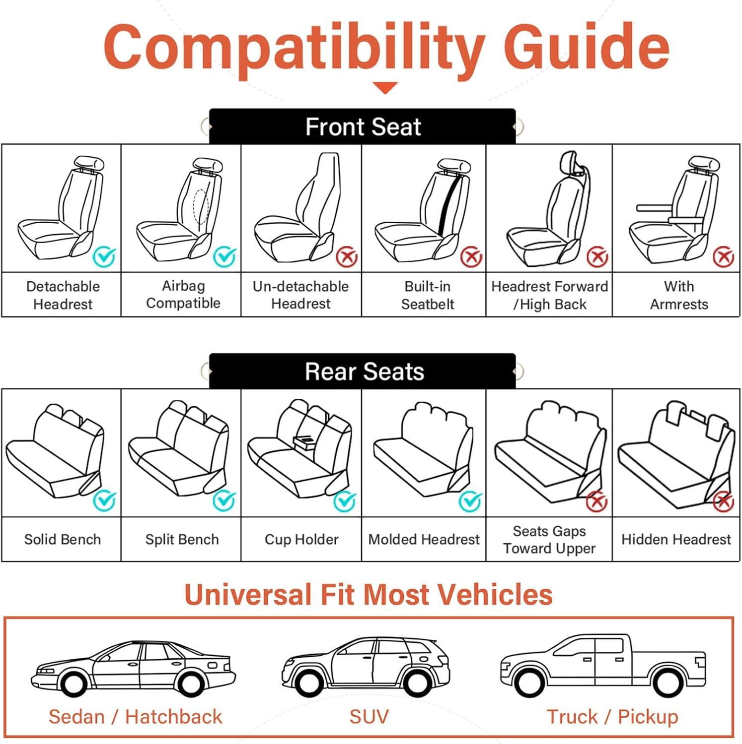 EASY INSTALLATION&CLEAN : With chuck and hook, you can easily fix the seat cover. You can refer to the installation video, or the instructions inside the package to install. Install once and enjoy long time seat cover protection. It is very convenient to use a wet towel to wipe the car seat cover in a renew condition