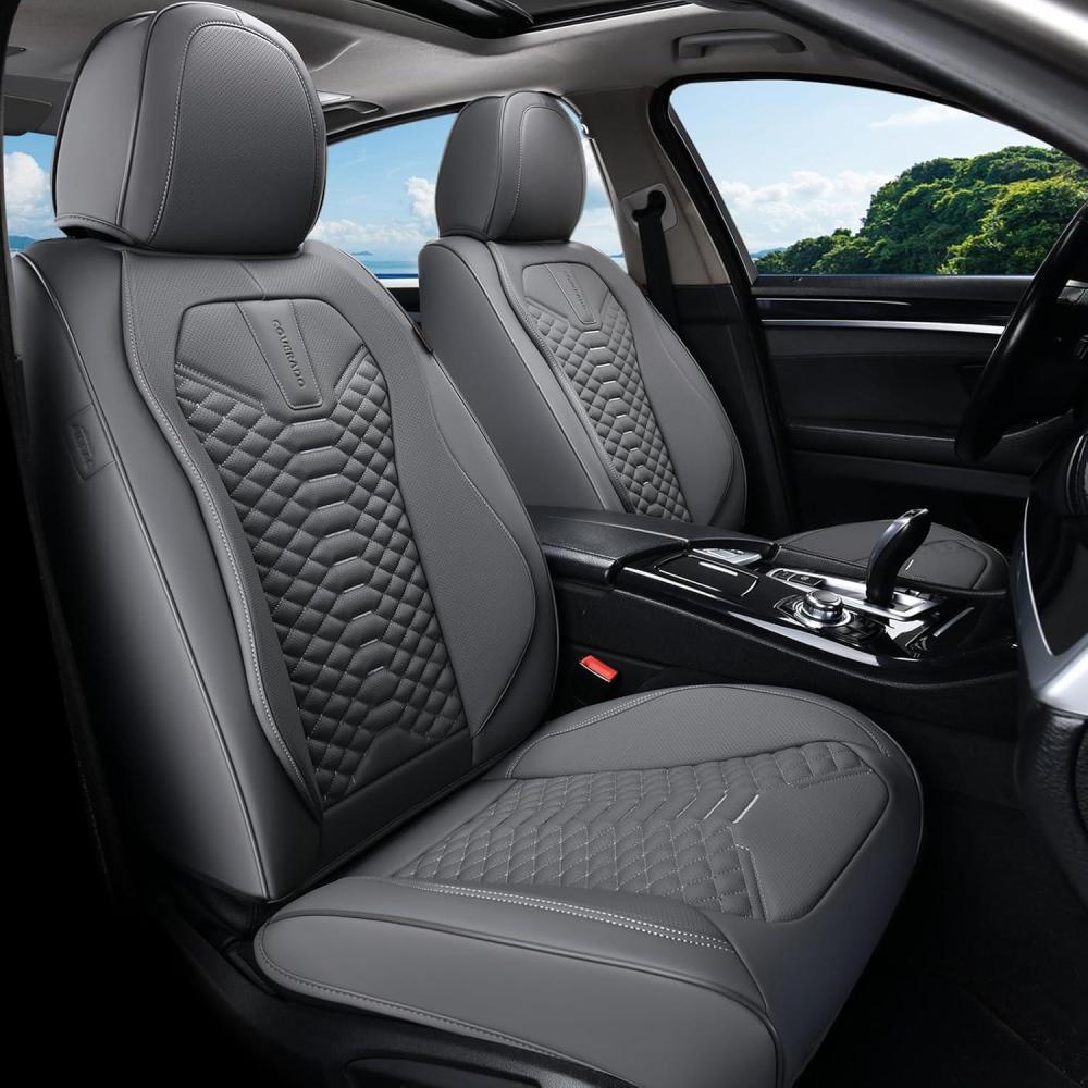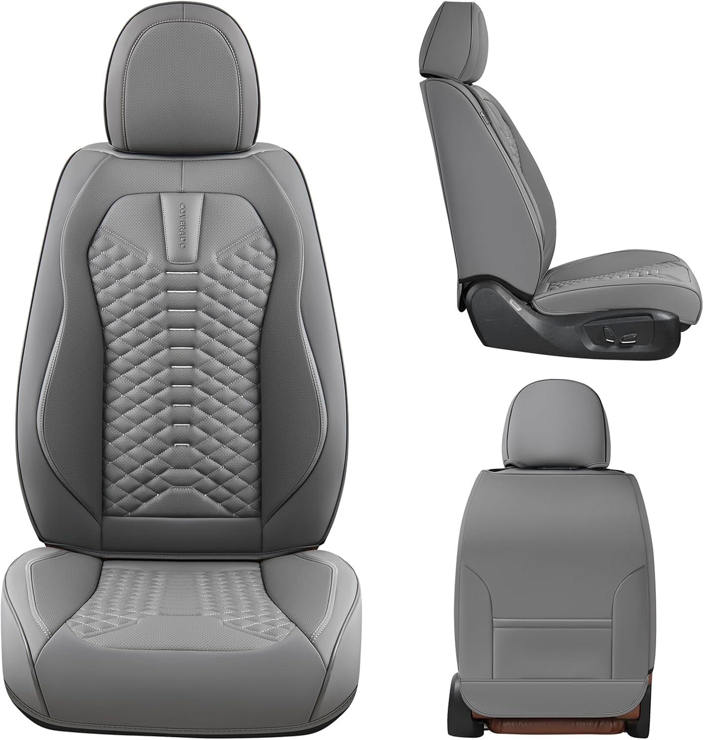 Coverado Automotive Seat Covers, Car Seat Covers Front Seats, Nappa Leather Black&Purple Car Seat Cover, Waterproof Seat Cushion, 2 Pack Front Seat Covers Driver Seat Protector Fit for Most Cars SUV(Gray)