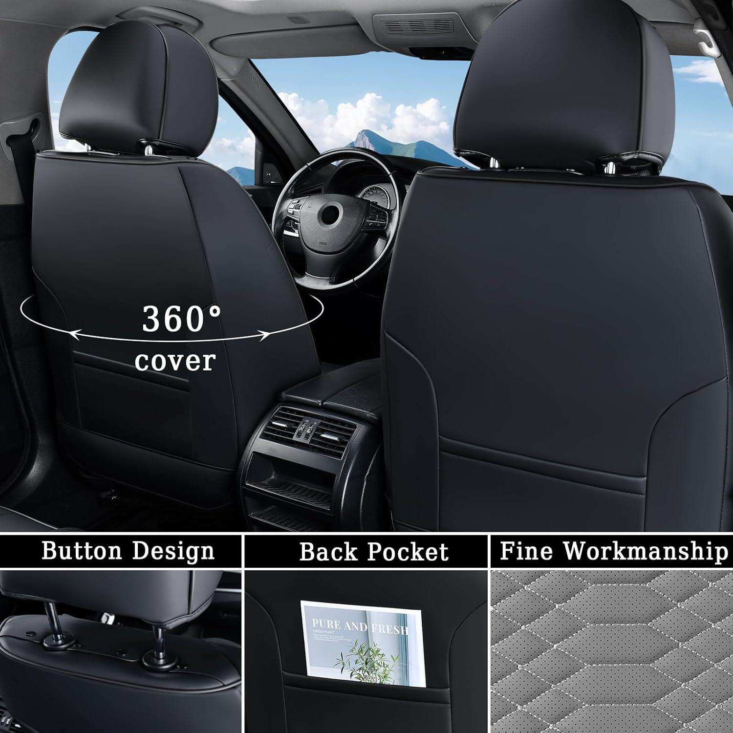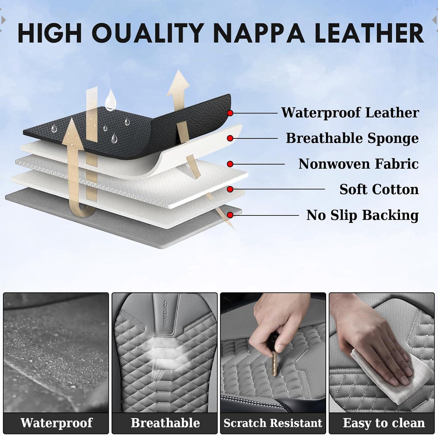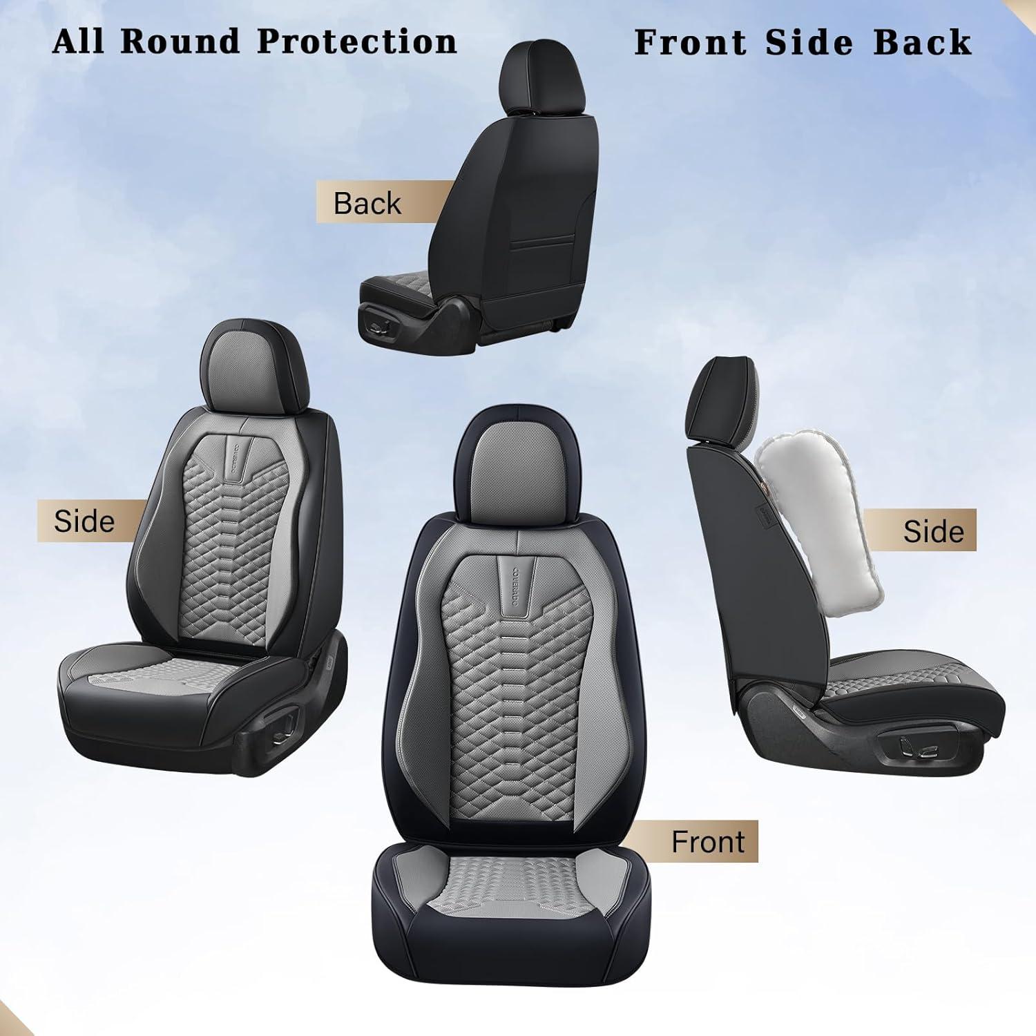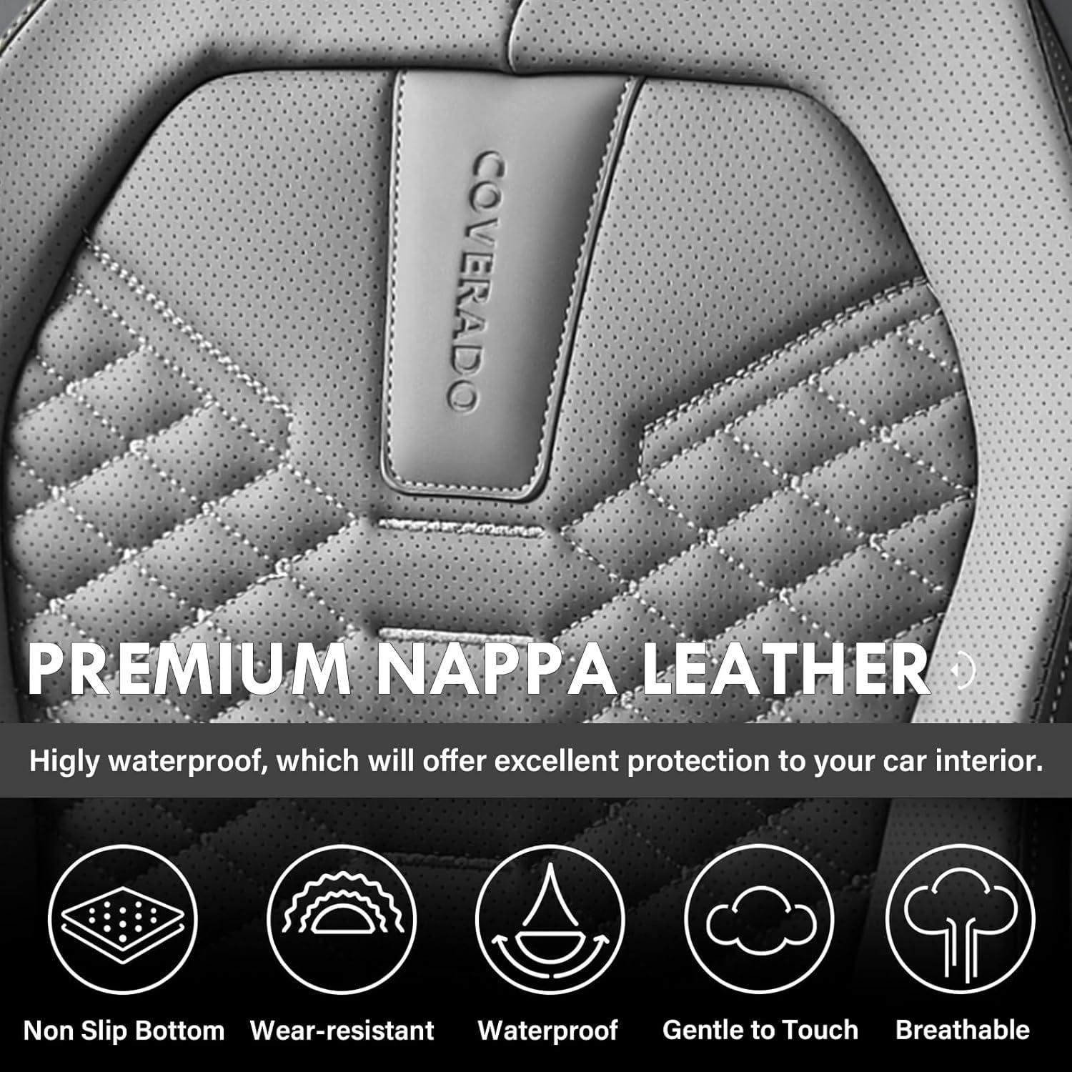 SUPERIOR PROTECTION: Car seat covers are crafted from premium NAPPA Leather and durable leatherette, they are resistant to fading, gentle to touch, waterproof, breathable and made for years to come. The seat covers also filled with high-density soft foam, providing excellent comfort while driving. The fully wrapped side design protects the seats from liquid splashes, stains, pet hair, and harmful UV rays