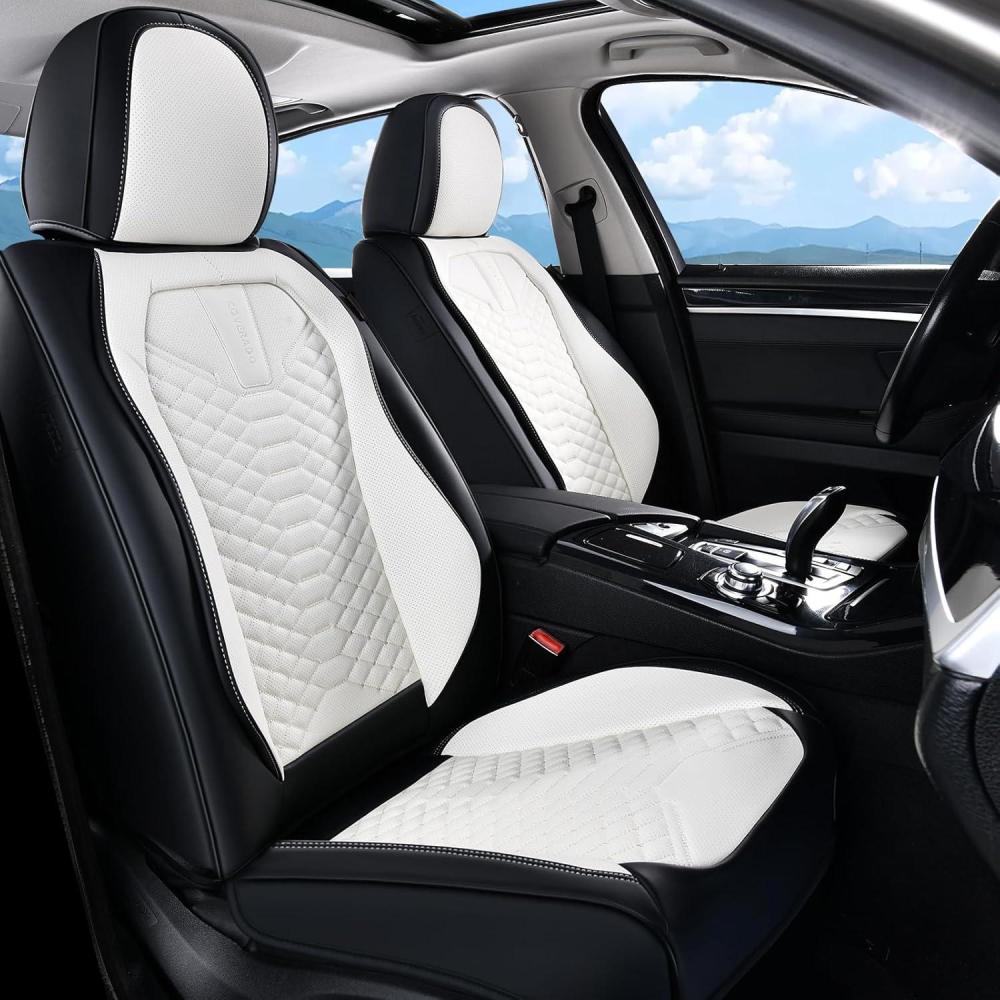 Coverado Automotive Seat Covers, Car Seat Covers Front Seats, Nappa Leather Black&Purple Car Seat Cover, Waterproof Seat Cushion, 2 Pack Front Seat Covers Driver Seat Protector Fit for Most Cars SUV(Patchwork-Black&White)