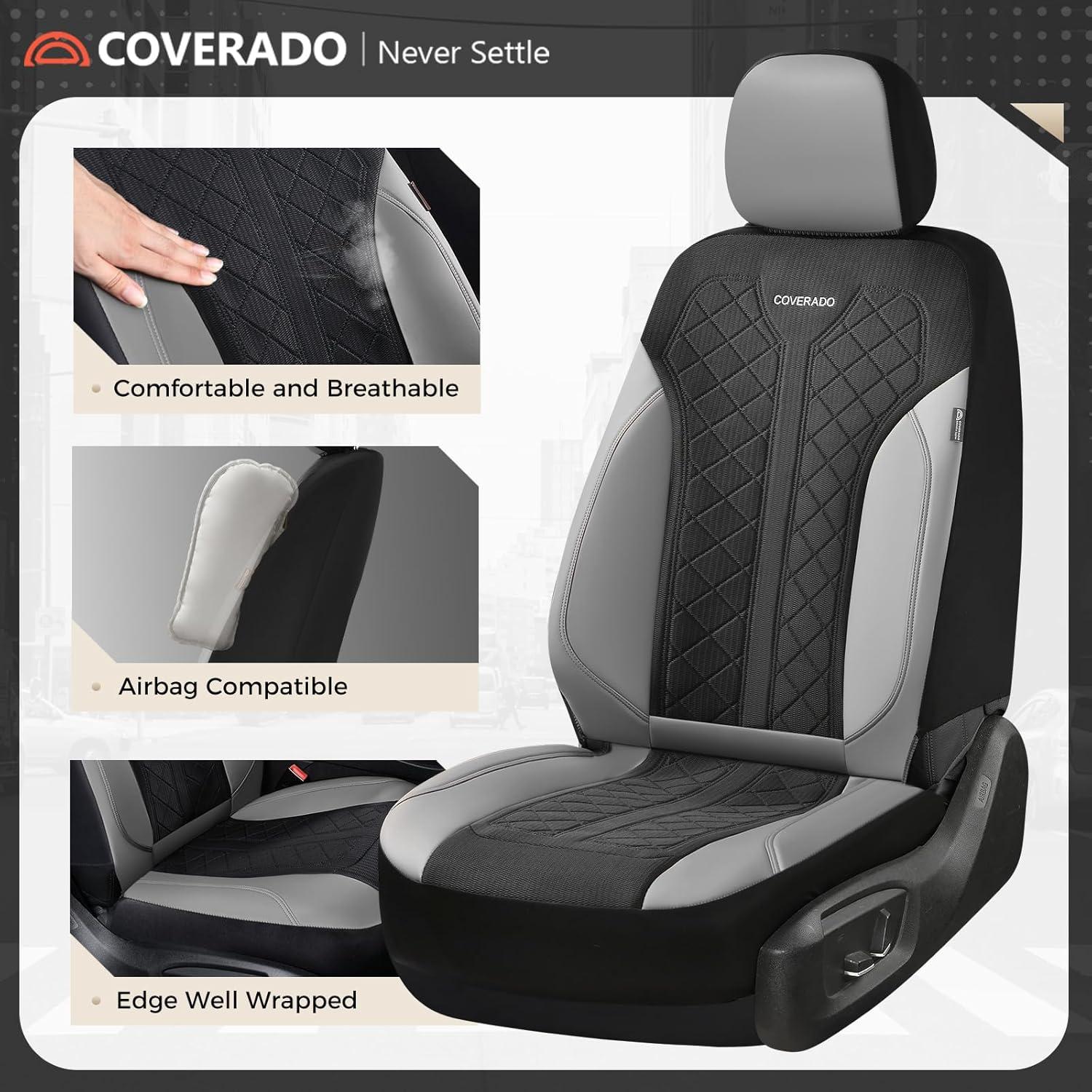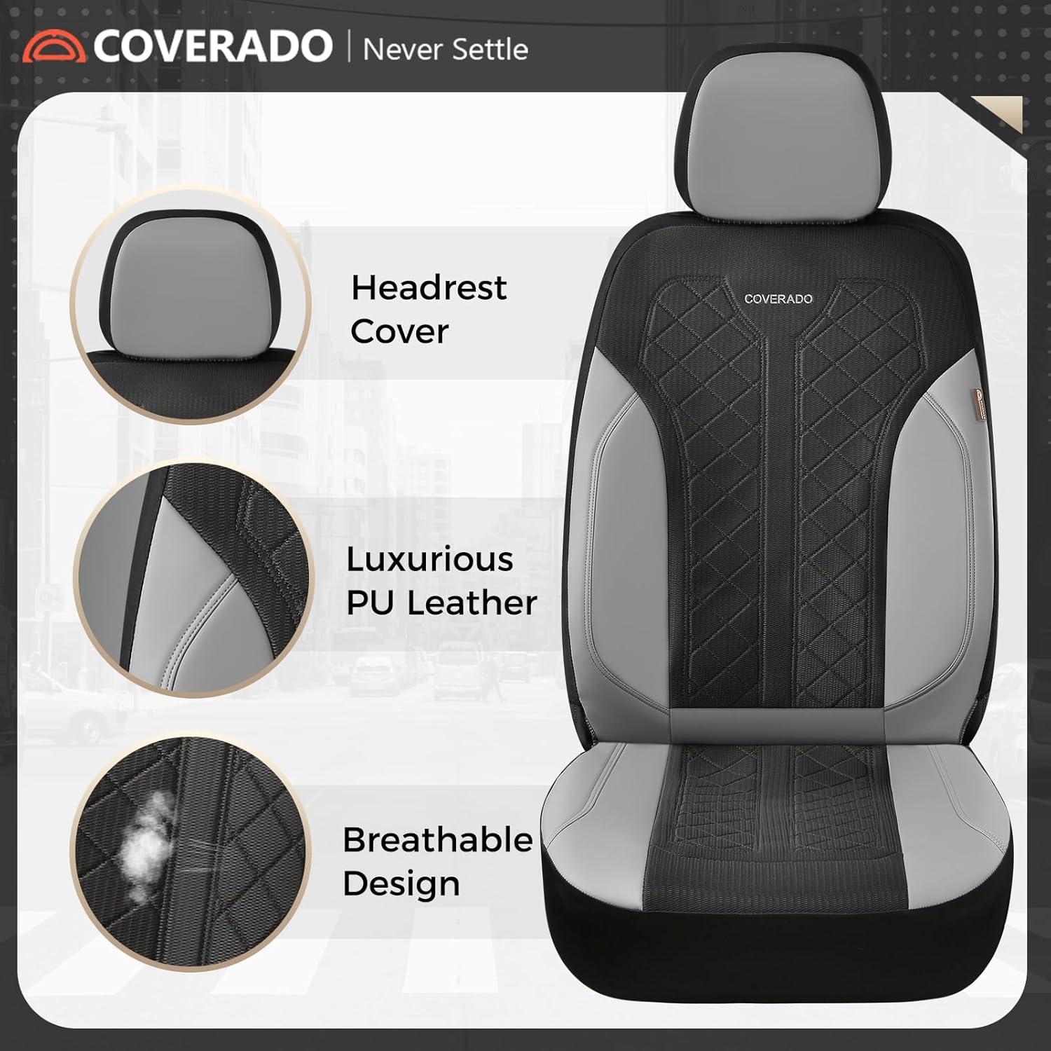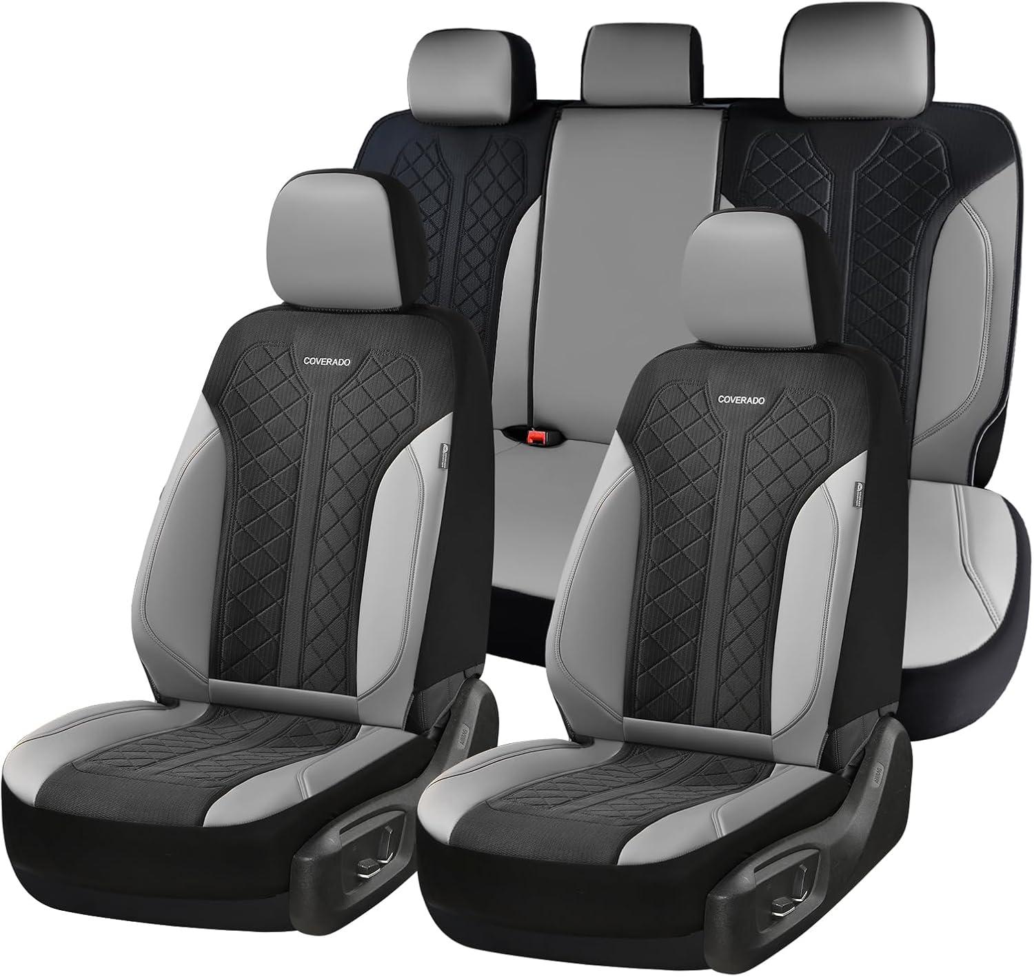 Coverado Automotive Seat Covers Full Set, Luxury Car Seat Covers, Leather Seat Covers, Mesh Design, Pink Driver Seat Protectors, Universal Fit for SUVs, Trucks, Sedans(Gray&Black)
