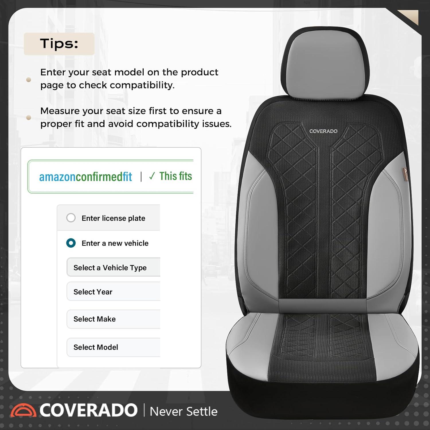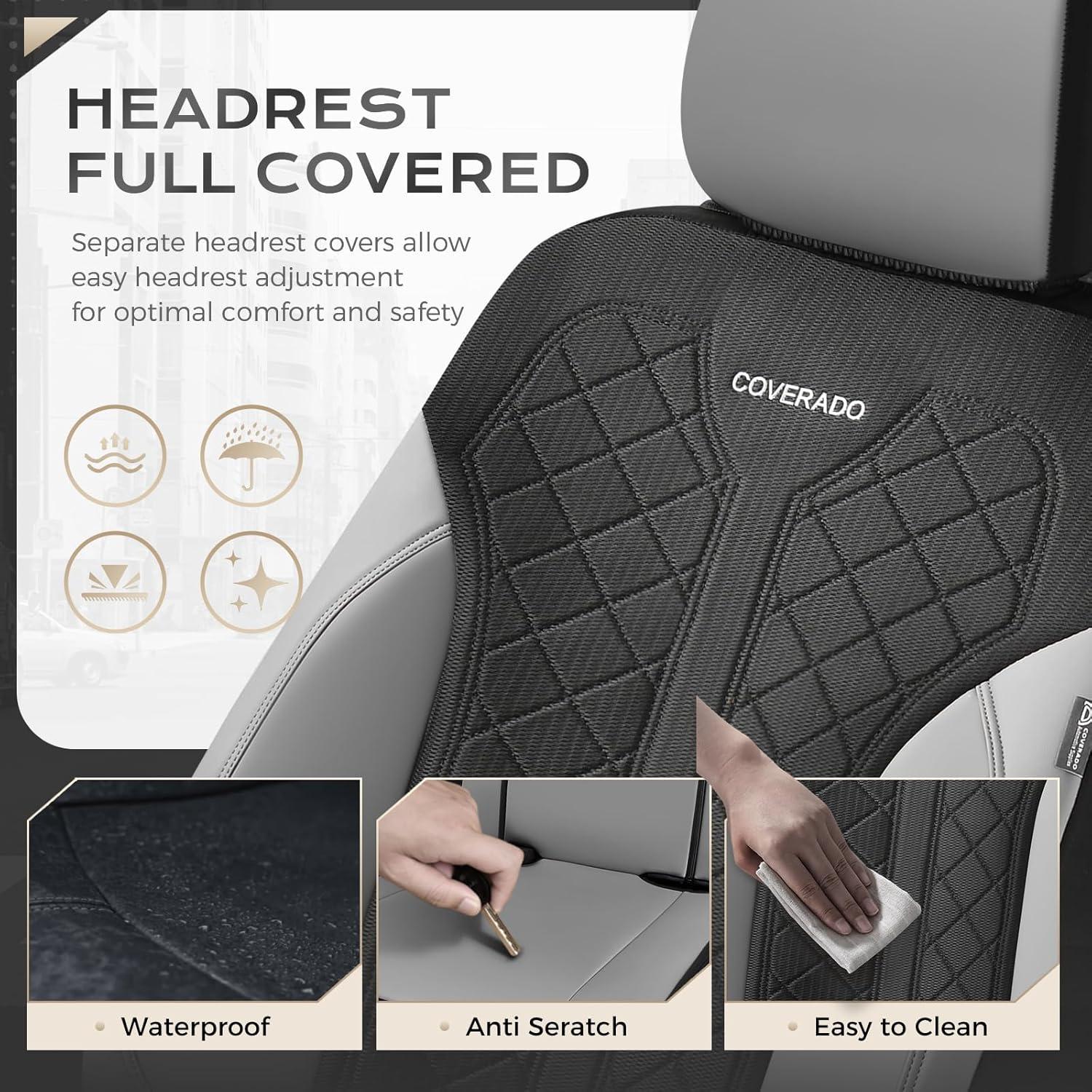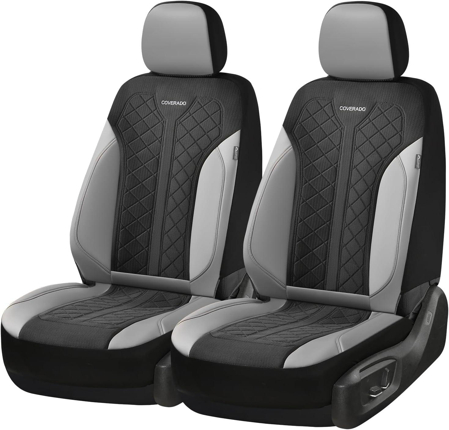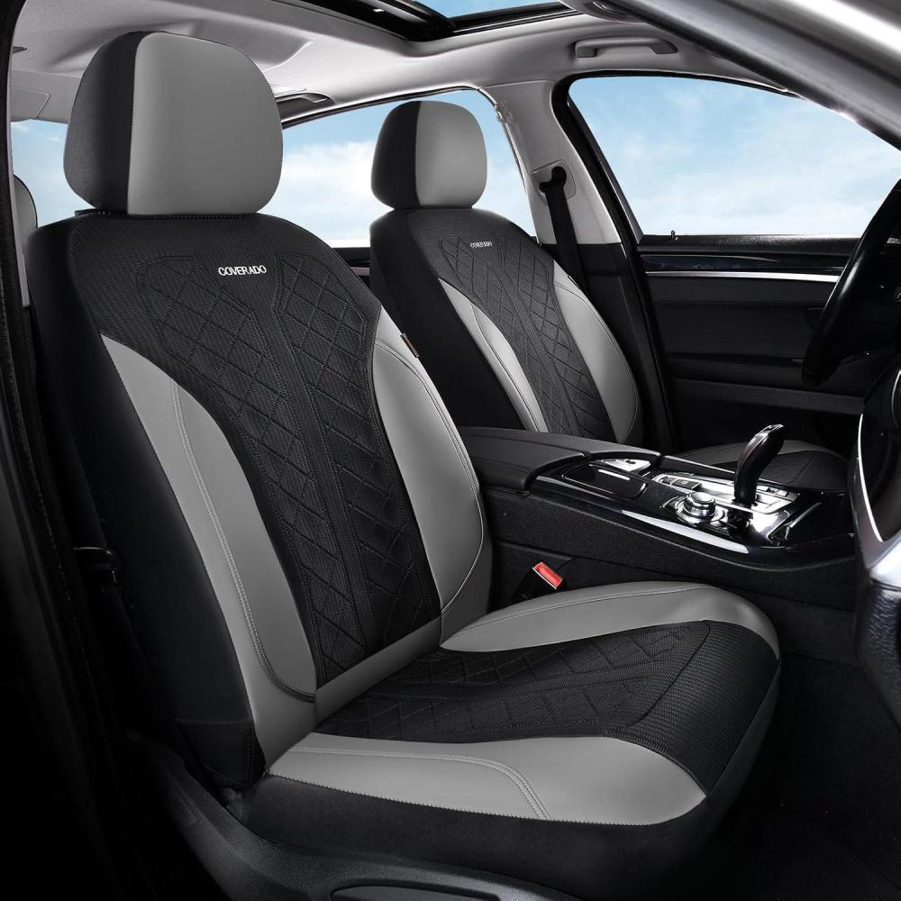 Coverado Automotive Seat Covers Full Set, Luxury Car Seat Covers, Leather Seat Covers, Mesh Design, Pink Driver Seat Protectors, Universal Fit for SUVs, Trucks, Sedans(Gray&Black)