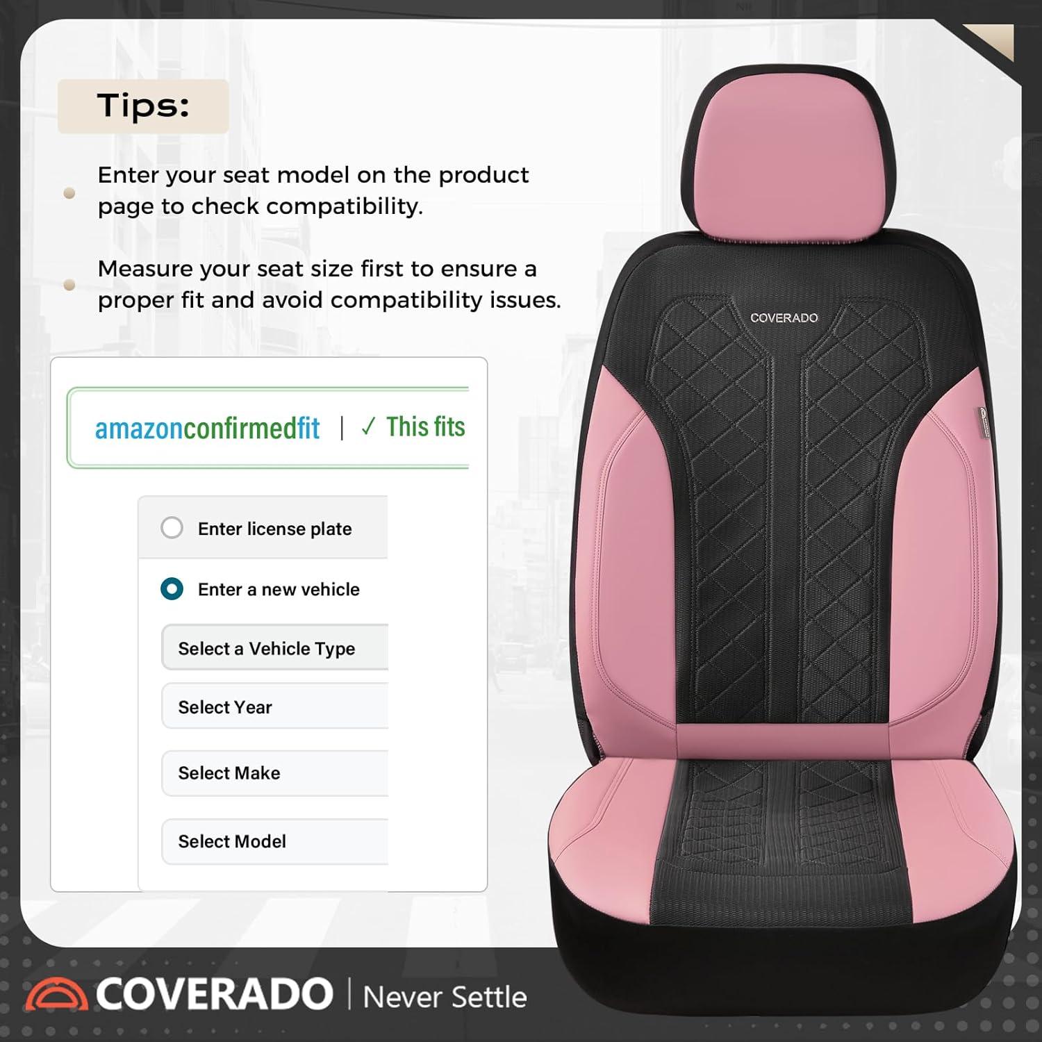 Be the first to review “Coverado Automotive Seat Covers Full Set, Luxury Car Seat Covers, Leather Seat Covers, Mesh Design, Pink Driver Seat Protectors, Universal Fit for SUVs, Trucks, Sedans(Pink&Black)”