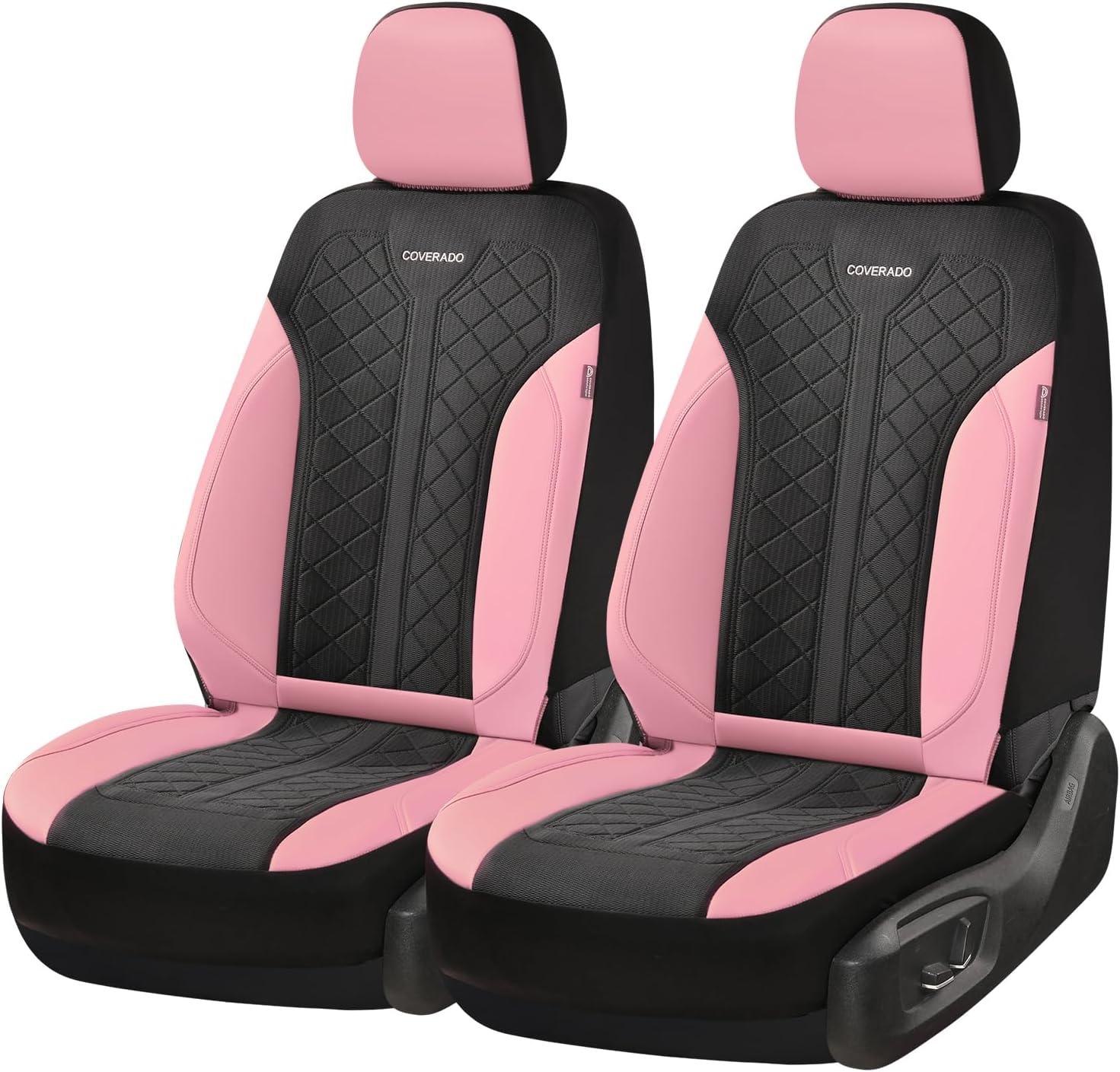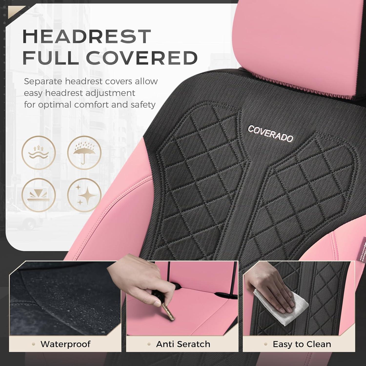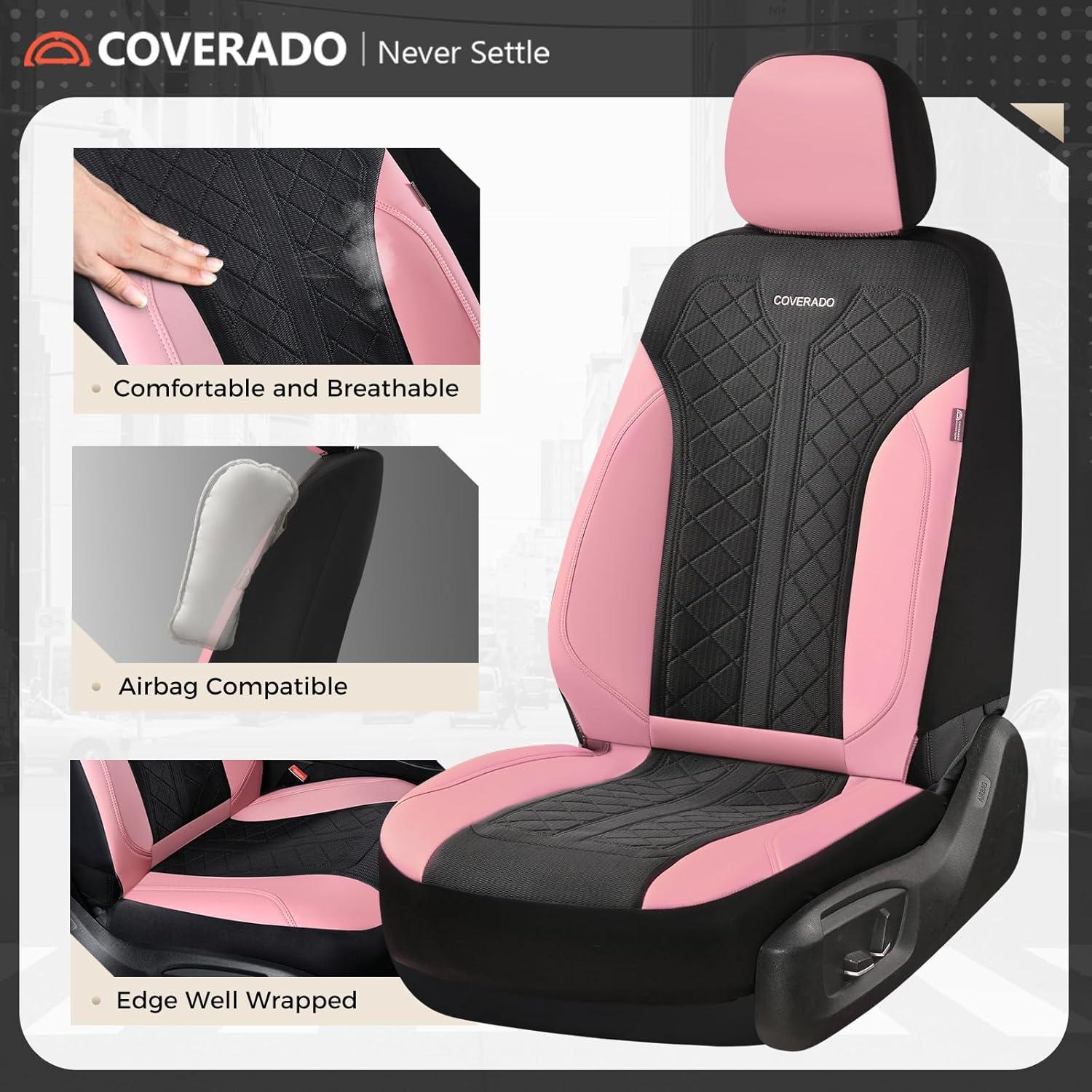 Coverado Automotive Seat Covers Full Set, Luxury Car Seat Covers, Leather Seat Covers, Mesh Design, Pink Driver Seat Protectors, Universal Fit for SUVs, Trucks, Sedans(Pink&Black)