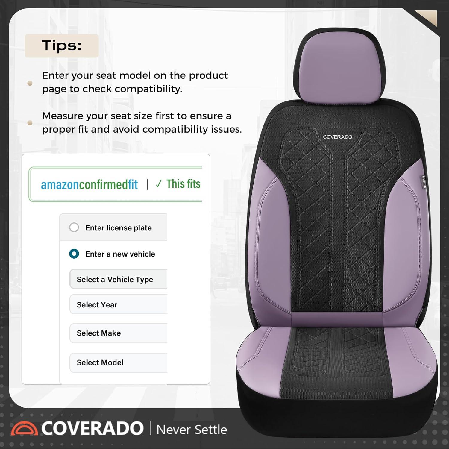 Don’t miss out on our limited-time offer: get a free {accessory} with your purchase of Coverado Automotive Seat Covers Full Set, Luxury Car Seat Covers, Leather Seat Covers, Mesh Design, Pink Driver Seat Protectors, Universal Fit for SUVs, Trucks, Sedans(purple&Black).