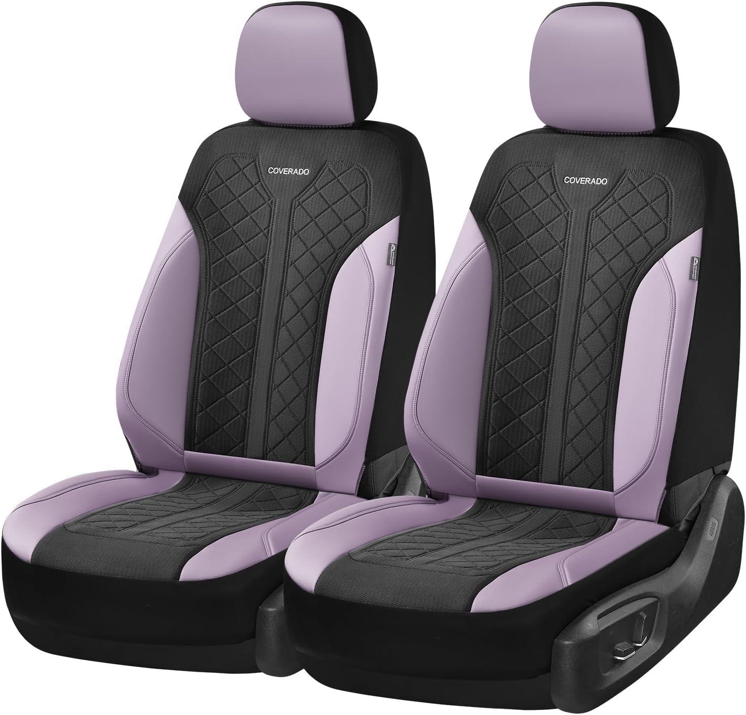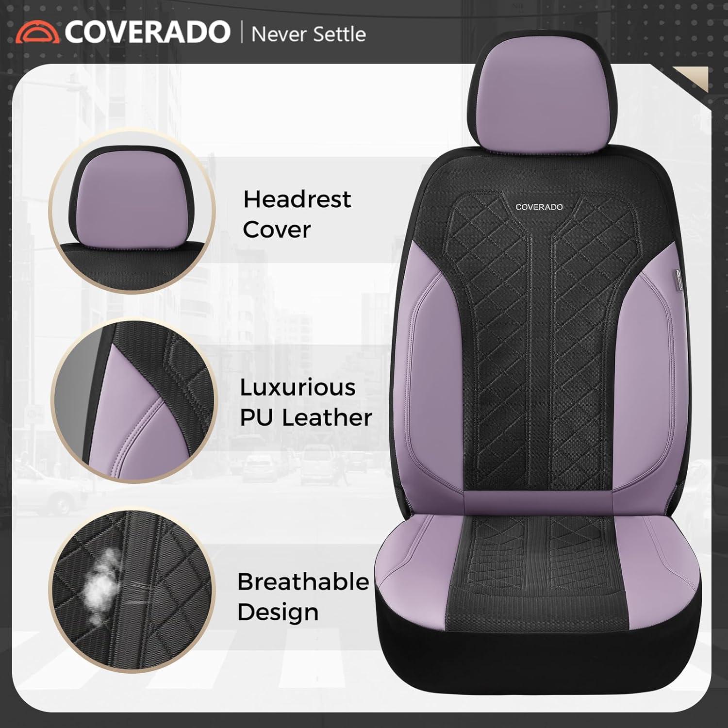 Coverado Automotive Seat Covers Full Set, Luxury Car Seat Covers, Leather Seat Covers, Mesh Design, Pink Driver Seat Protectors, Universal Fit for SUVs, Trucks, Sedans(purple&Black)