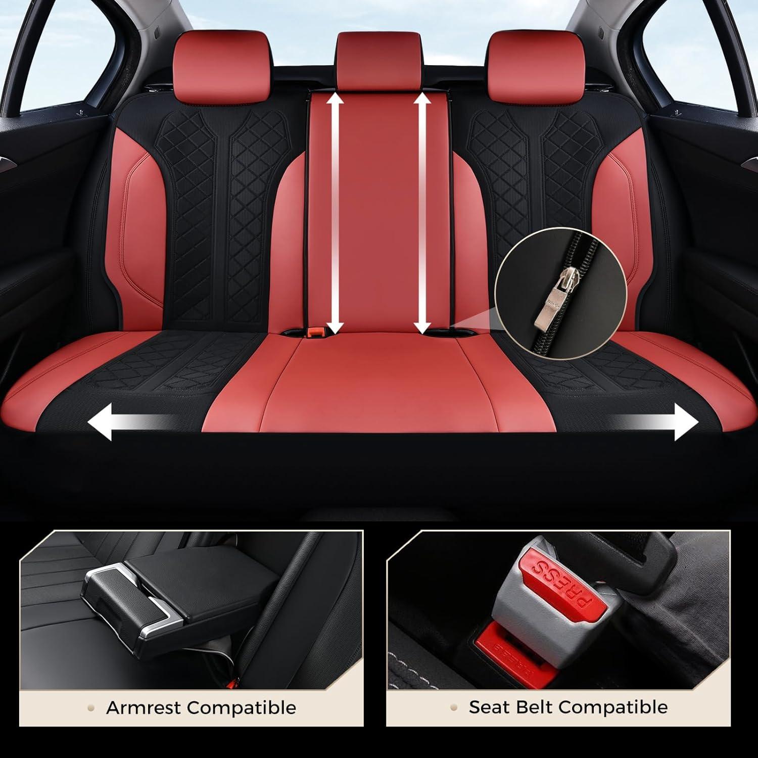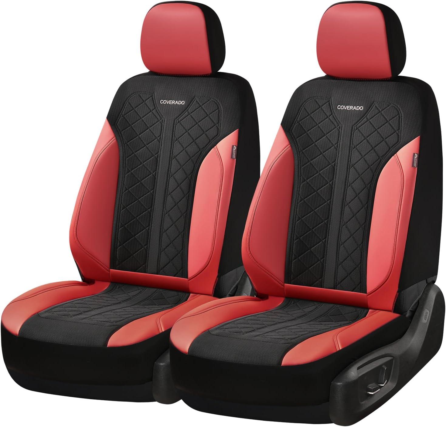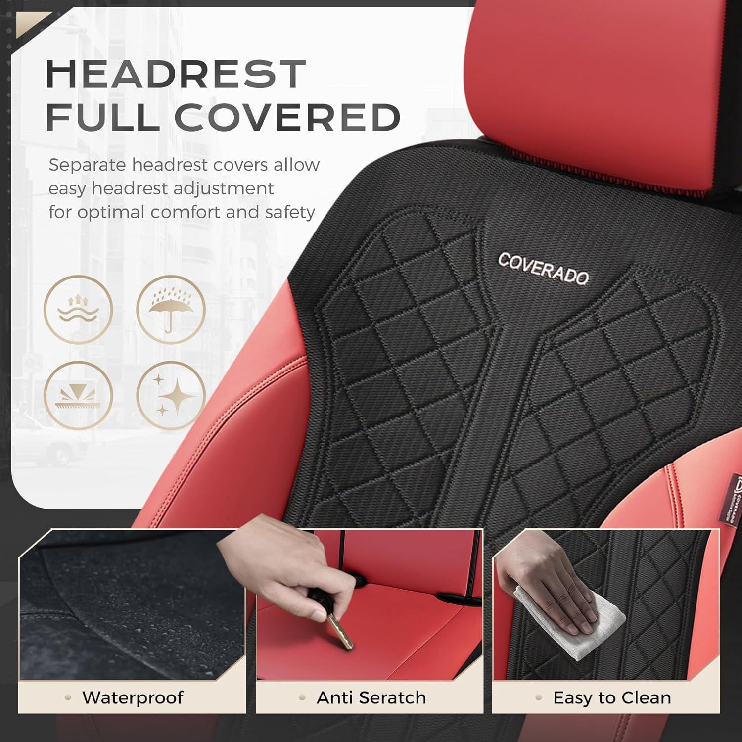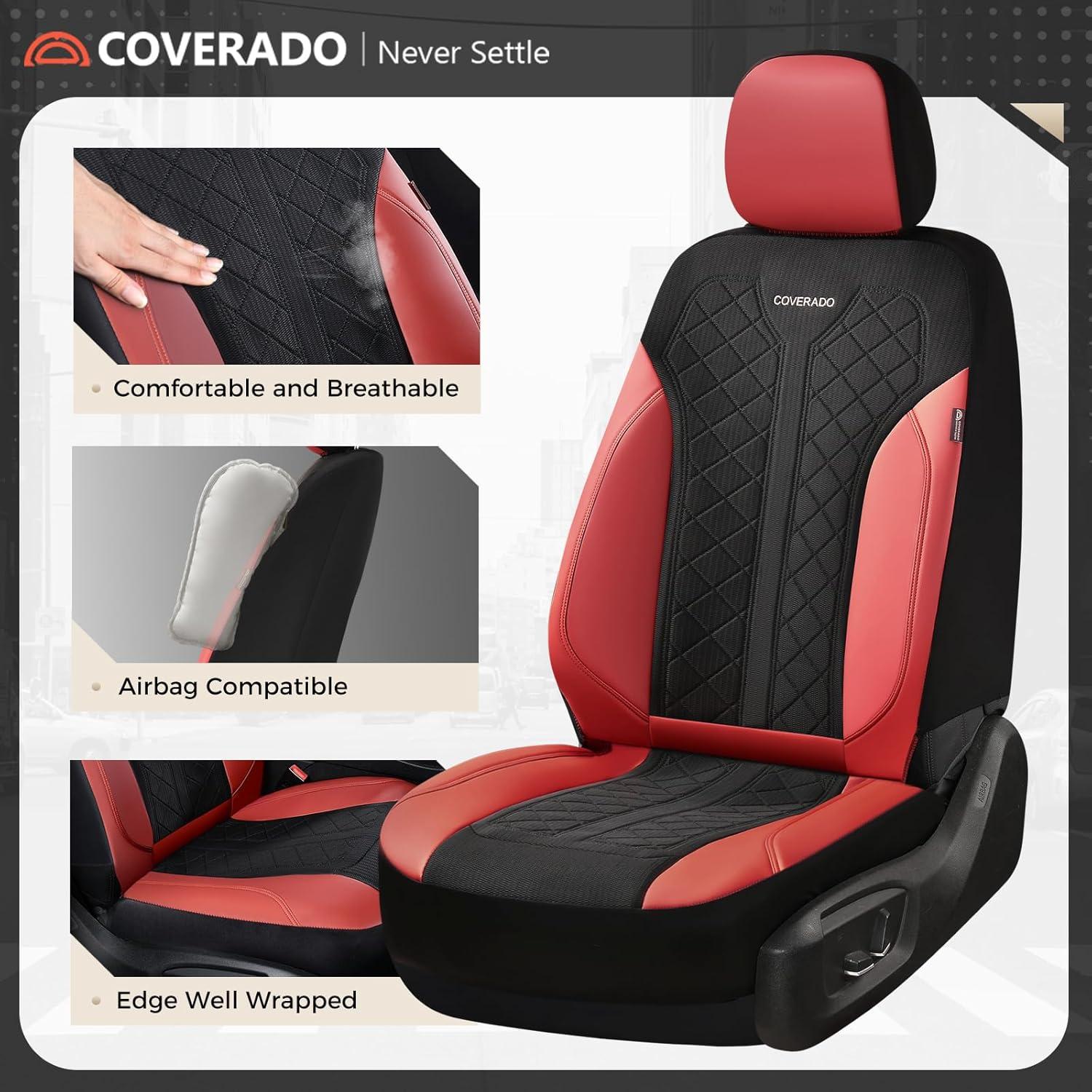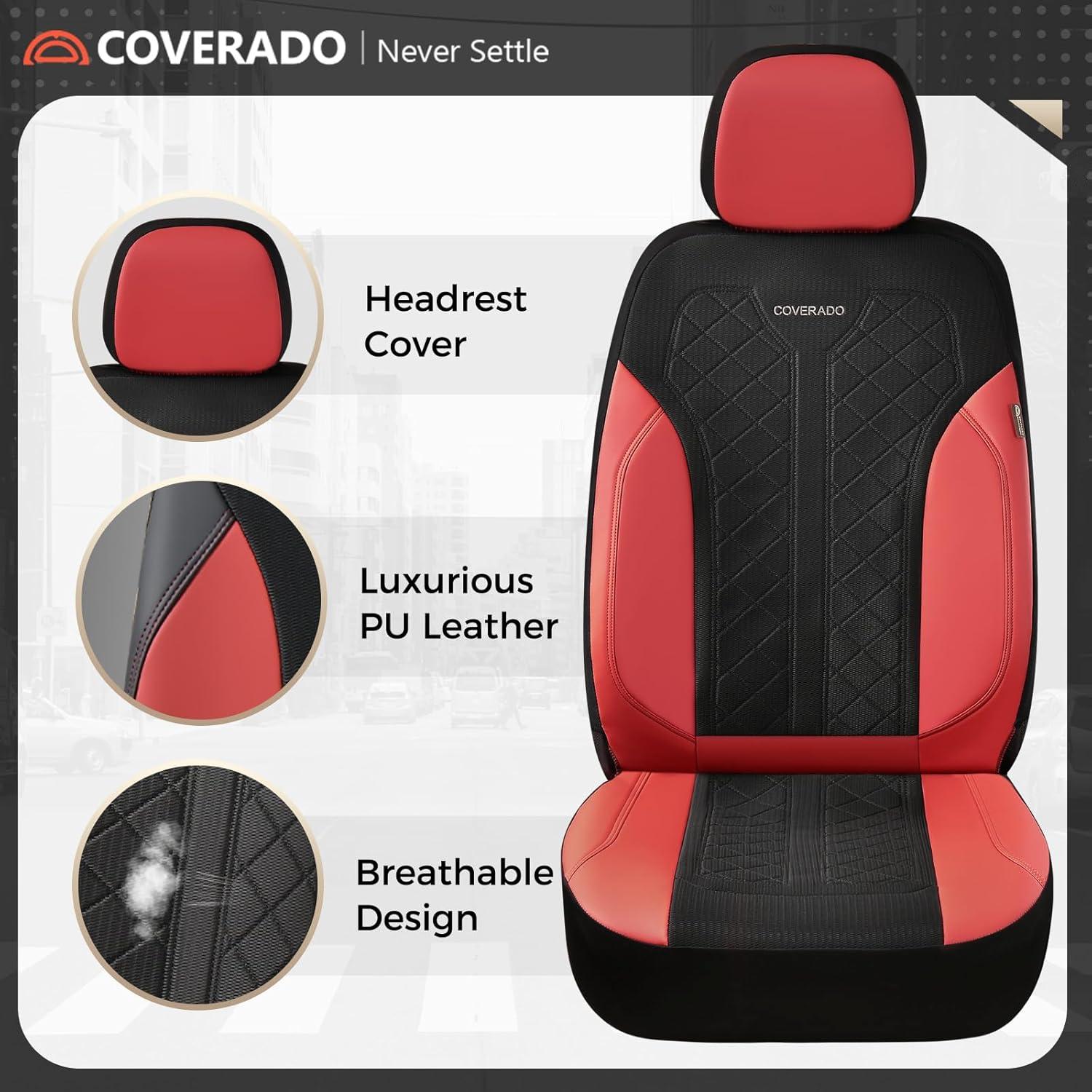 Coverado Automotive Seat Covers Full Set, Luxury Car Seat Covers, Leather Seat Covers, Mesh Design, Pink Driver Seat Protectors, Universal Fit for SUVs, Trucks, Sedans(Red&Black)
