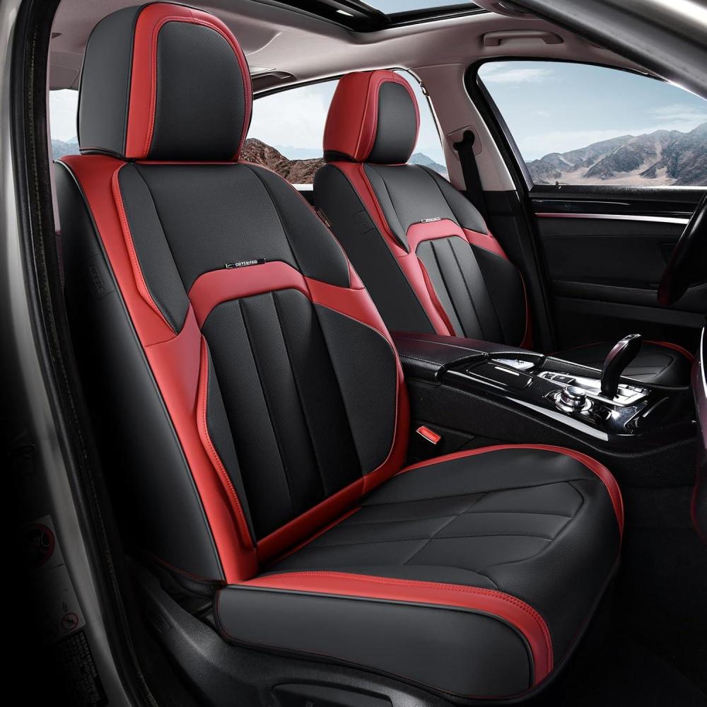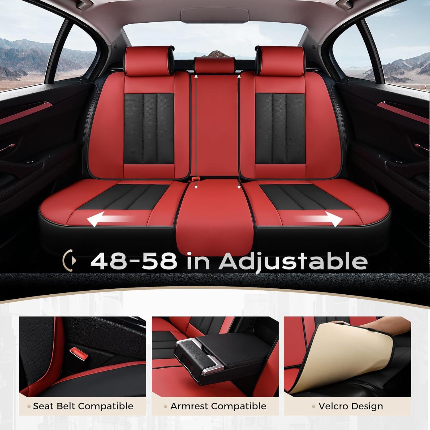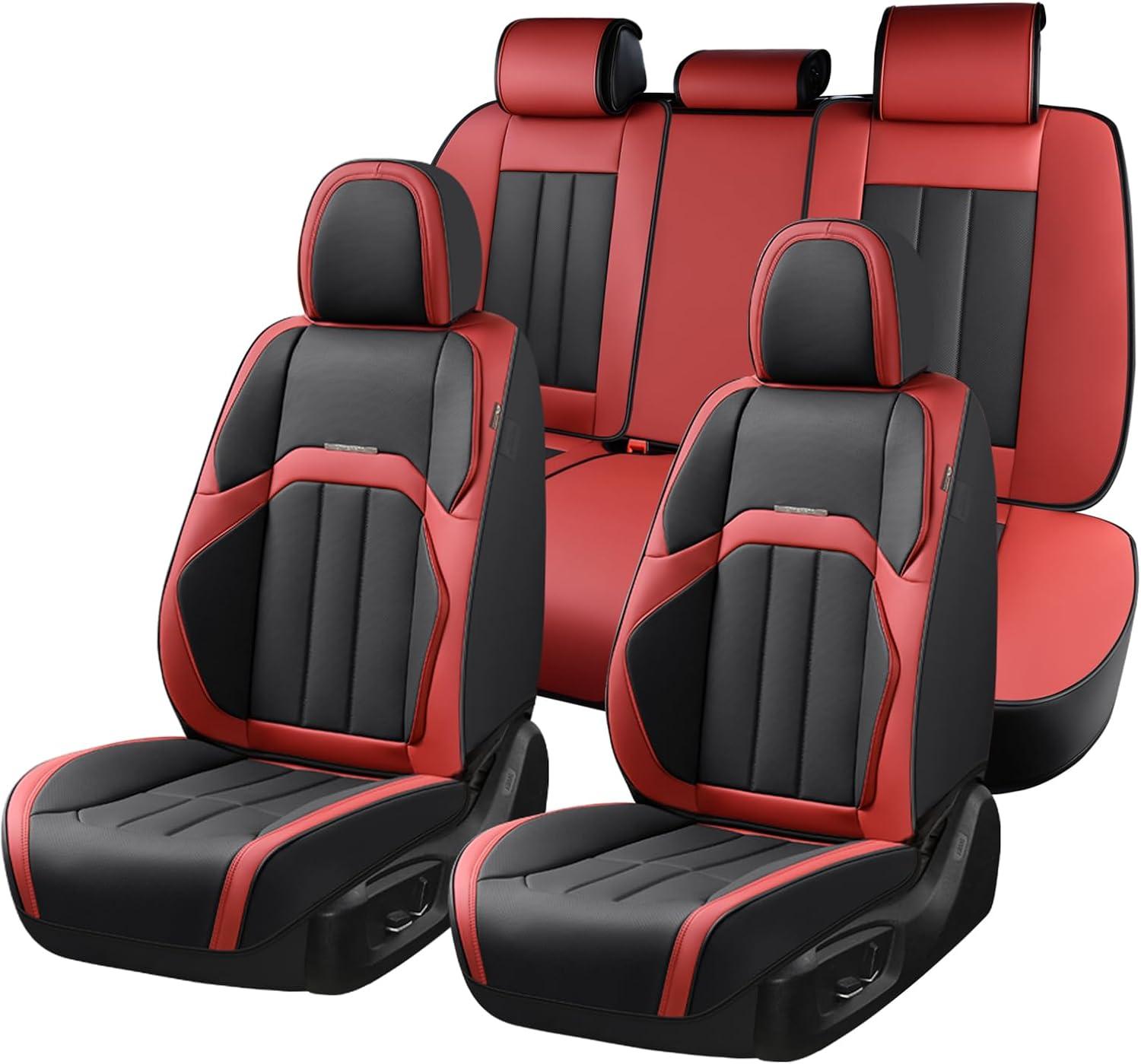 Coverado Car Seat Cover, Cover for Cars Full Seat, Premium Leather, Universal Fit Waterproof Seat Protectors, Car Seat Cushion Non-Slip for Most Cars-BlackGray(Black-Red)