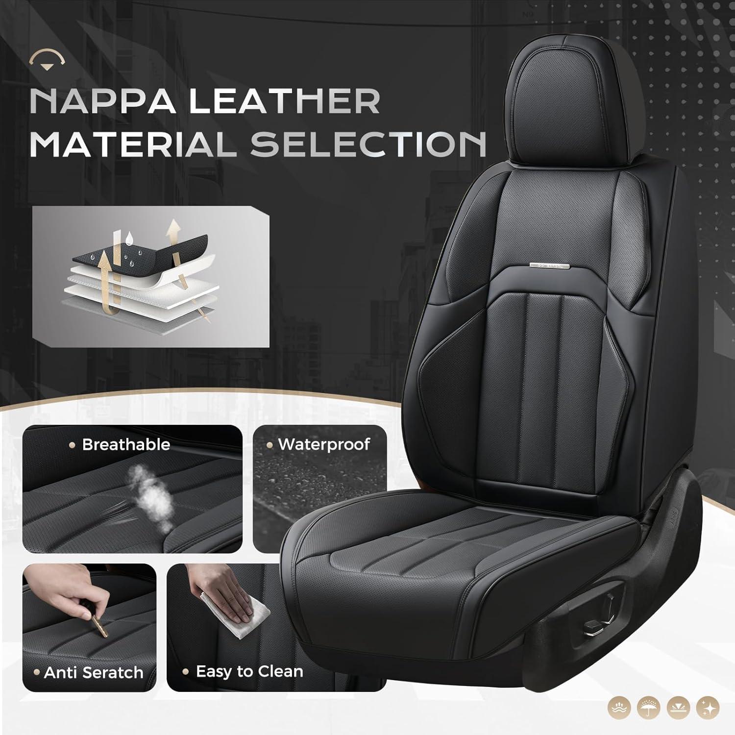 Luxurious Nappa Leather Seat Covers: Experience the softness and elegance of premium automotive-grade Nappa leather in these high-end seat covers. Designed for maximum comfort, these car seat covers provide a premium, ventilated surface that prevents sweating while maintaining a sophisticated look.