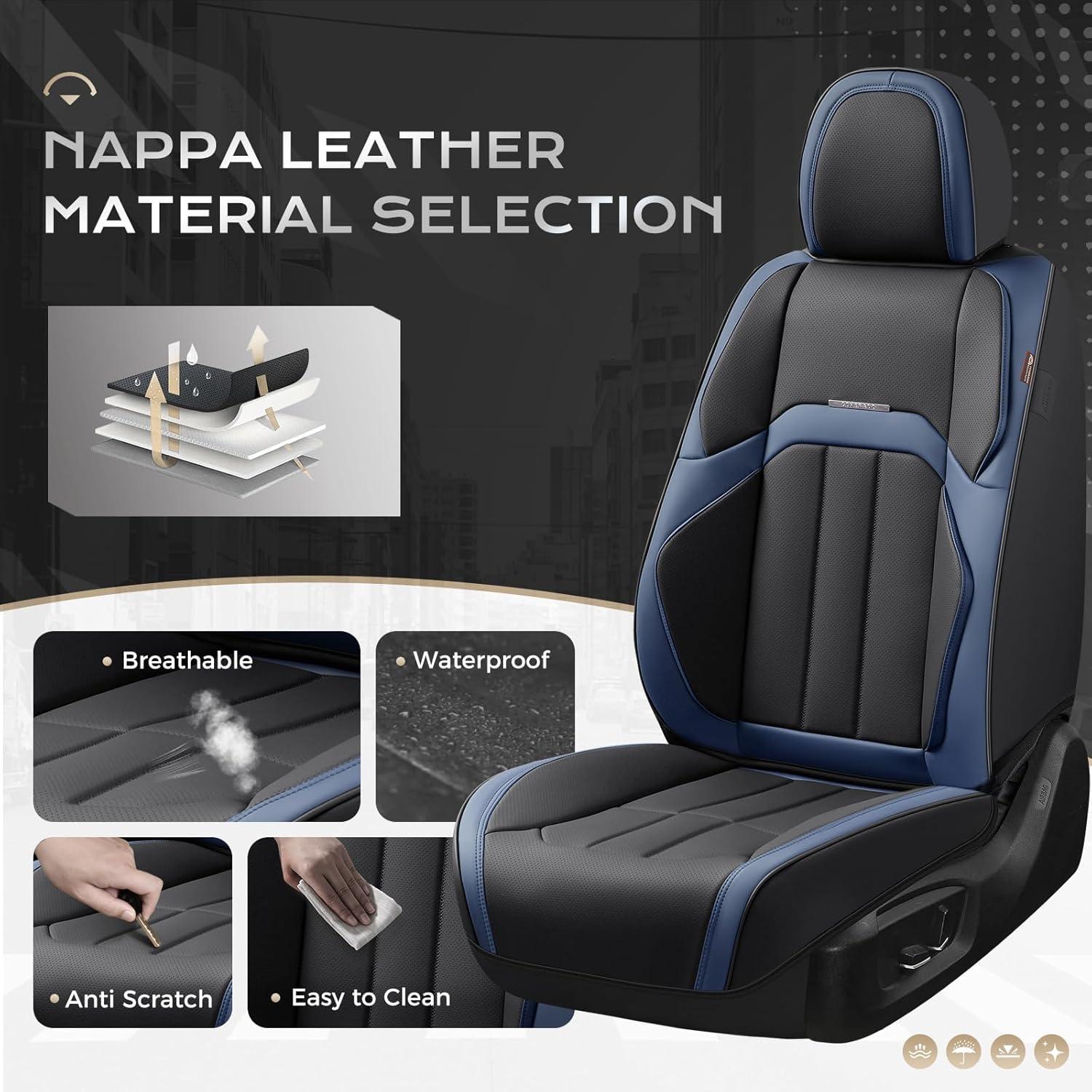 Luxurious Nappa Leather Seat Covers: Experience the softness and elegance of premium automotive-grade Nappa leather in these high-end seat covers. Designed for maximum comfort, these car seat covers provide a premium, ventilated surface that prevents sweating while maintaining a sophisticated look.