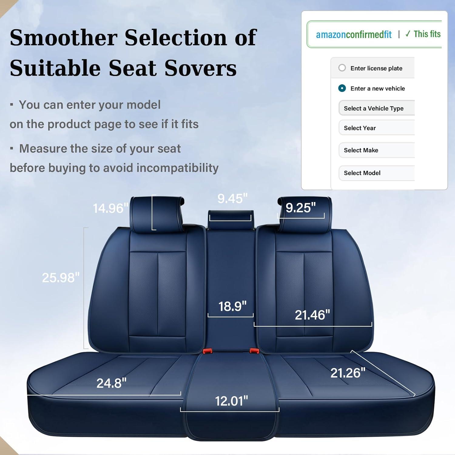 【PREFERRED LEATHER】Our rear seat covers are crafted from preferred leather, ensuring durability and a luxurious feel that enhances your vehicle's interior.Various colors to select from, you can define a new look for you car as you like