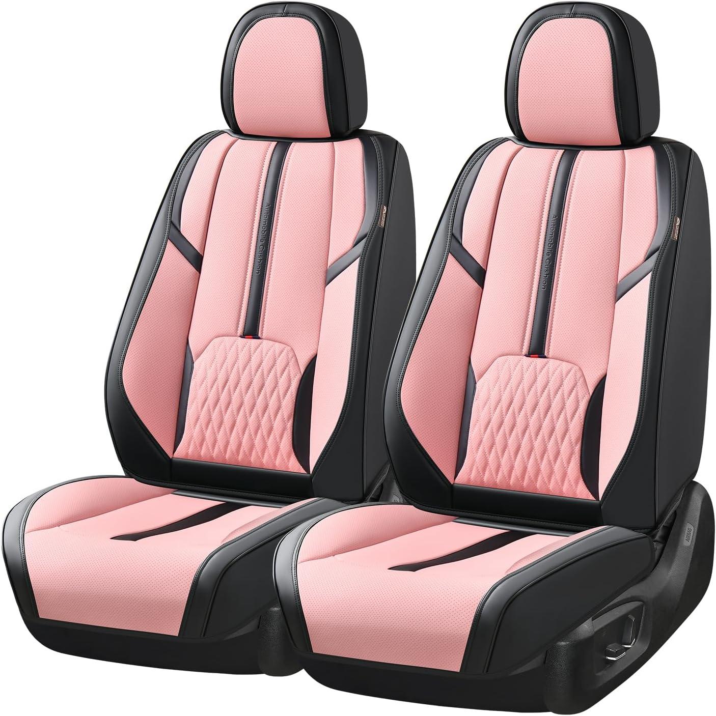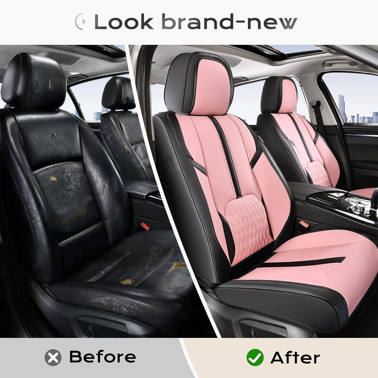 Coverado Car Seat Covers, Front and Back Seat Covers, Universal Seat Cover for Cars with Lumbar Support, Faux Leather Car Seat Protector Waterproof Car Seat Cushions Fit for Most Vehicles (Blue&Black)(Black&Pink)