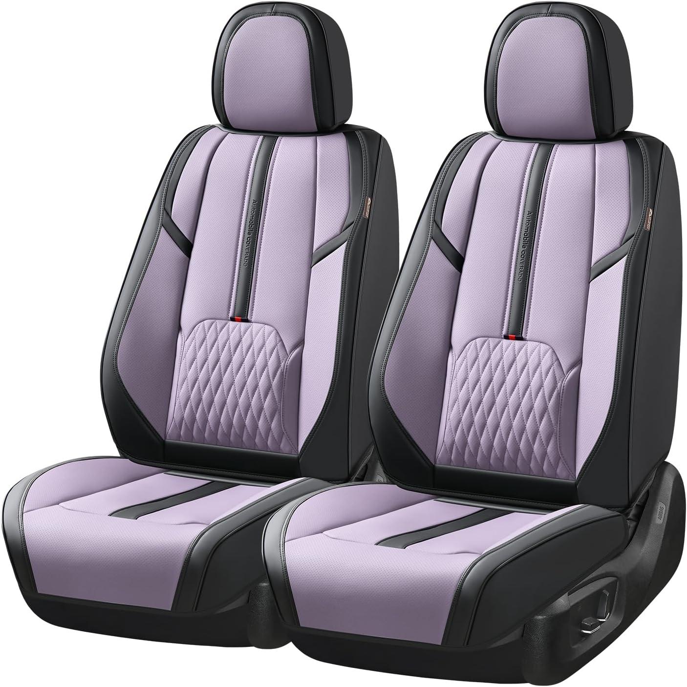 Coverado Car Seat Covers, Front and Back Seat Covers, Universal Seat Cover for Cars with Lumbar Support, Faux Leather Car Seat Protector Waterproof Car Seat Cushions Fit for Most Vehicles (Blue&Black)(Black&Purple)