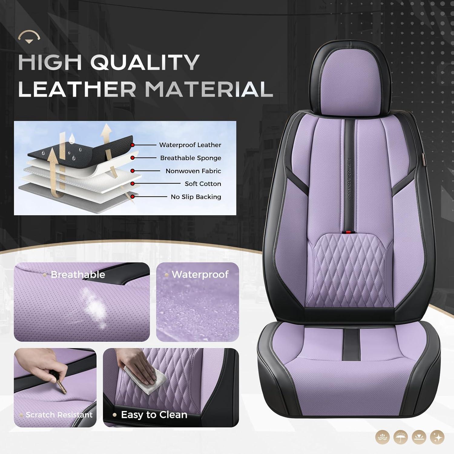 SUPERIOR LEATHER: Coverado car seat cover is made from high quality breathable artificial leather with high density foam padding to upgrade your driving experience. With numerous ventilation holes and good elasticity, this breathable seat cover ensures a skin-friendly and comfortable feel so you can enjoy every journey