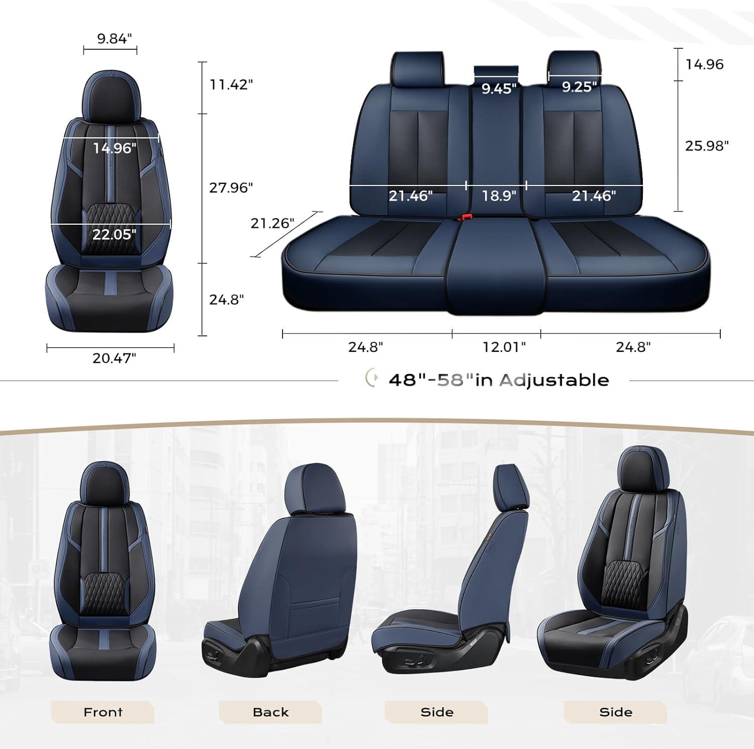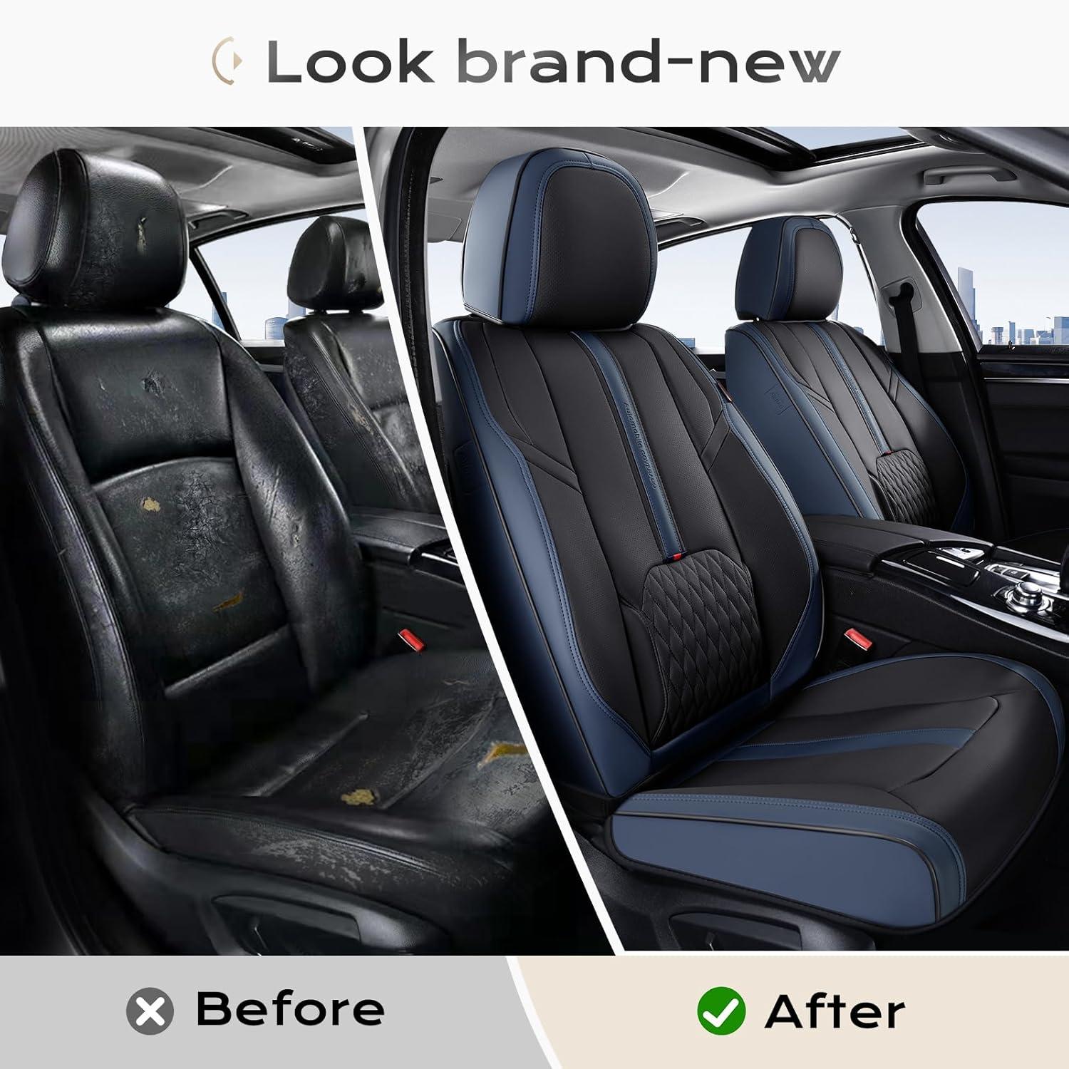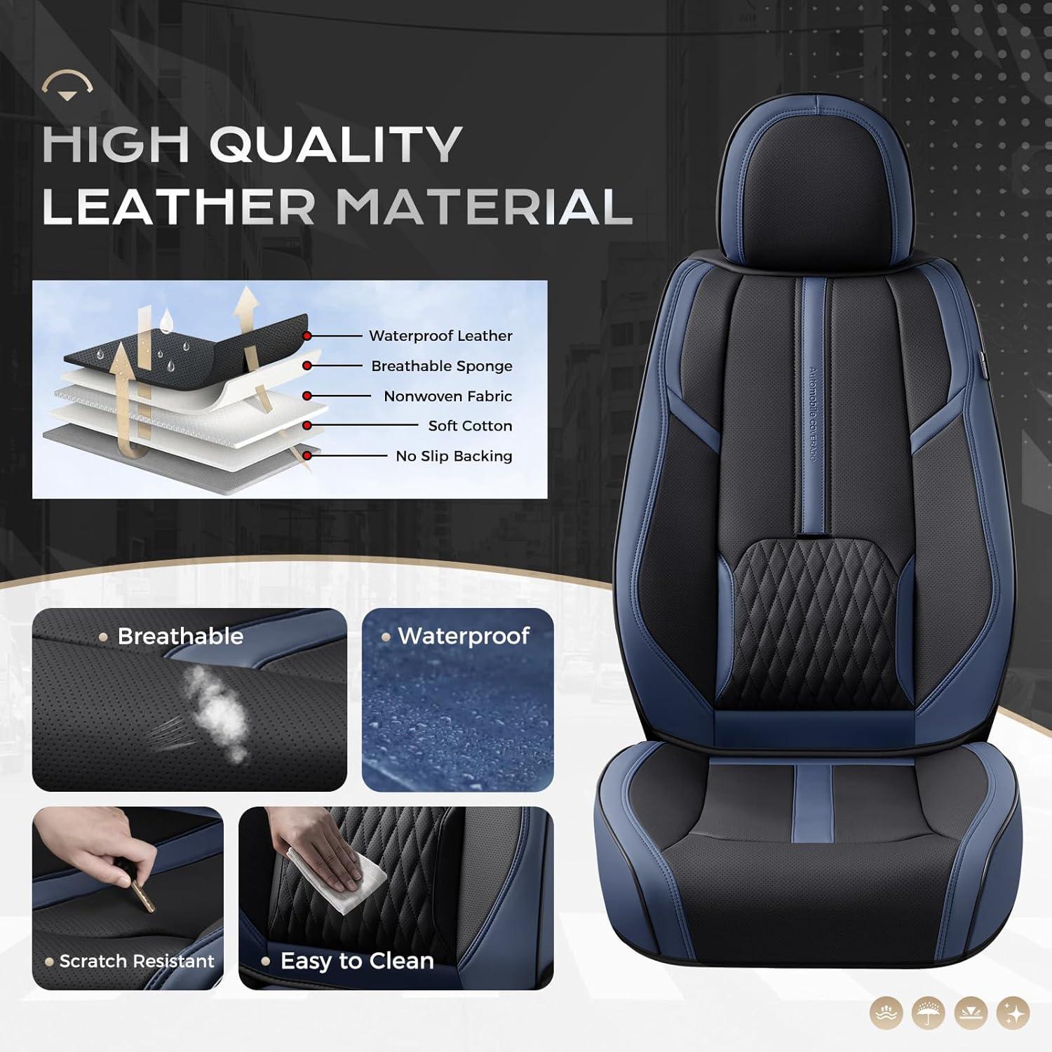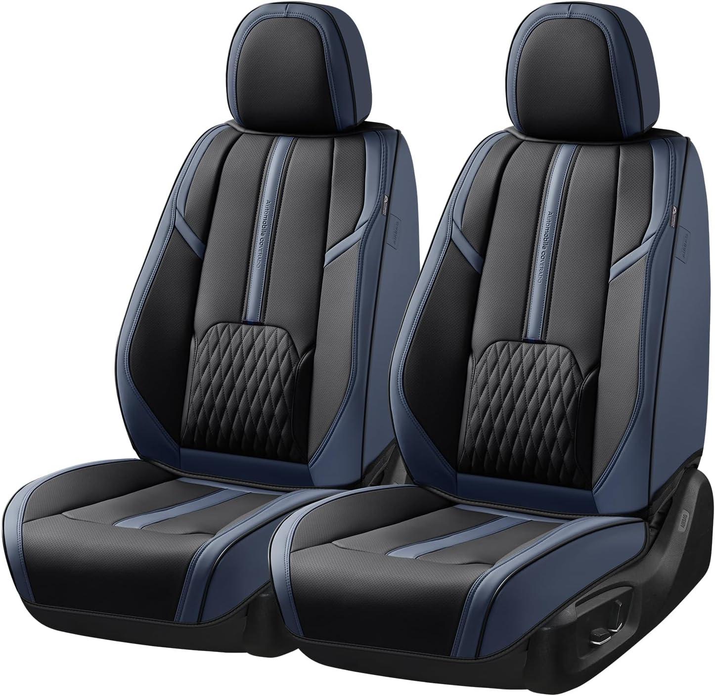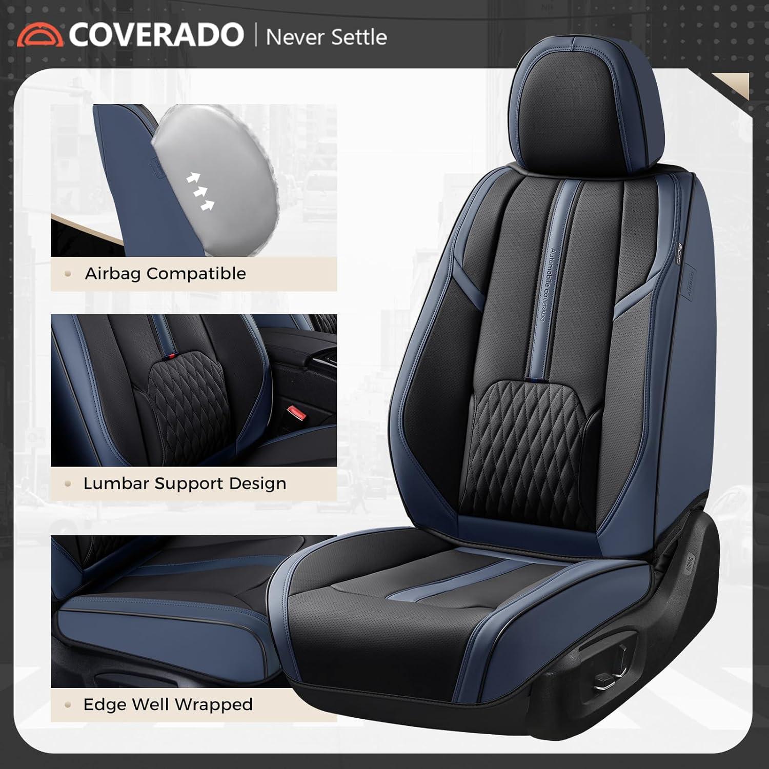 Coverado Car Seat Covers, Front and Back Seat Covers, Universal Seat Cover for Cars with Lumbar Support, Faux Leather Car Seat Protector Waterproof Car Seat Cushions Fit for Most Vehicles (Blue&Black)(Blue&Black)