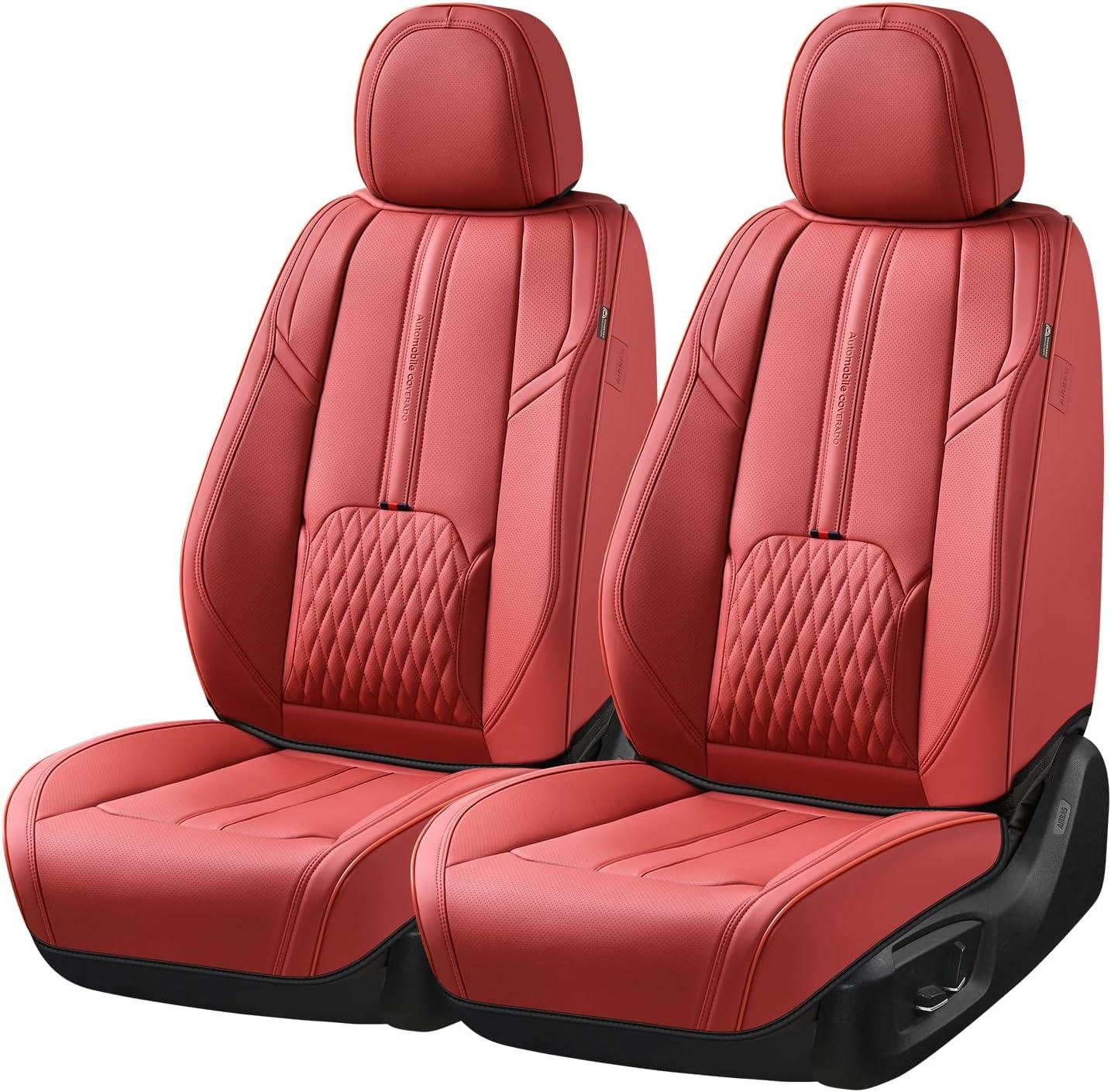 Coverado Car Seat Covers, Front and Back Seat Covers, Universal Seat Cover for Cars with Lumbar Support, Faux Leather Car Seat Protector Waterproof Car Seat Cushions Fit for Most Vehicles (Blue&Black)(Red)