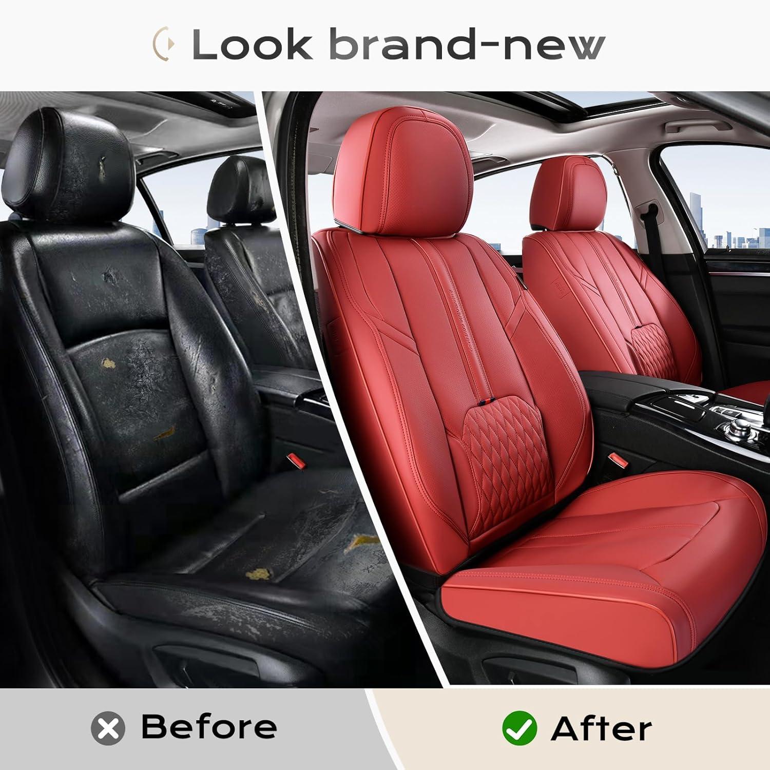 FULL PROTECTION: This waterproof seat cover offers complete protection for your original seats, protecting against UV damage, water, dust and wear. This leather seat cover is easy to clean with a damp cloth, it is perfect for families with children or pets, ensuring longevity and a pristine interior
