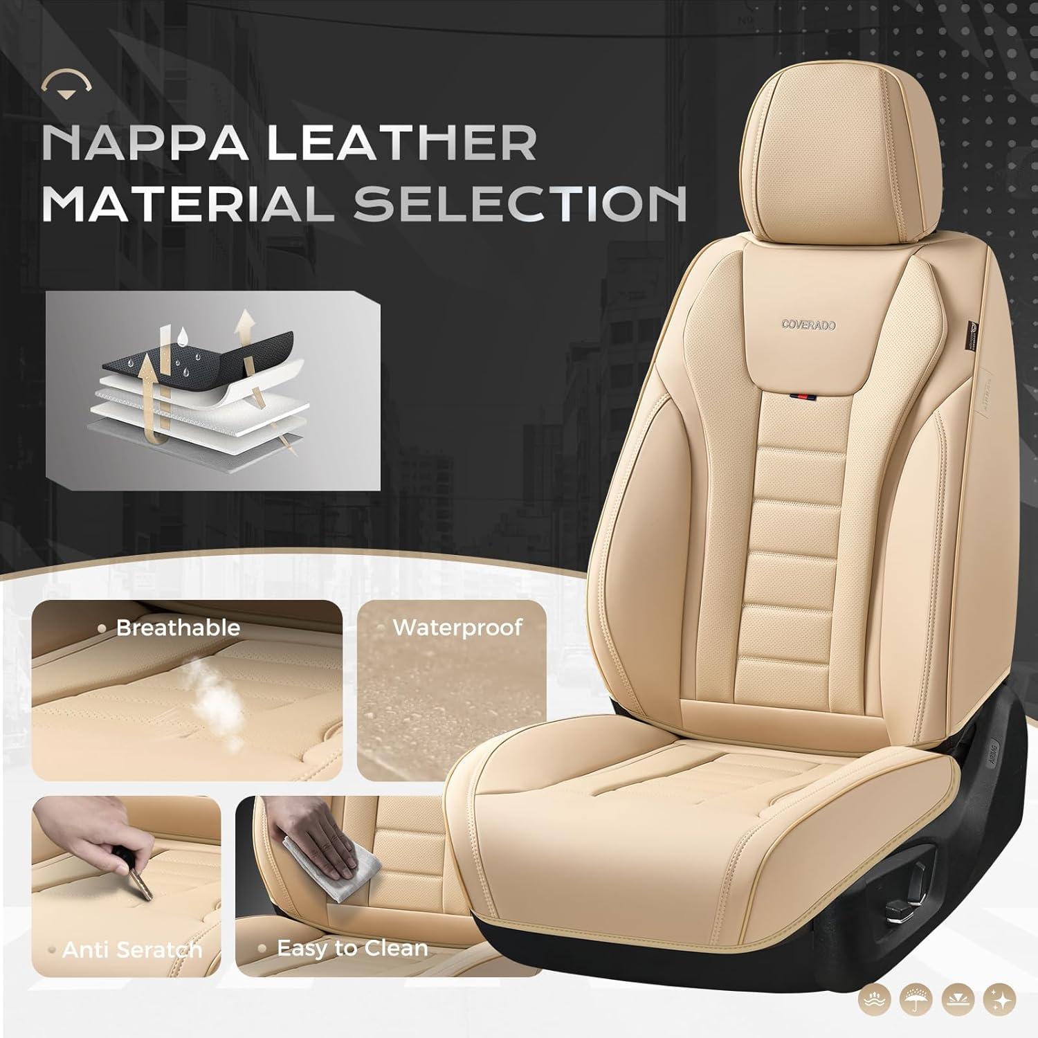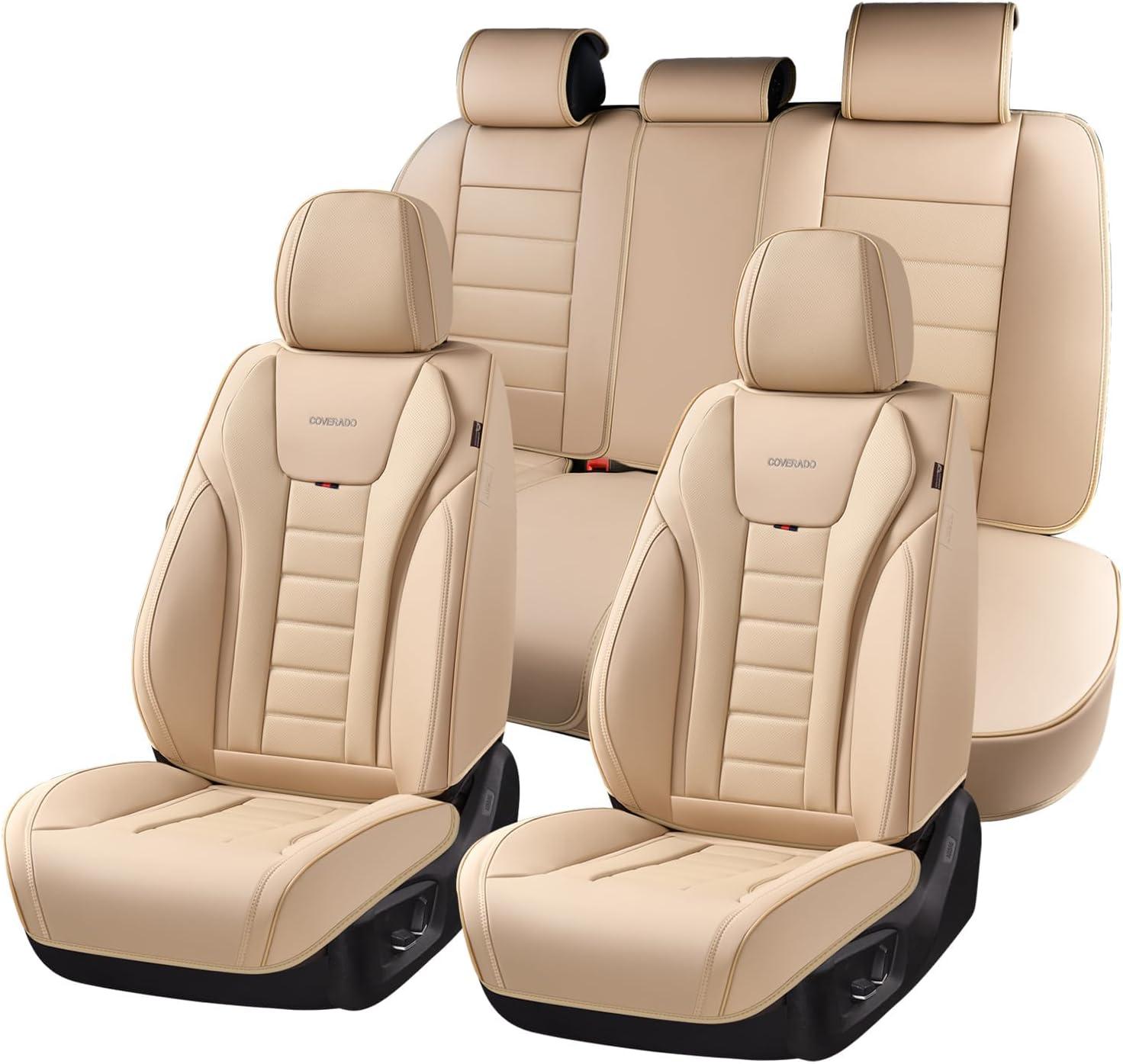 Coverado Car Seat Covers, Front Covers for Cars, Car Seat Cover Front Seats, Automotive Seat Cover, Waterproof, Leather Car Seat Cushion, Universal Interior Covers Seat Protectors for Most Cars(Beige)