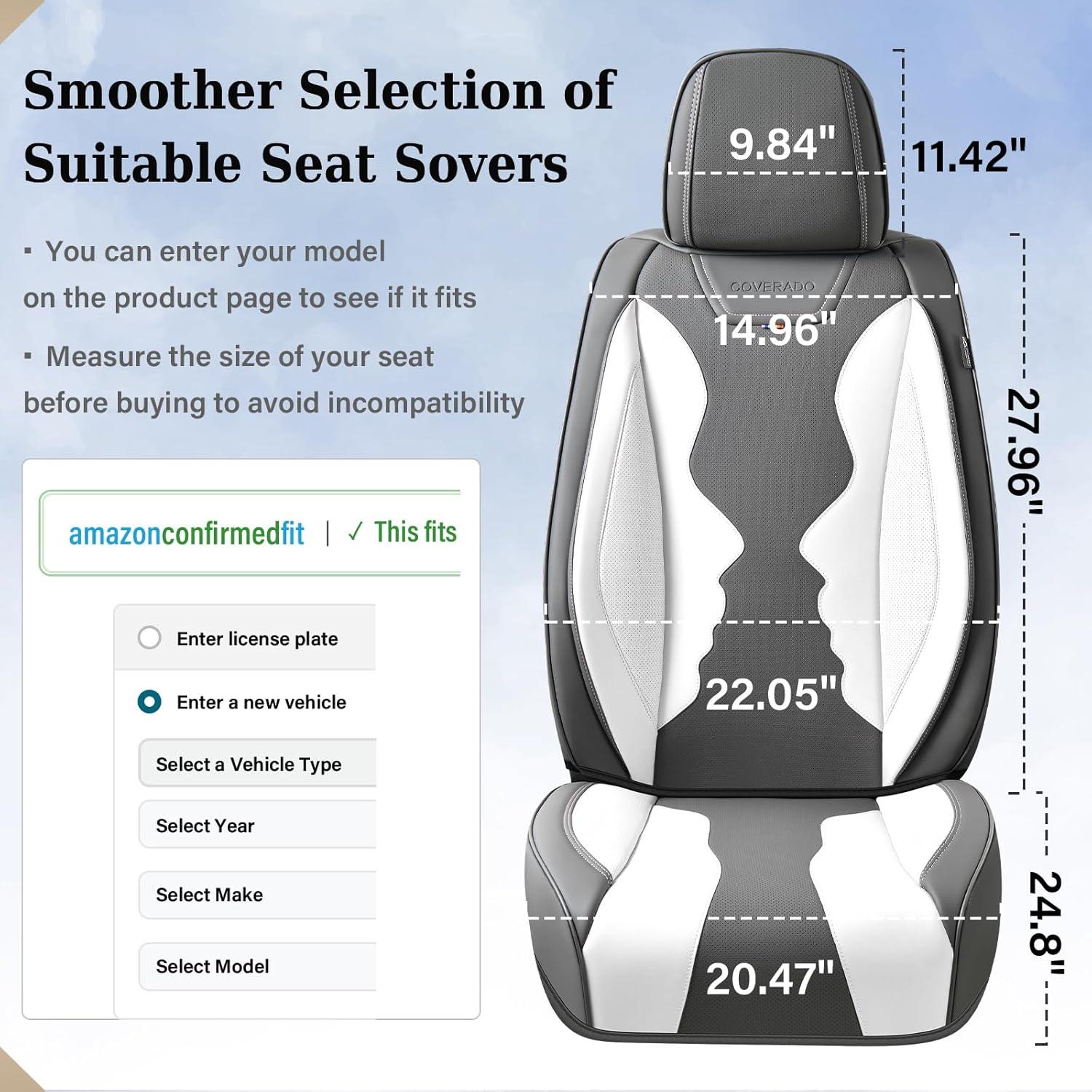 UNIVERSAL FIT – Front Car seat covers each pack comes with 2 front seat covers, which are compatible with most Cars, SUV, Truck and Pick-up. Enter your model on the product page to check if it fits. Tips: Please measure the size of your seat before buying to avoid incompatibility