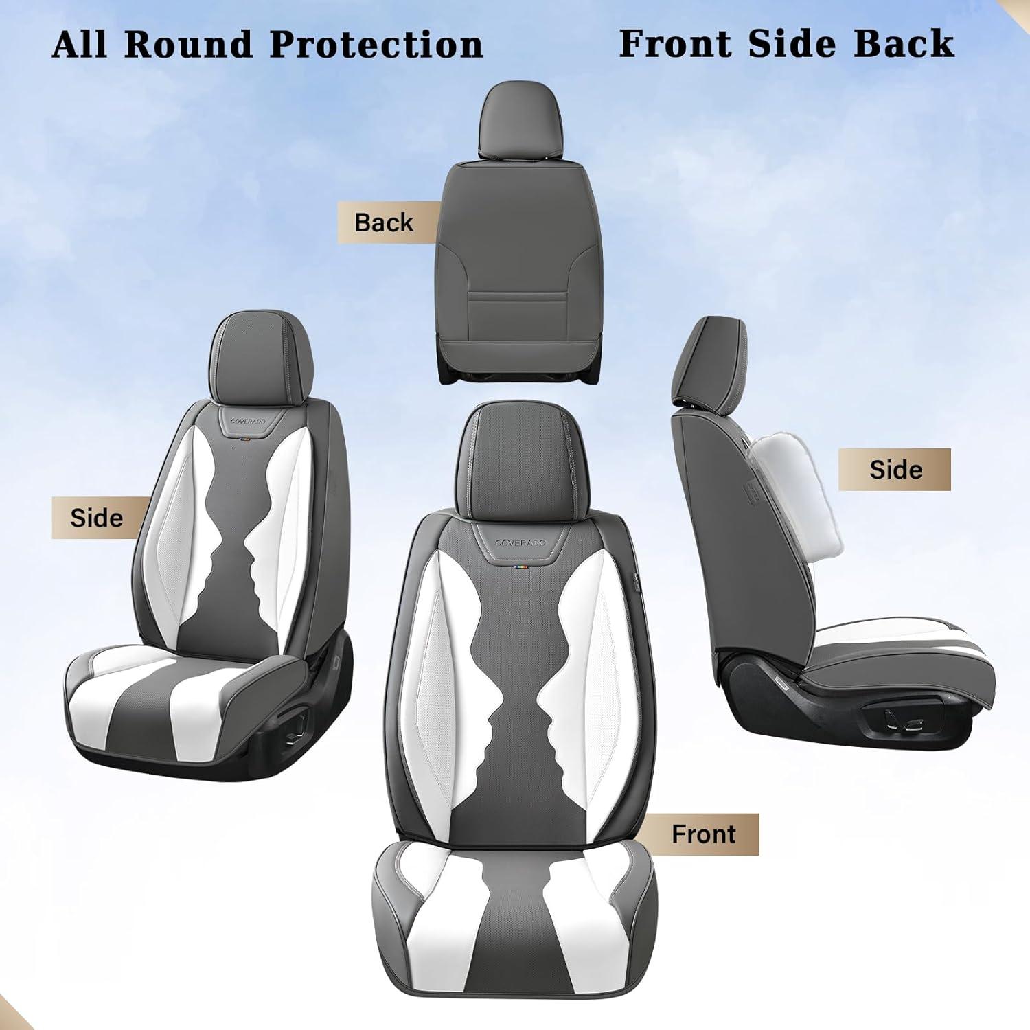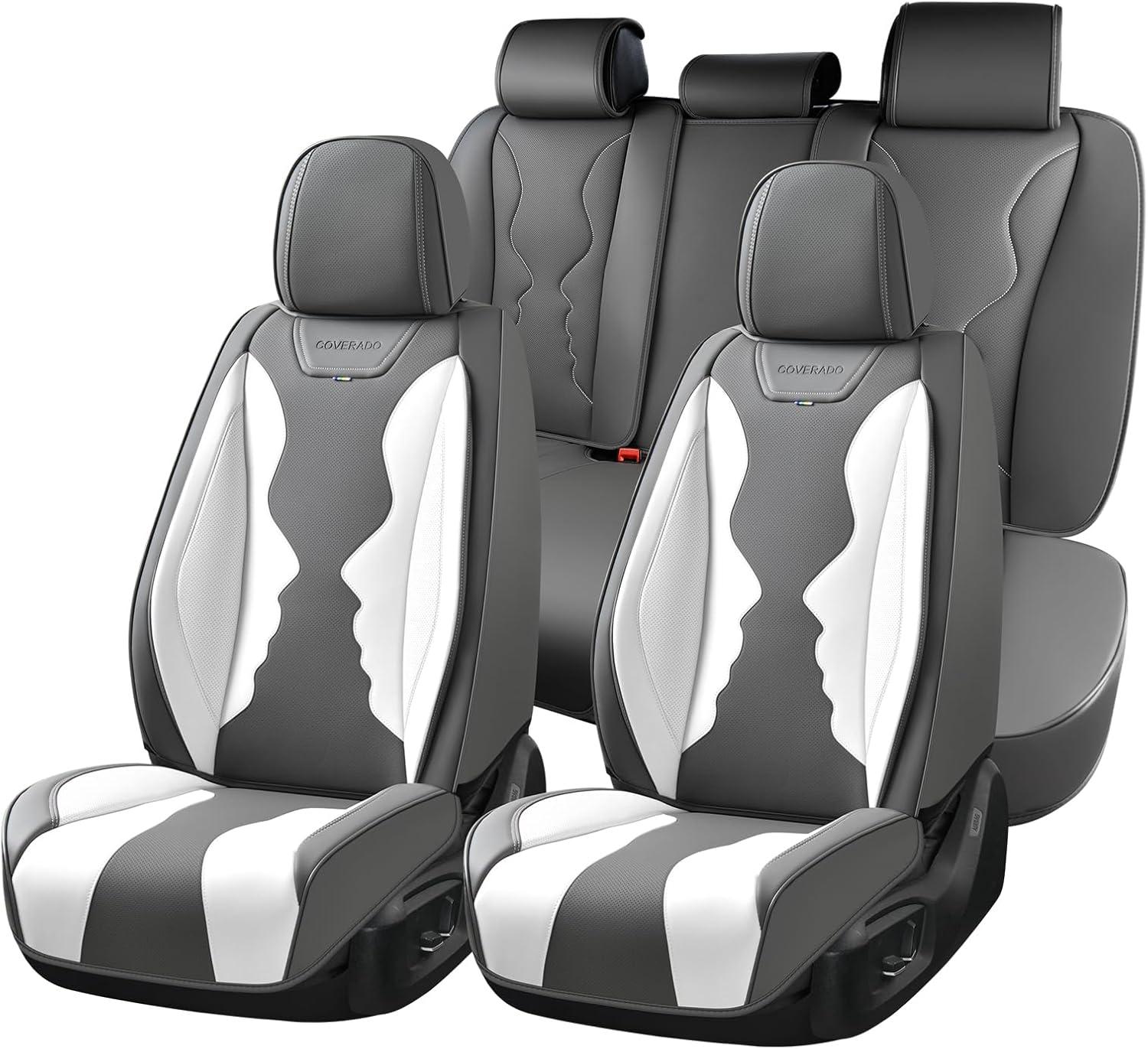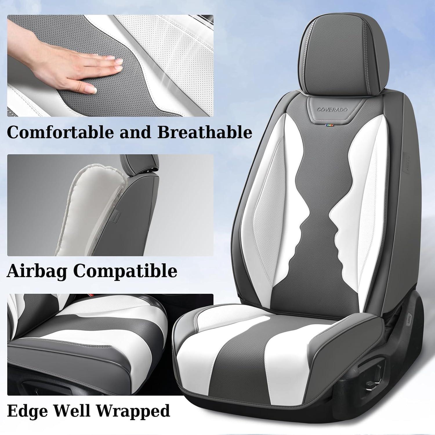 Coverado Car Seat Covers, Front Covers for Cars, Car Seat Cover Front Seats, Automotive Seat Cover, Waterproof, Leather Car Seat Cushion, Universal Interior Covers Seat Protectors for Most Cars(G-White)