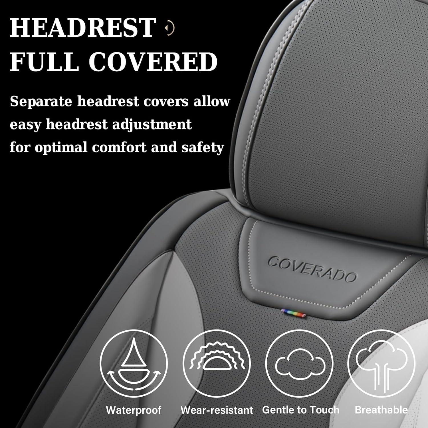 Coverado Car Seat Covers, Front Covers for Cars, Car Seat Cover Front Seats, Automotive Seat Cover, Waterproof, Leather Car Seat Cushion, Universal Interior Covers Seat Protectors for Most Cars(Gray)