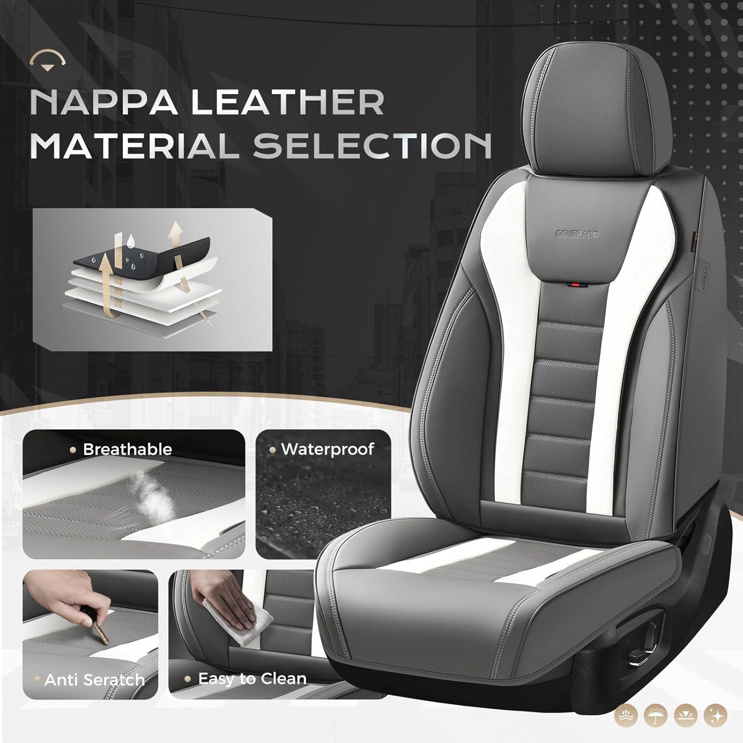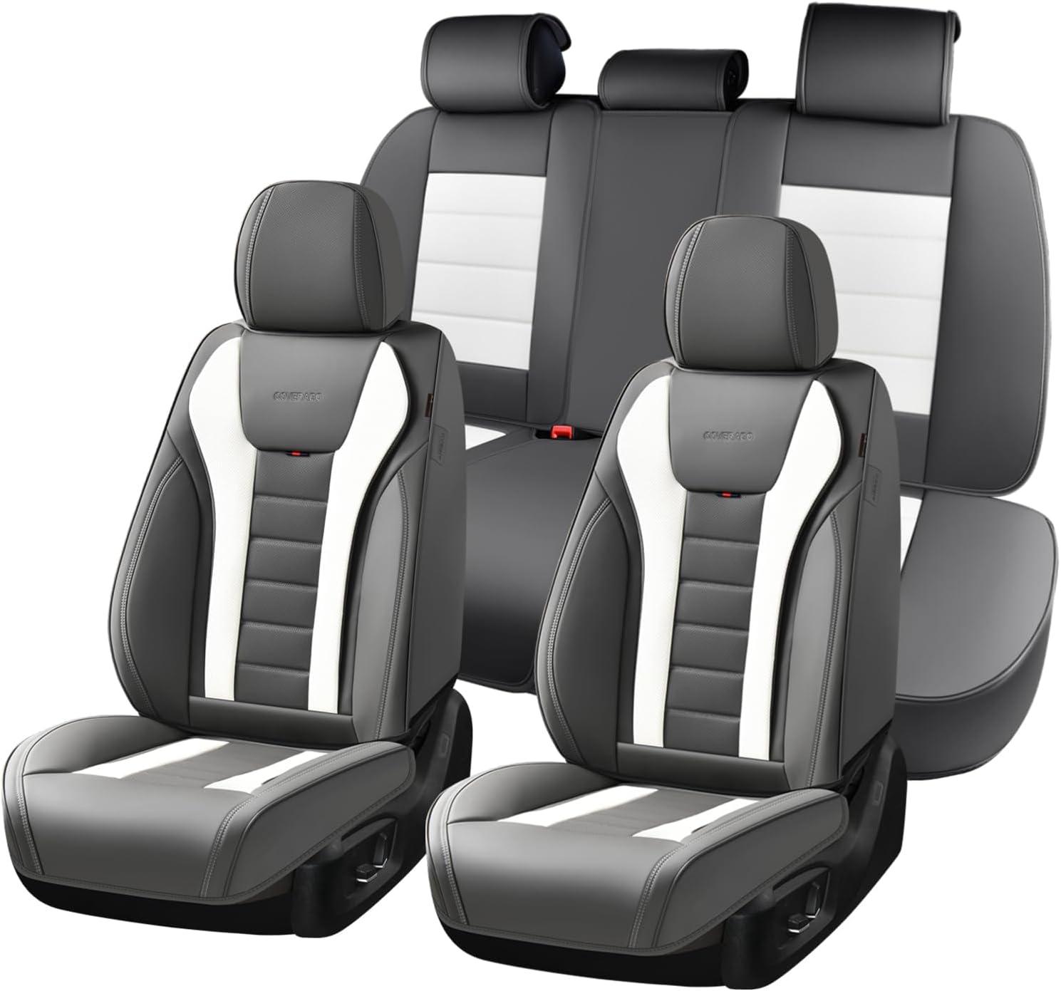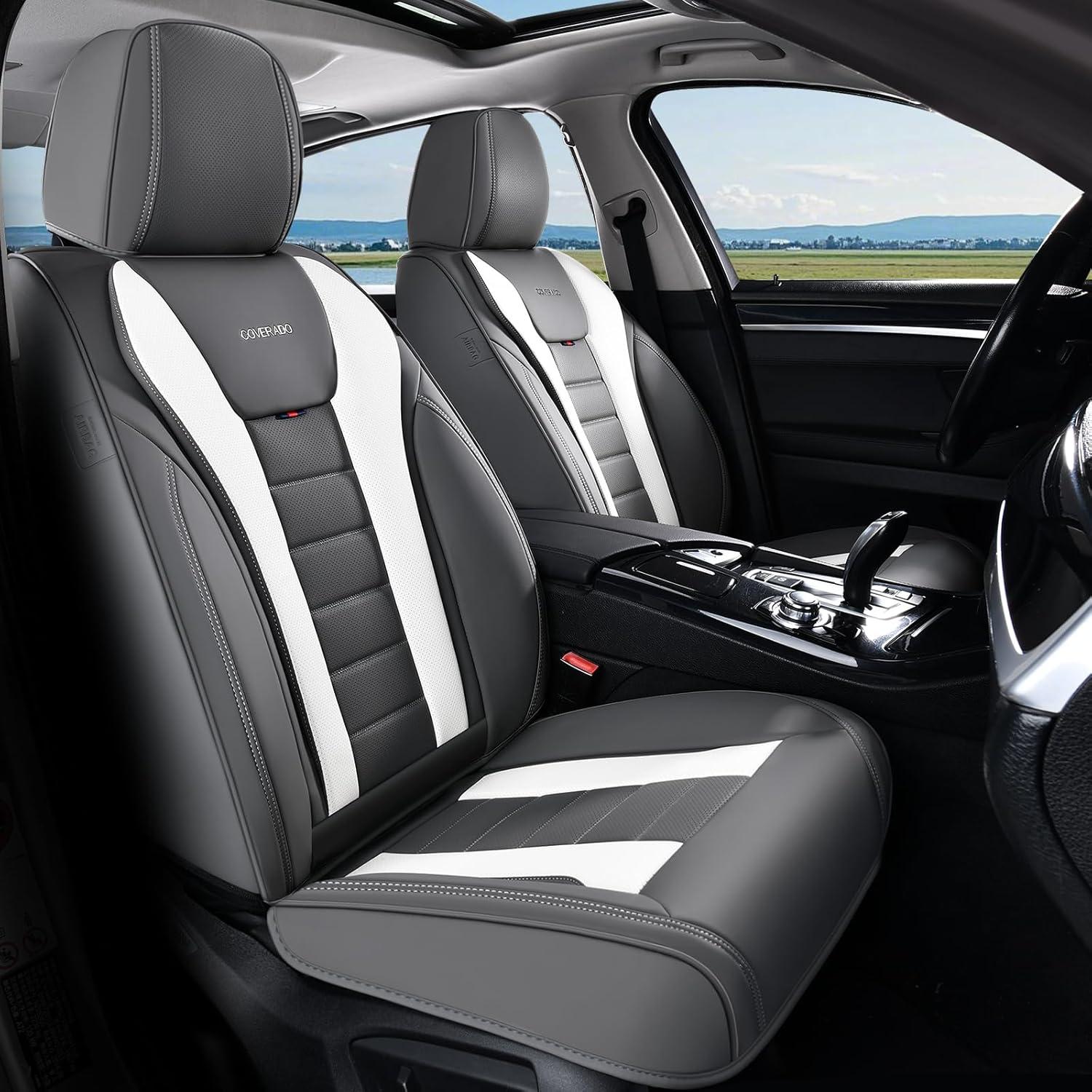 Coverado Car Seat Covers, Front Covers for Cars, Car Seat Cover Front Seats, Automotive Seat Cover, Waterproof, Leather Car Seat Cushion, Universal Interior Covers Seat Protectors for Most Cars(Gray-White)