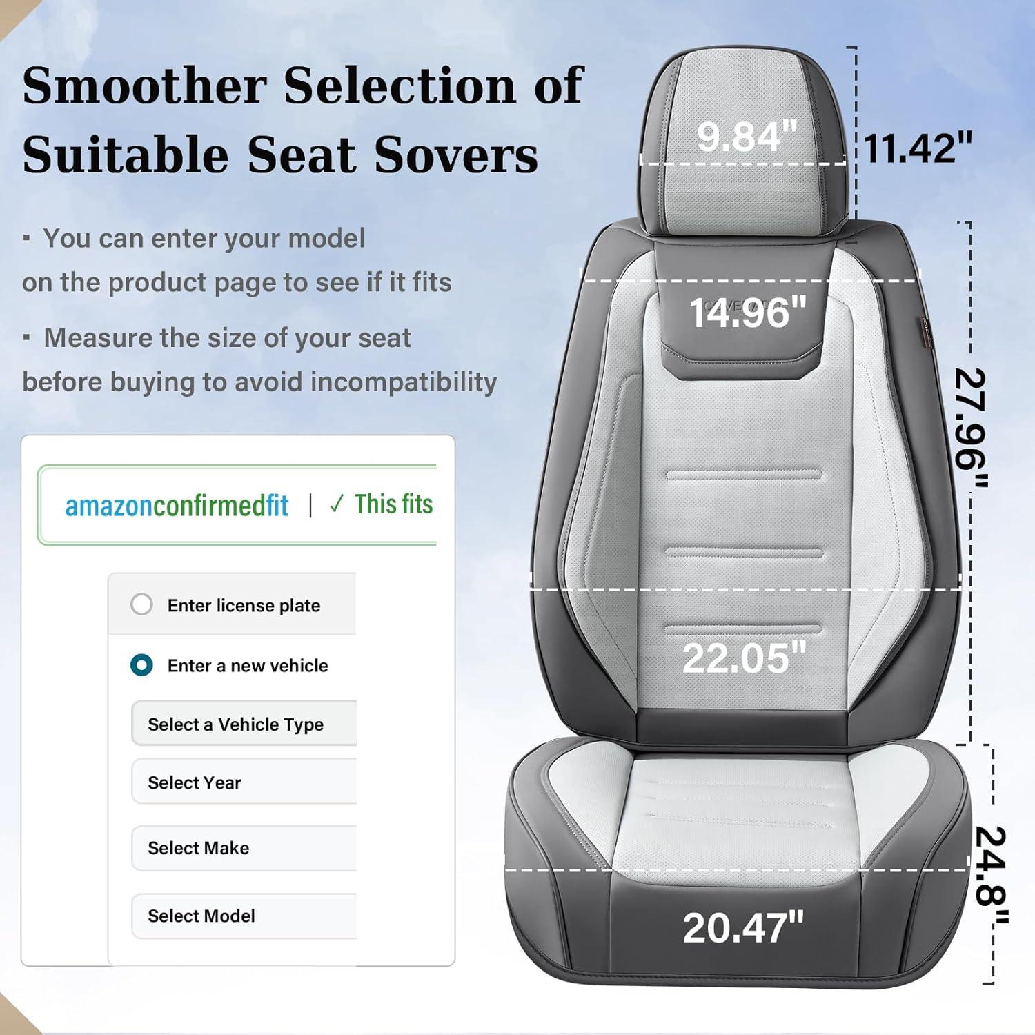 UNIVERSAL FIT – Front Car seat covers each pack comes with 2 front seat covers, which are compatible with most Cars, SUV, Truck and Pick-up. Enter your model on the product page to check if it fits. Tips: Please measure the size of your seat before buying to avoid incompatibility