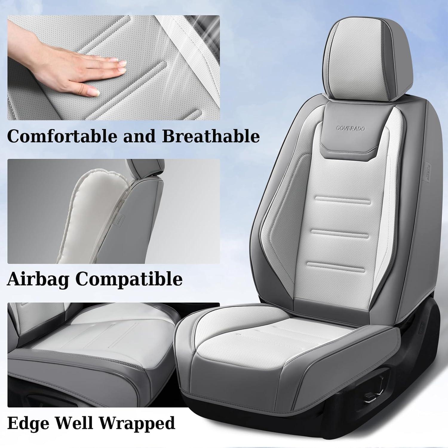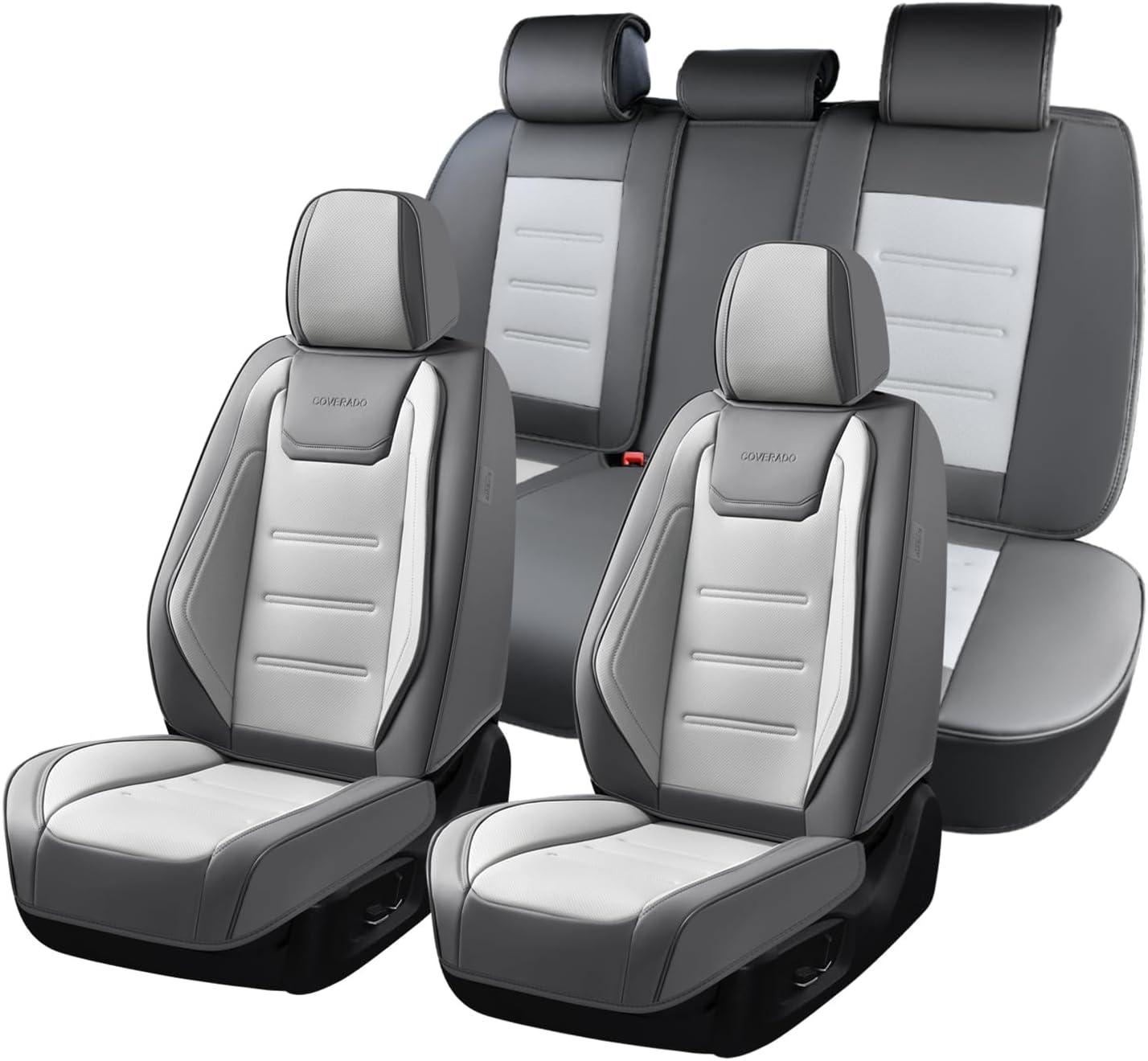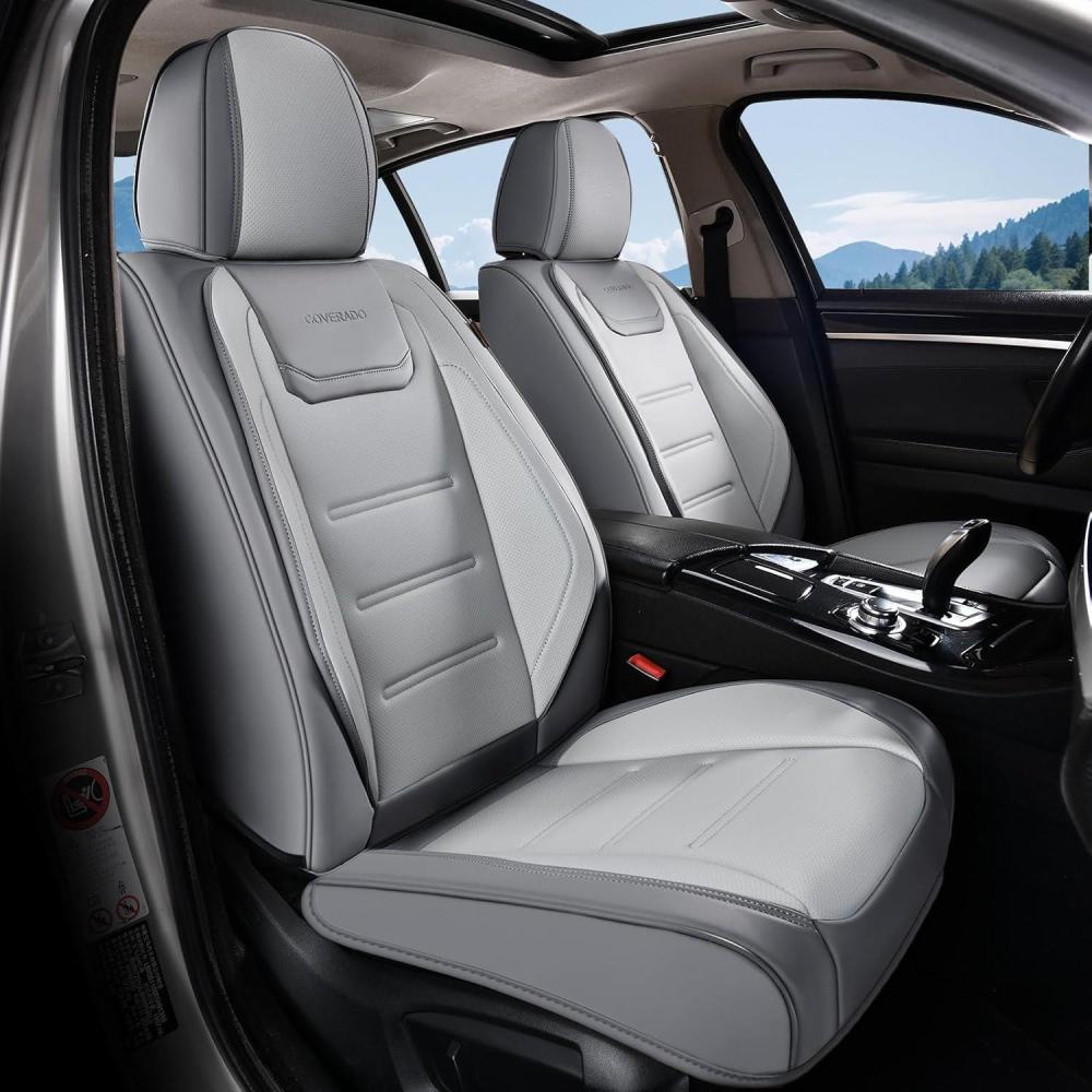 imageCoverado Car Seat Covers Front Covers for Cars Car Seat Cover Front Seats Automotive Seat Cover Waterproof Leather Car Seat Cushion Universal Interior Covers Seat Protectors for Most CarsGrayWhite