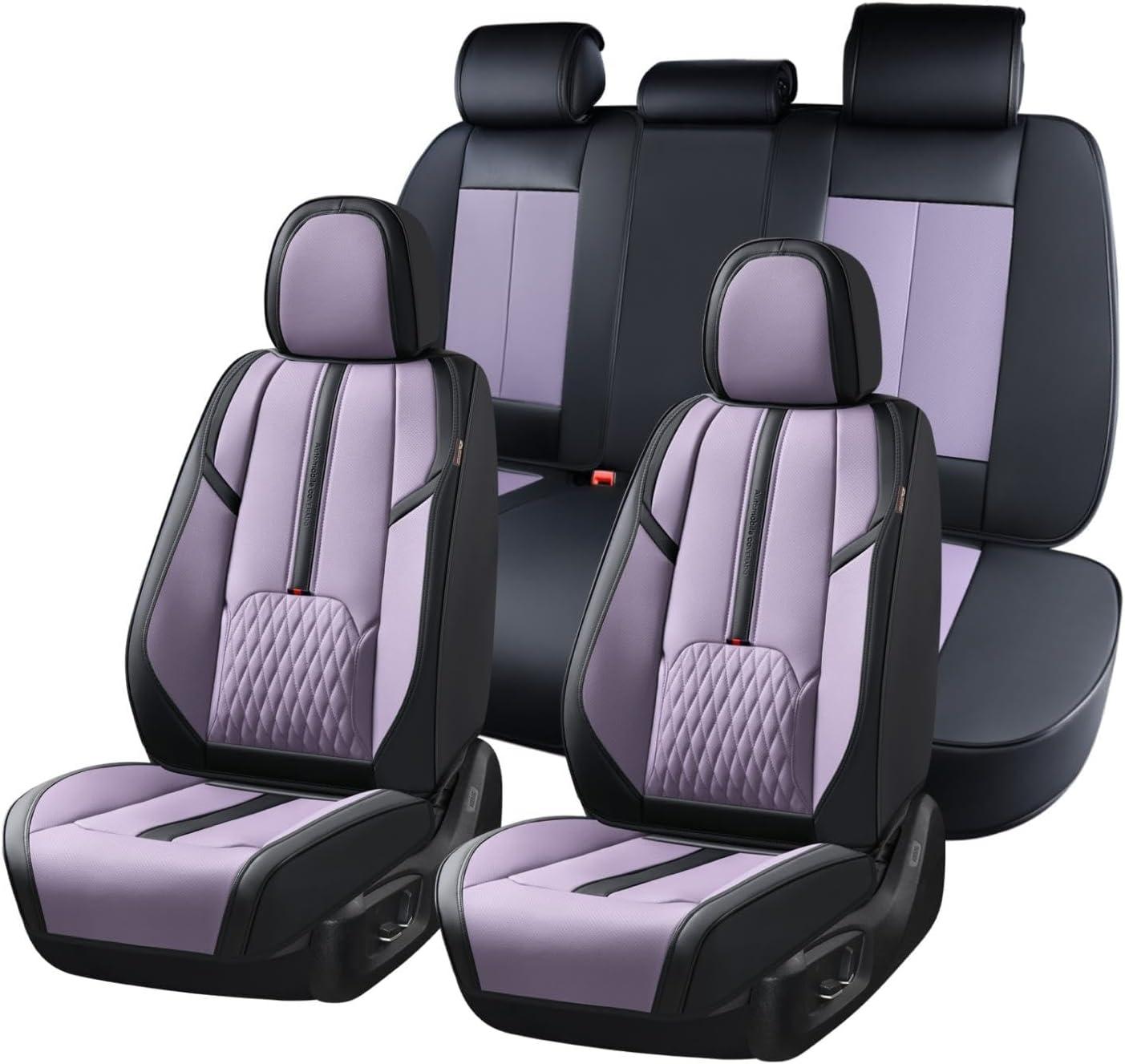 Coverado Car Seat Covers Full Set, Black Seat Cover with Lumbar Support, Luxury Leather Seat Covers for Front and Back, Waterproof Car Seat Protector Car Seat Cushion Universal Fit for Most Vehicles(Black&Purple)