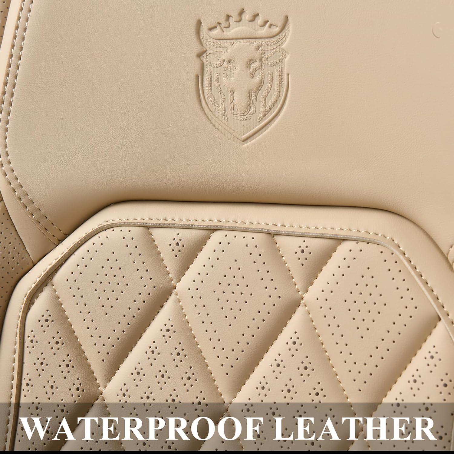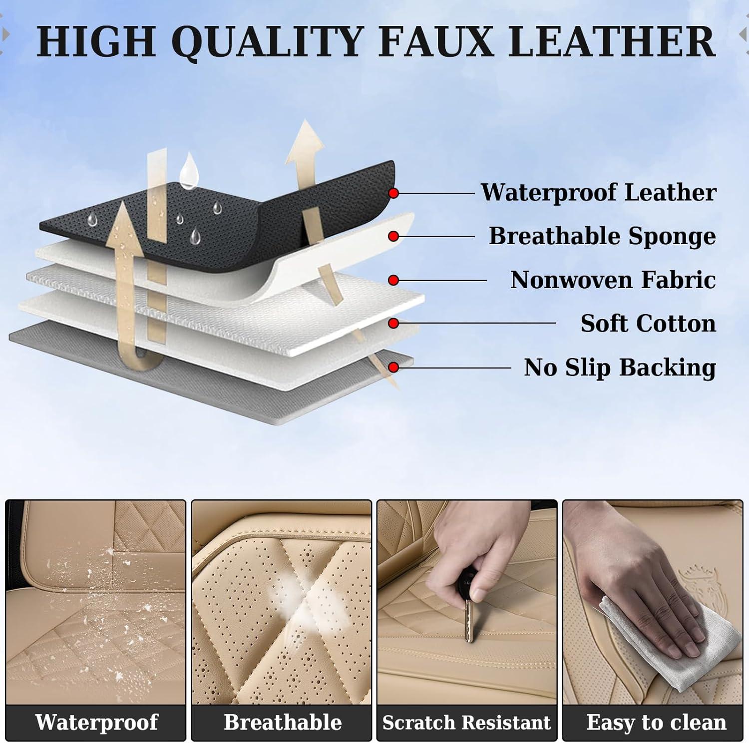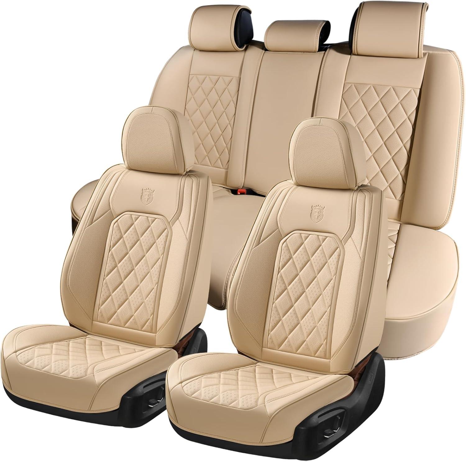 Coverado Car Seat Covers Full Set, Faux Leather Seat Covers for Car, Waterproof Car Seat Protectors 5 Seats, Automotive Seat Covers Universal Fit for Most Cars SUV Trucks- Black&White(A-Beige)