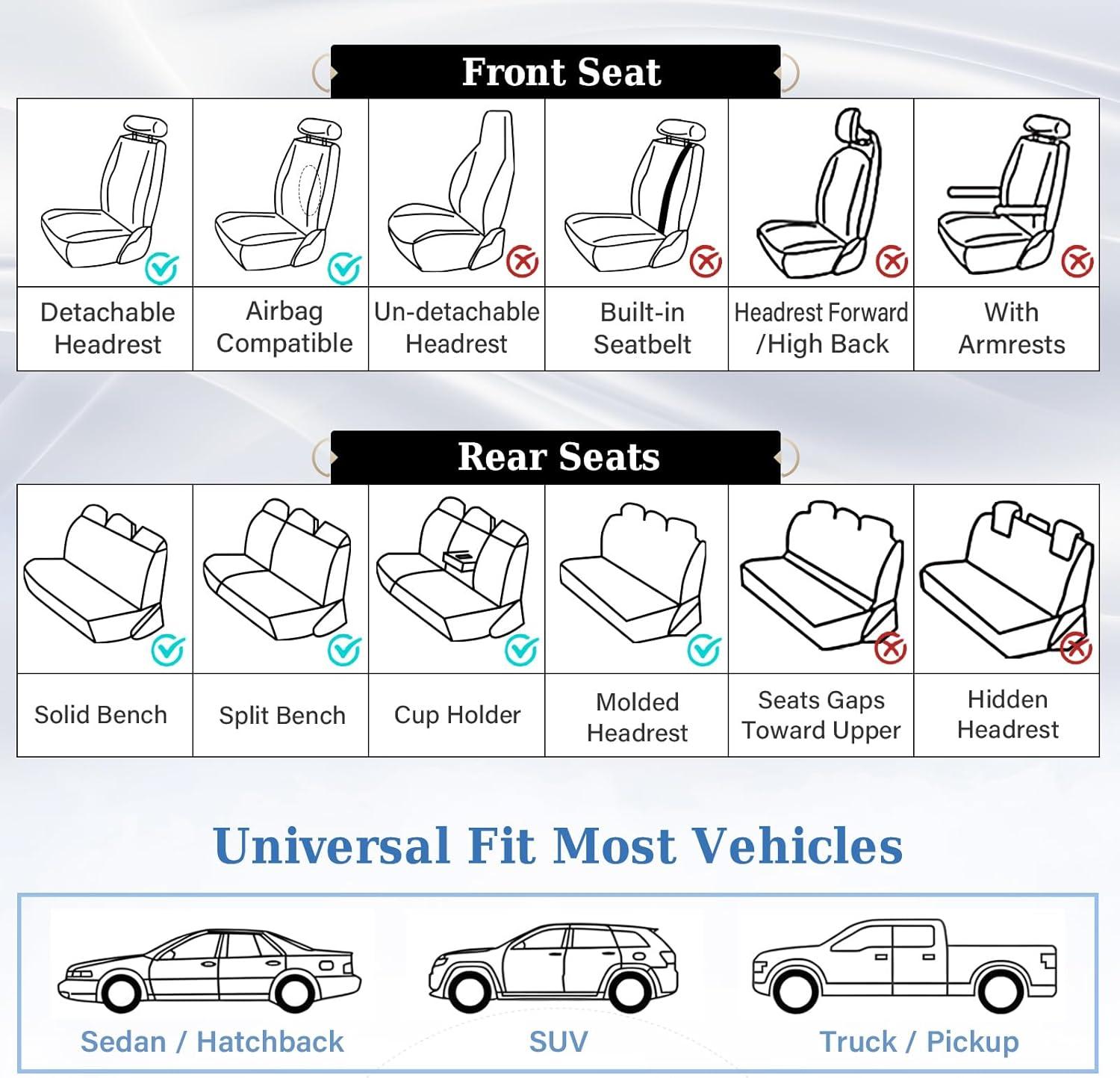 UNIVERSAL FIT: Coverado car seat covers are universal manufactured to meet most specification of most vehicles. Just cover the seat but not inhinder the original functions. Every auto feature is retained, such as airbag, seatbelts, armrests and seat