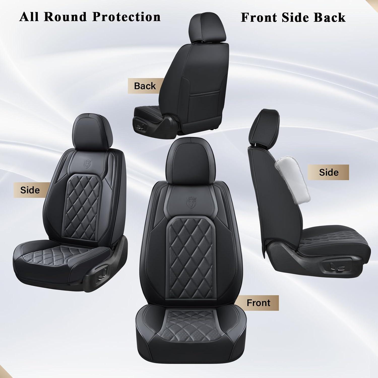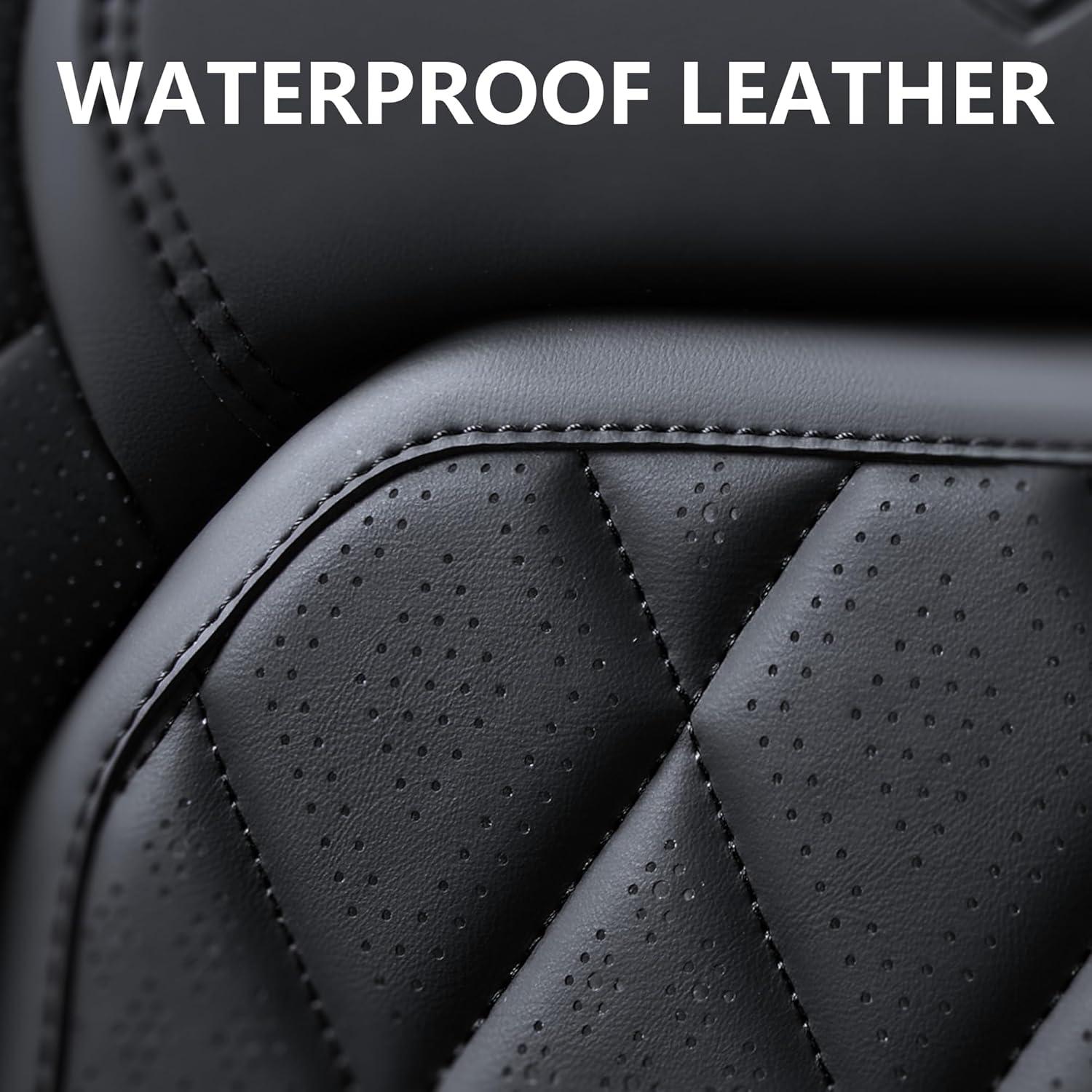 Coverado Car Seat Covers Full Set, Faux Leather Seat Covers for Car, Waterproof Car Seat Protectors 5 Seats, Automotive Seat Covers Universal Fit for Most Cars SUV Trucks- Black&White(A-Black)