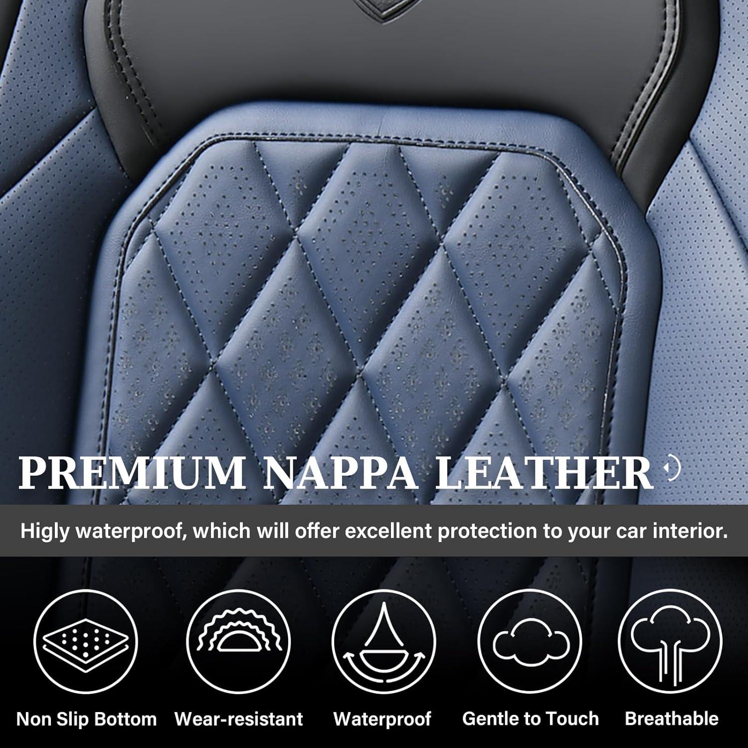 SUPERIOR LEATHER: Car seat covers are made from perforated NAPPA LEATHER and DURABLE FAUX LEATHER with high-resilience foam padding. This leather car seat cover is wear-resistant, smooth, breathable and soft to the touch, providing you with a comfortable driving experience
