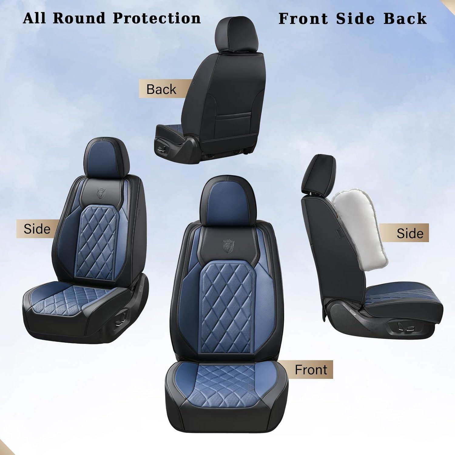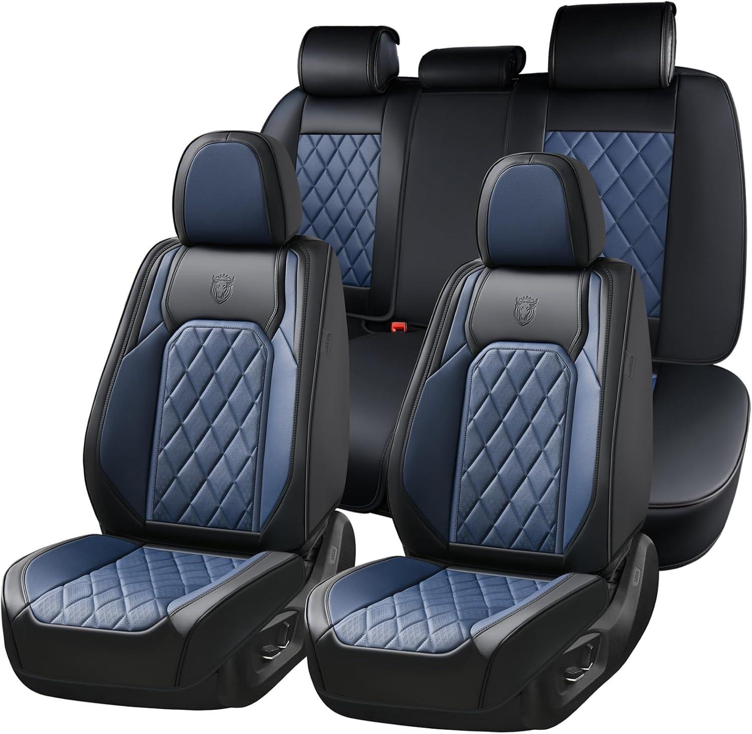 Coverado Car Seat Covers Full Set, Faux Leather Seat Covers for Car, Waterproof Car Seat Protectors 5 Seats, Automotive Seat Covers Universal Fit for Most Cars SUV Trucks- Black&White(A-Black&Blue)