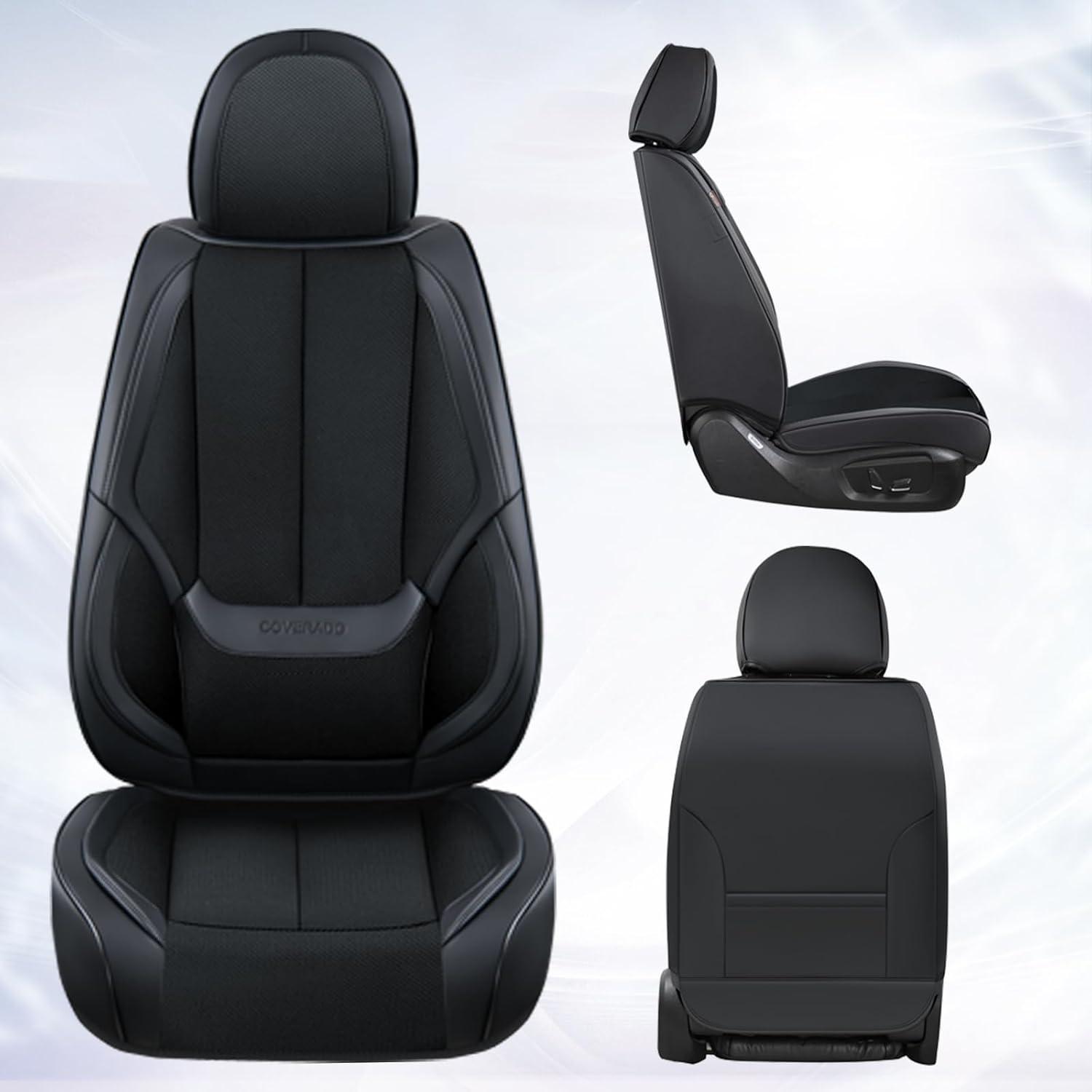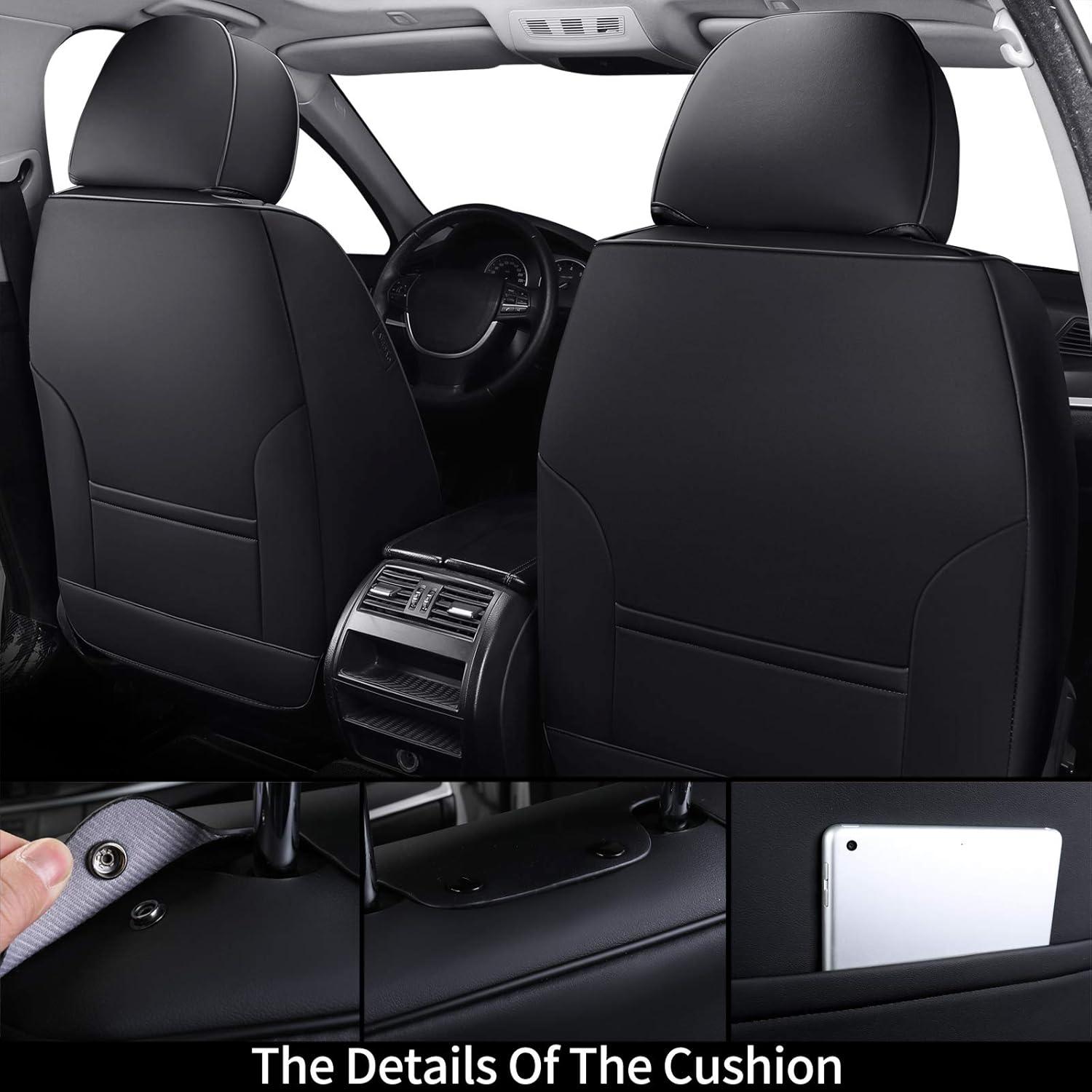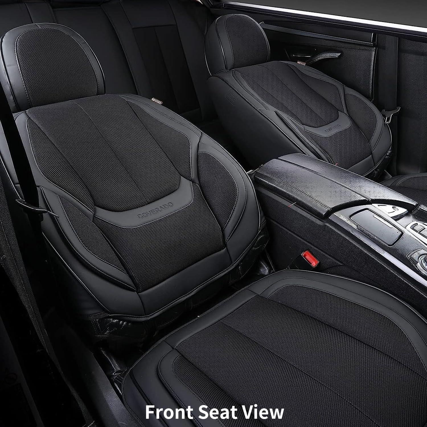 Coverado Car Seat Covers Full Set, Faux Leather Seat Covers for Car, Waterproof Car Seat Protectors 5 Seats, Automotive Seat Covers Universal Fit for Most Cars SUV Trucks- Black&White(Fabric-Black)