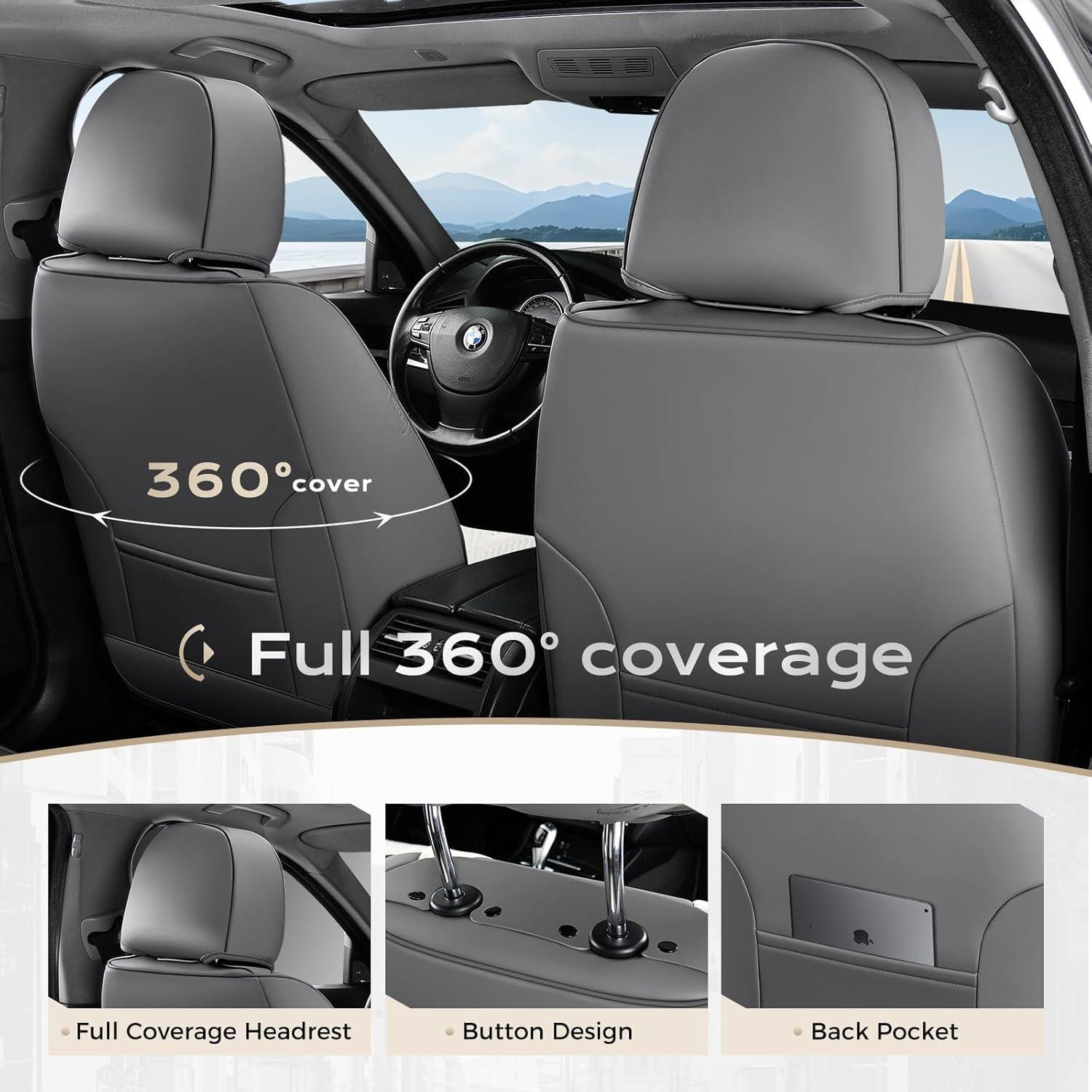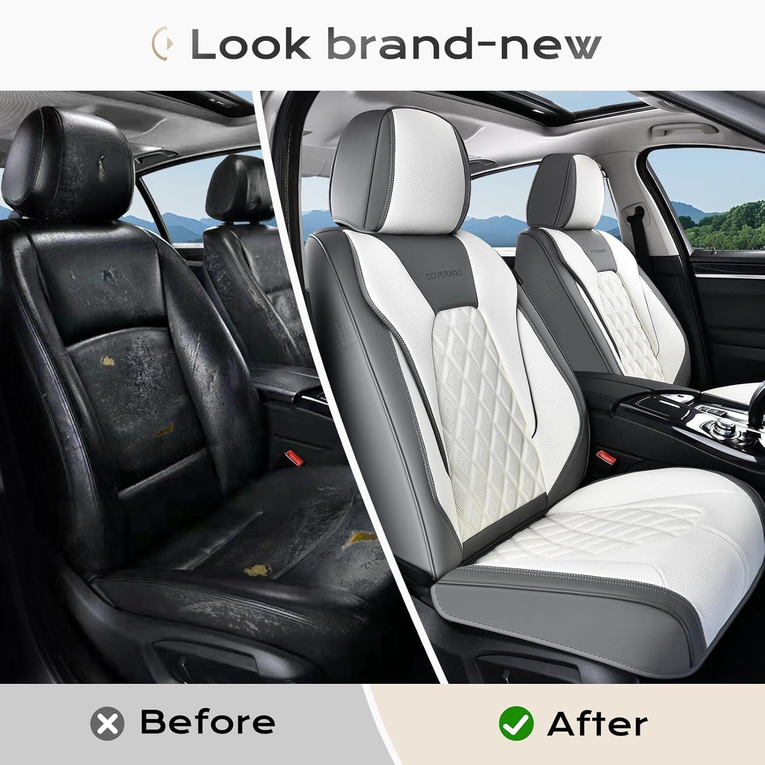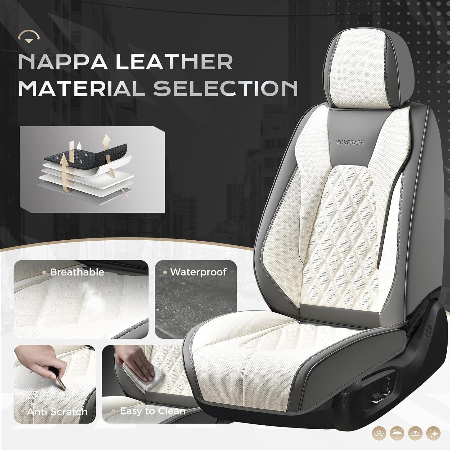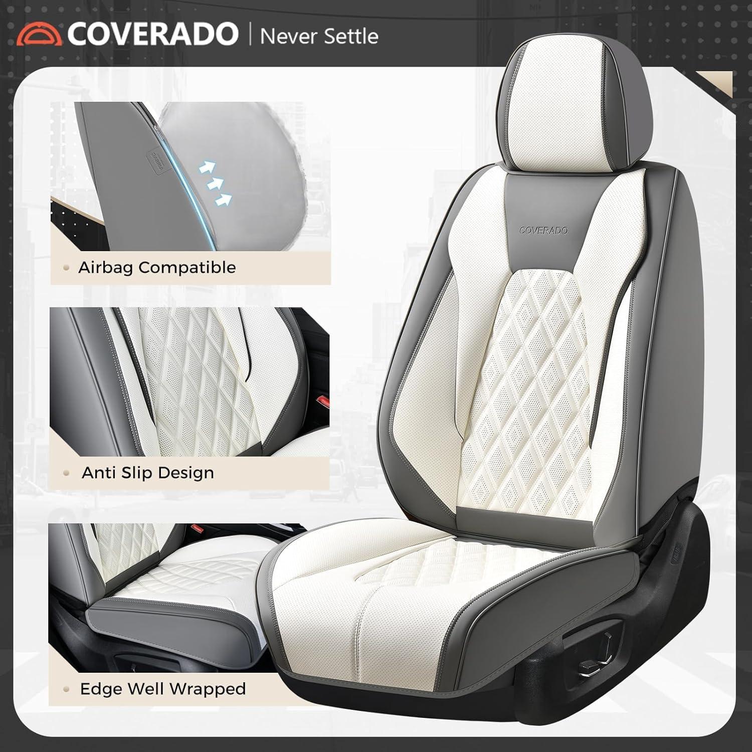 【Preferred Leather】Coverado seat covers is made of perforated Nappa leather and durable faux leather with high resilience density foam padding. The breathable and Waterproof car seat cushion will enhance your comfortable sense of touch and relieve fatigue for your driving. These car seat protectors are stylish and modern, adding a touch of fashion and luxury to your car interior