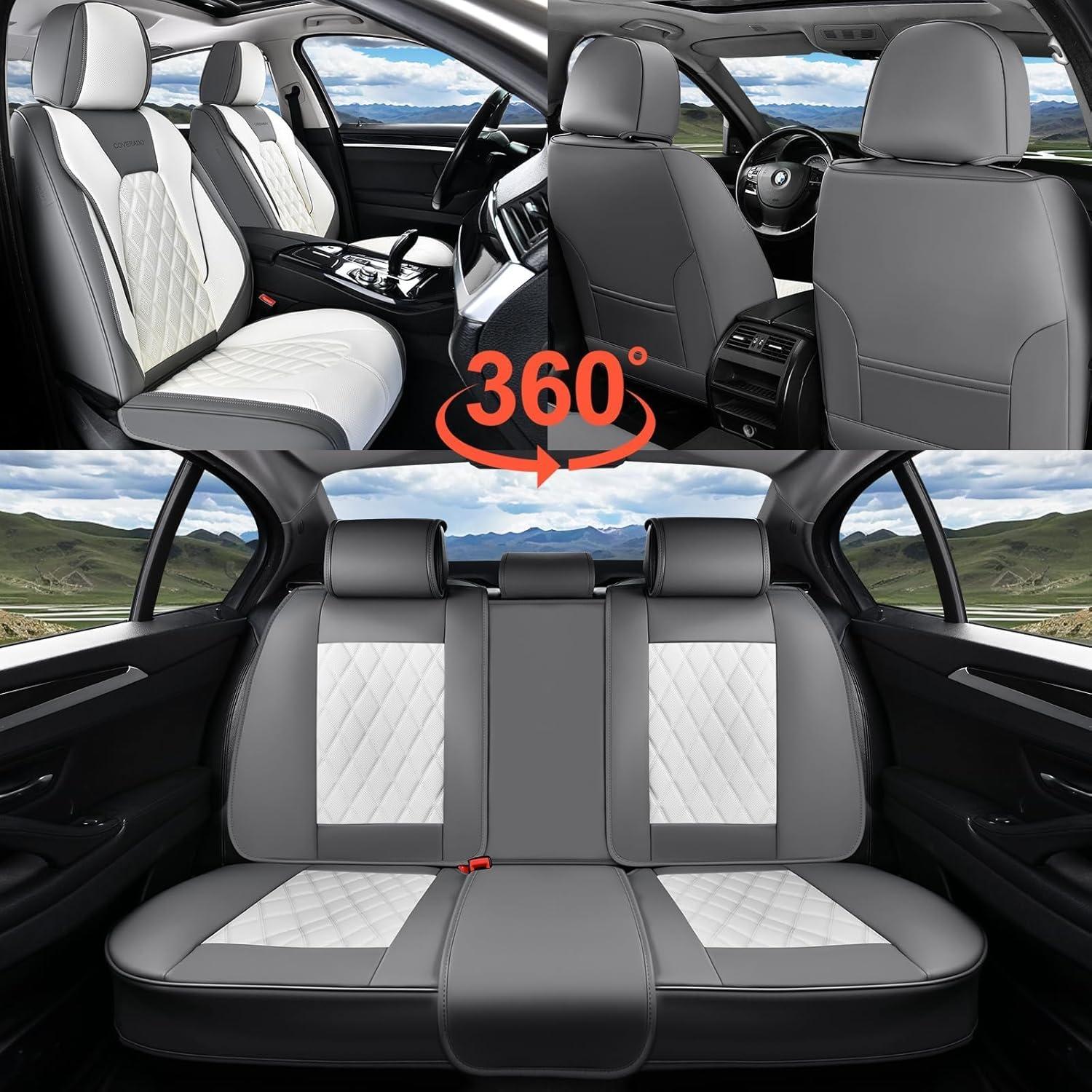 Coverado Car Seat Covers Full Set, Universal Seat Covers for Cars, Car Seat Protector Waterproof, Nappa Car Seat Cushion, Car Seat Covers Front Seats and Back Fit for Most Cars Trucks SUV, Black&Blue(Gray&White(Grid))