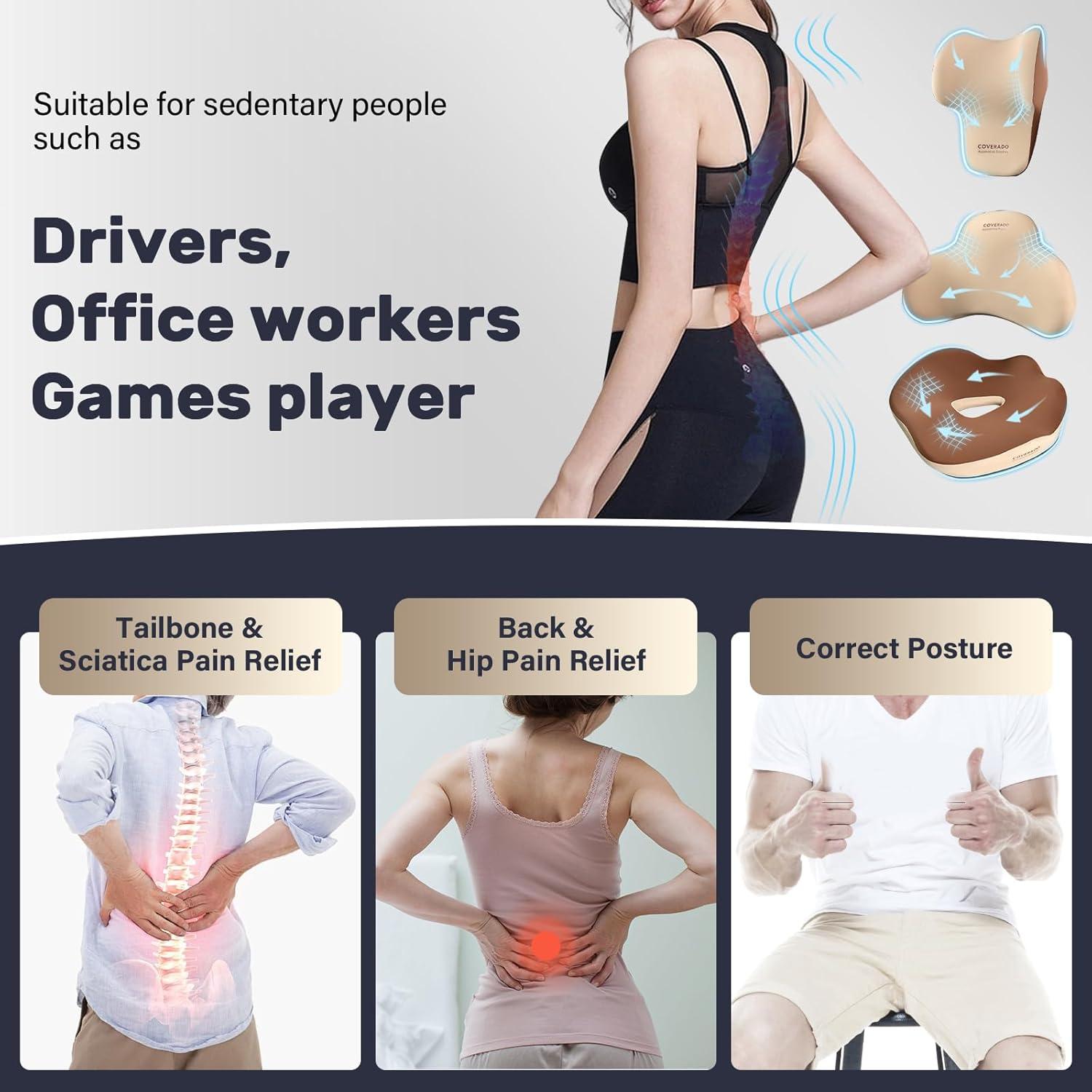 Coverado Car Seat Cushion and Lumbar Support Pillow One Piece, Memory Foam Ergonomic Back Support Driving Seat Cushion for Back Pain, Non-Slip Washable Cushion for Car, Driver, Office(Seat Cushion 3-in-1-beige)
