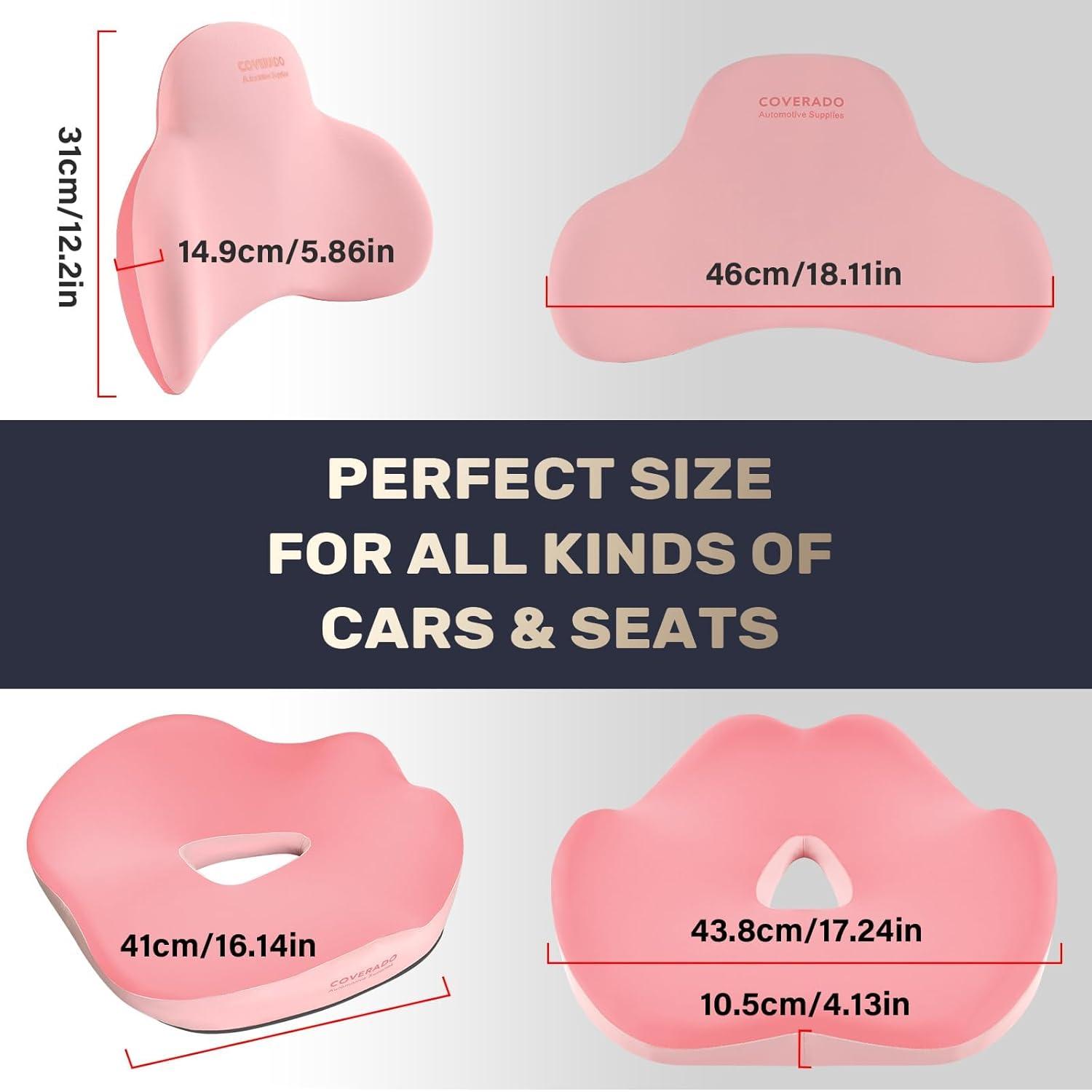 Coverado Car Seat Cushion and Lumbar Support Pillow One Piece, Memory Foam Ergonomic Back Support Driving Seat Cushion for Back Pain, Non-Slip Washable Cushion for Car, Driver, Office(Seat Cushion & Lumbar Support-pink)