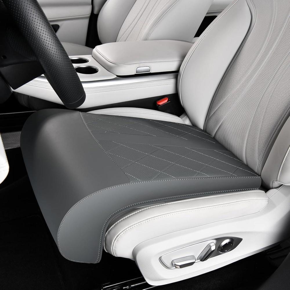 PRACTICAL DESIGN: The bottom of the car seat leg support pad is designed with non-slip silicone to ensure stability and safety while driving. The breathable, wear-resistant leather fabric has a perforated design to prevent stuffiness during long periods of sitting. This provides a comfortable experience suitable for all seasons