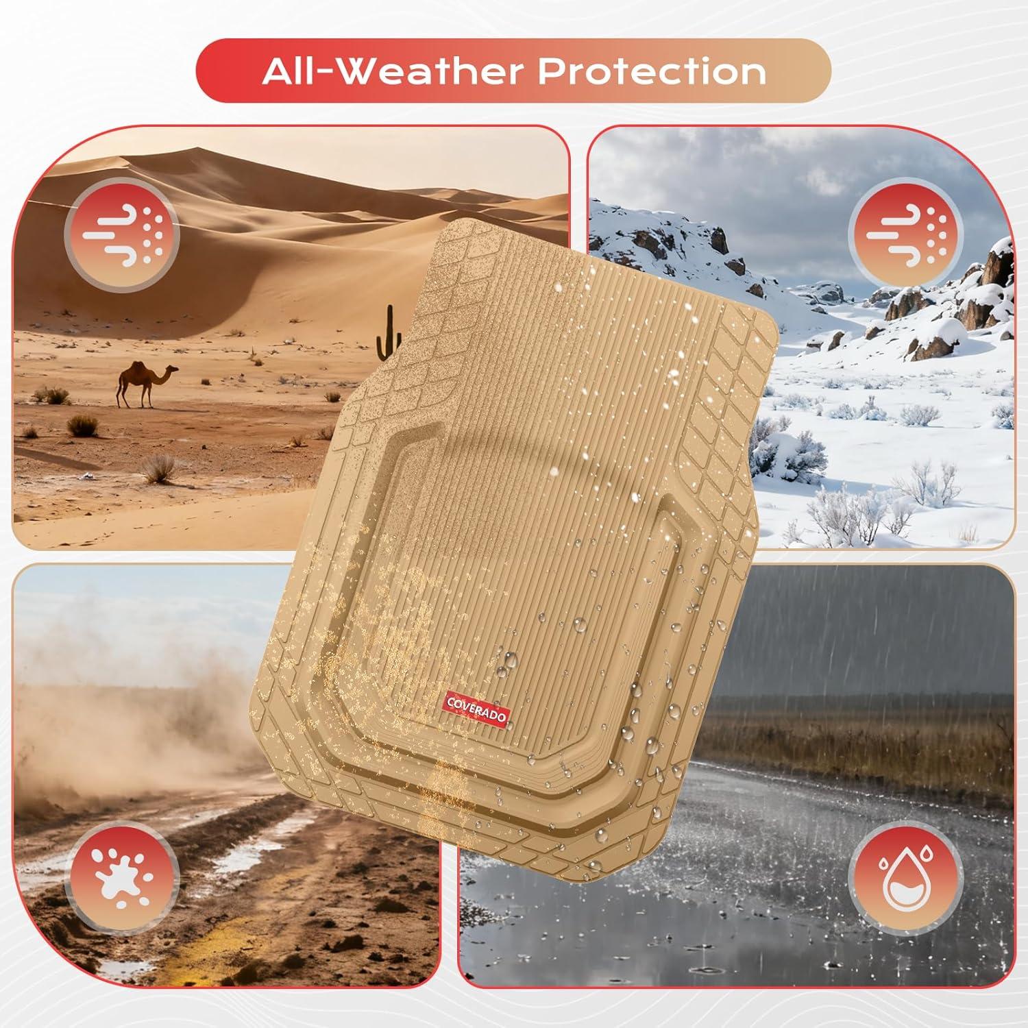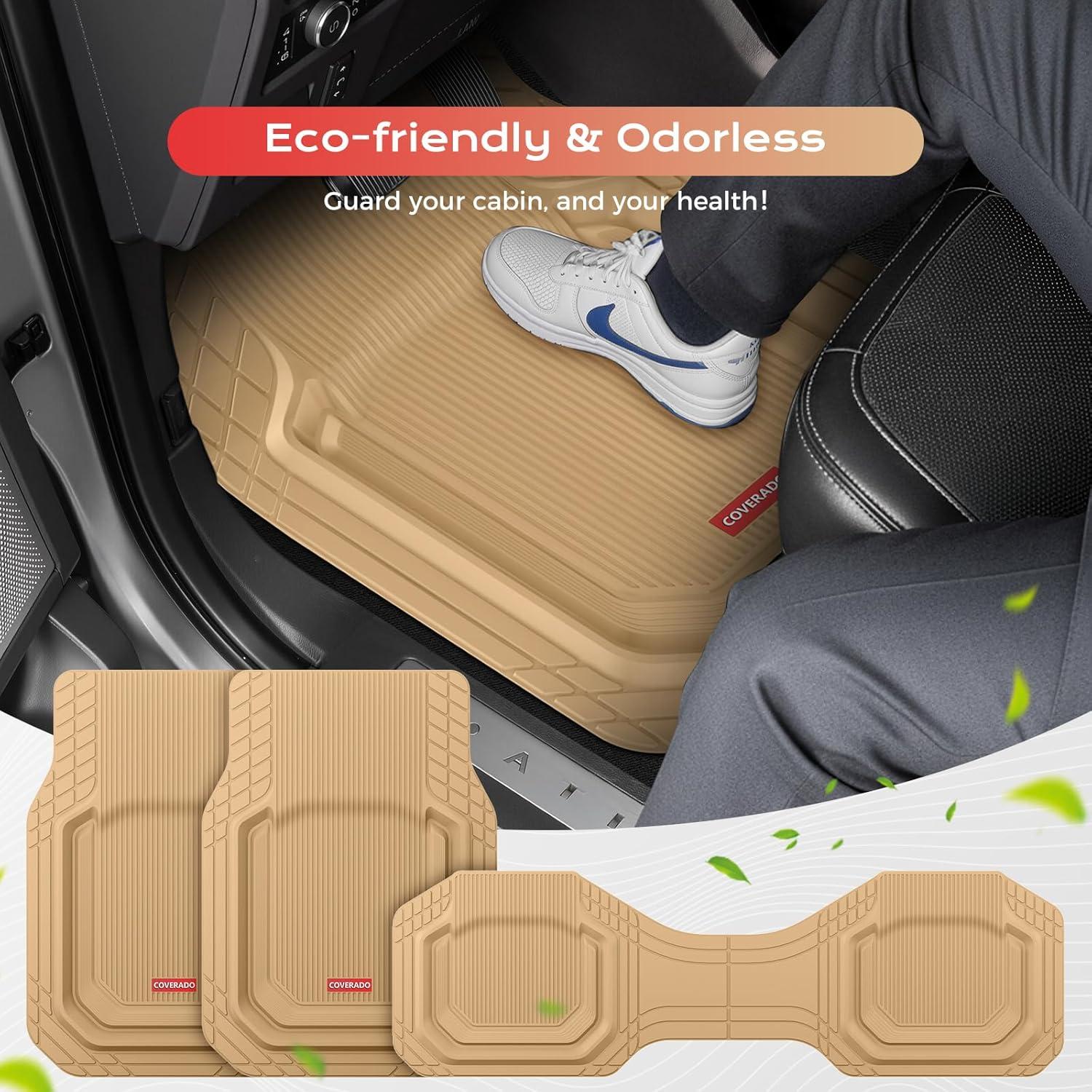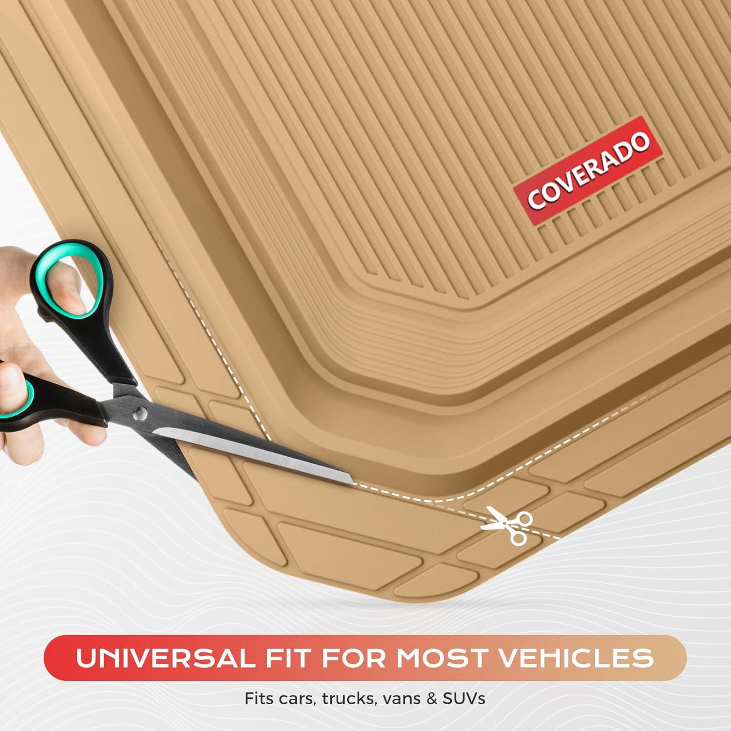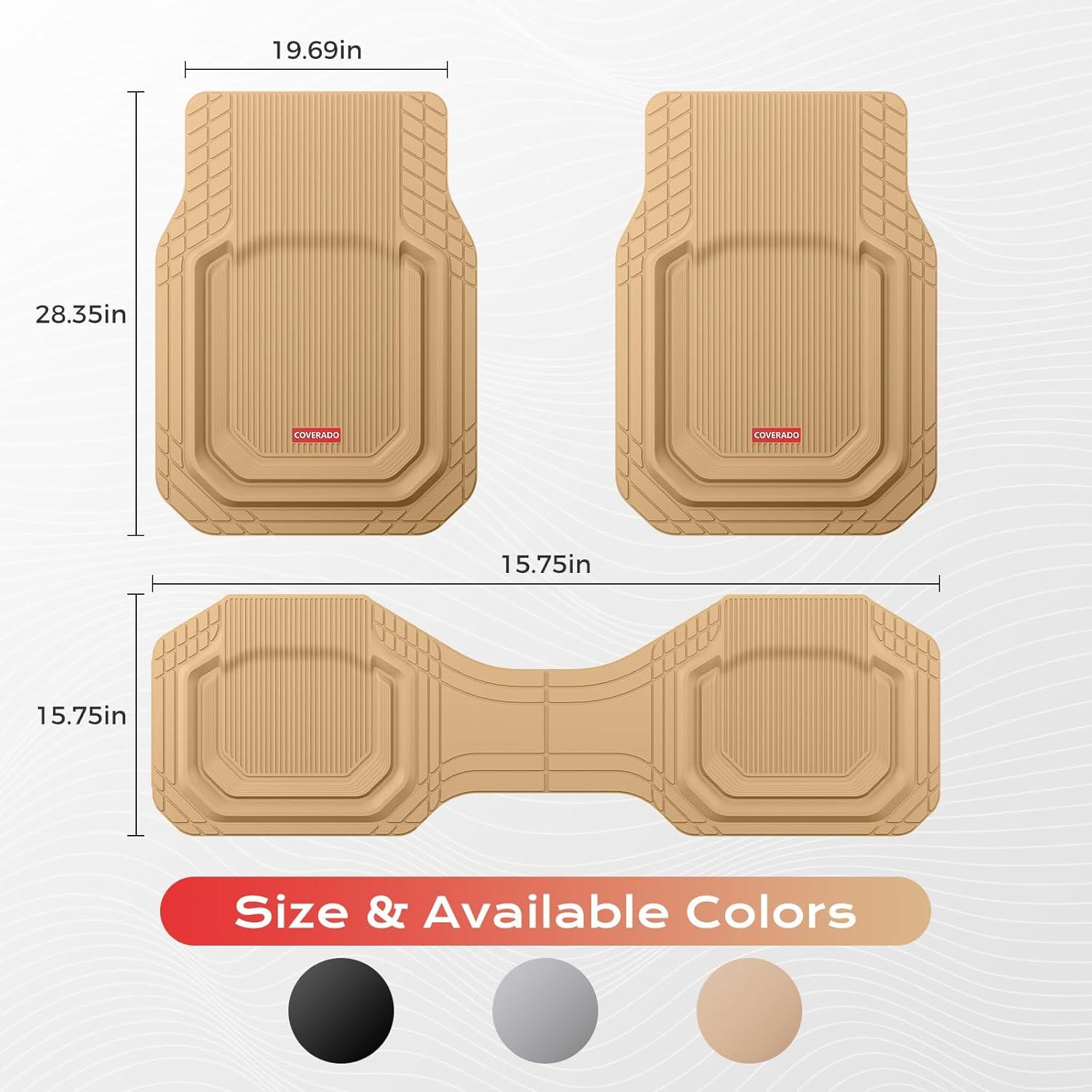 Coverado Floor Mats for Cars, Deep Dish All-Weather Beige Mats, Universal Waterproof Trim to Fit Automotive Mats for Cars SUV Trucks, Durable Floor Liner Car Accessories, Full Sets, 3PCS(Beige)