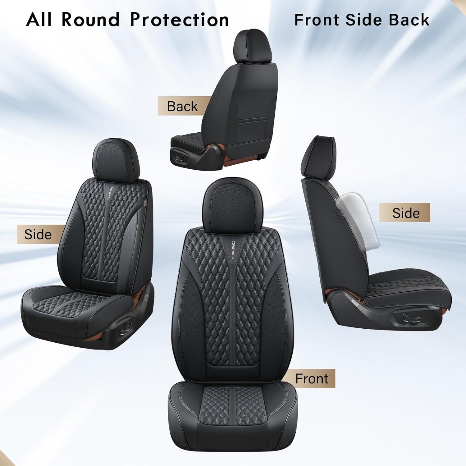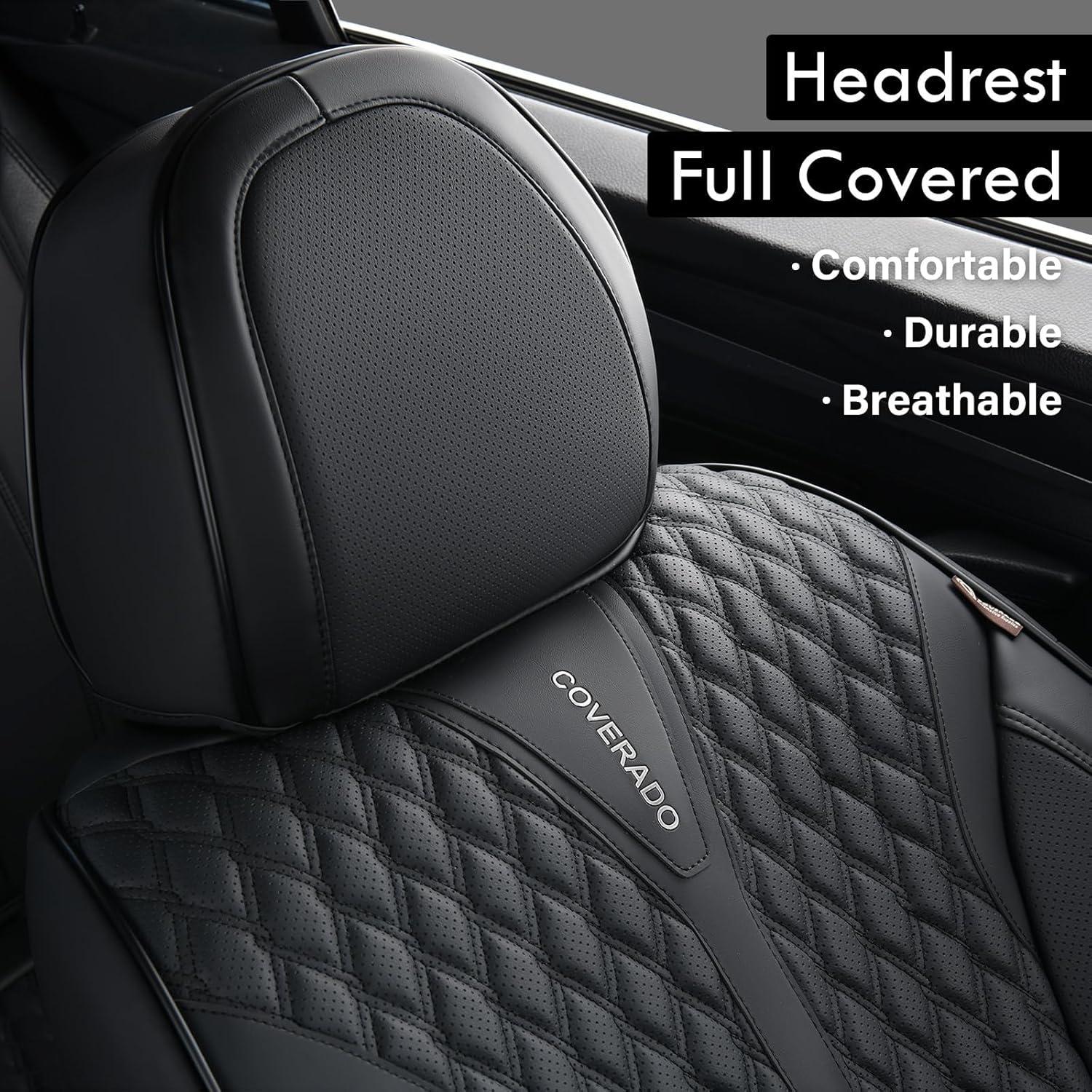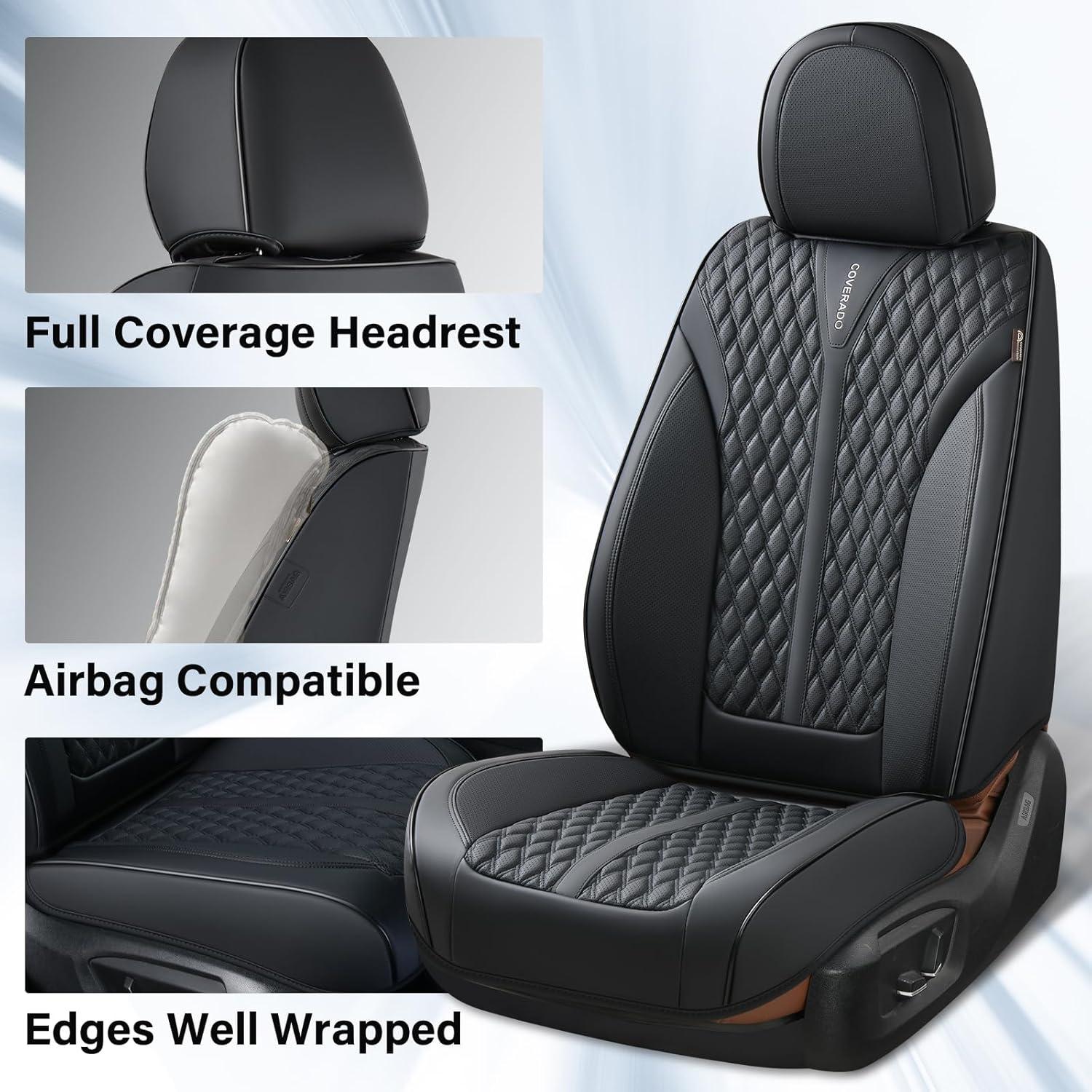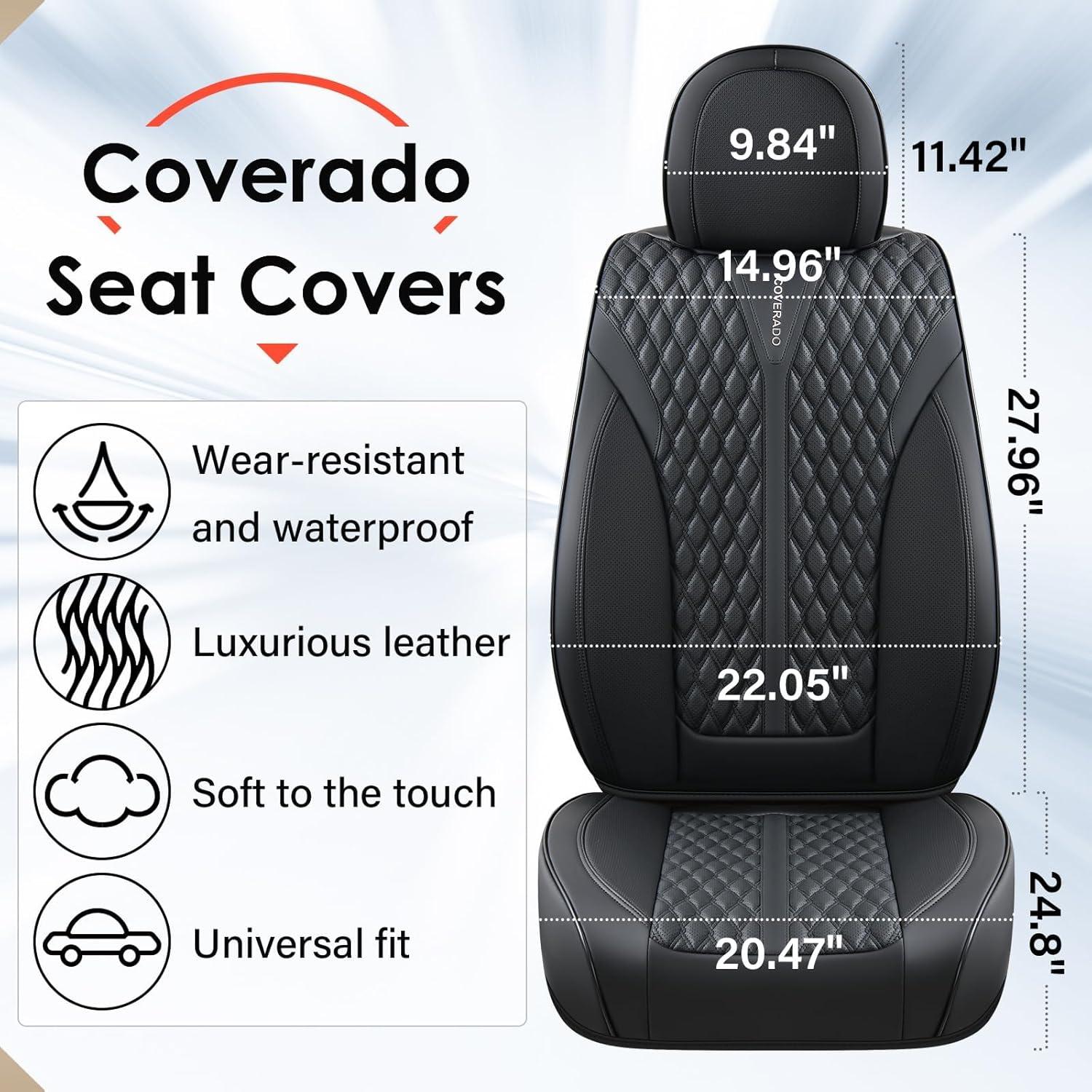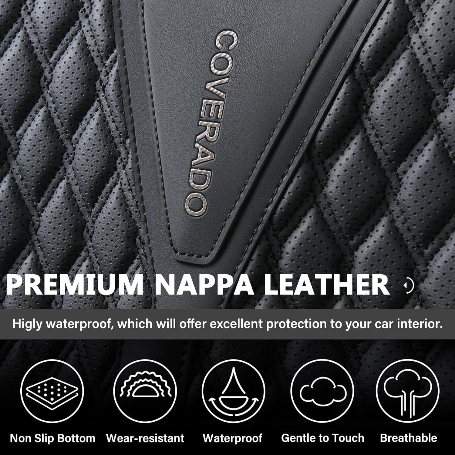 BREATHABLE LEATHER: Coverado seat covers are made of perforated NAPPA LEATHER and durable faux leather with high resilience density foam padding. These leather seat covers are not only stylish, but also breathable and skin-friendly. They stay dry and cool even on hot summer days, keeping you away from stuffiness and discomfort