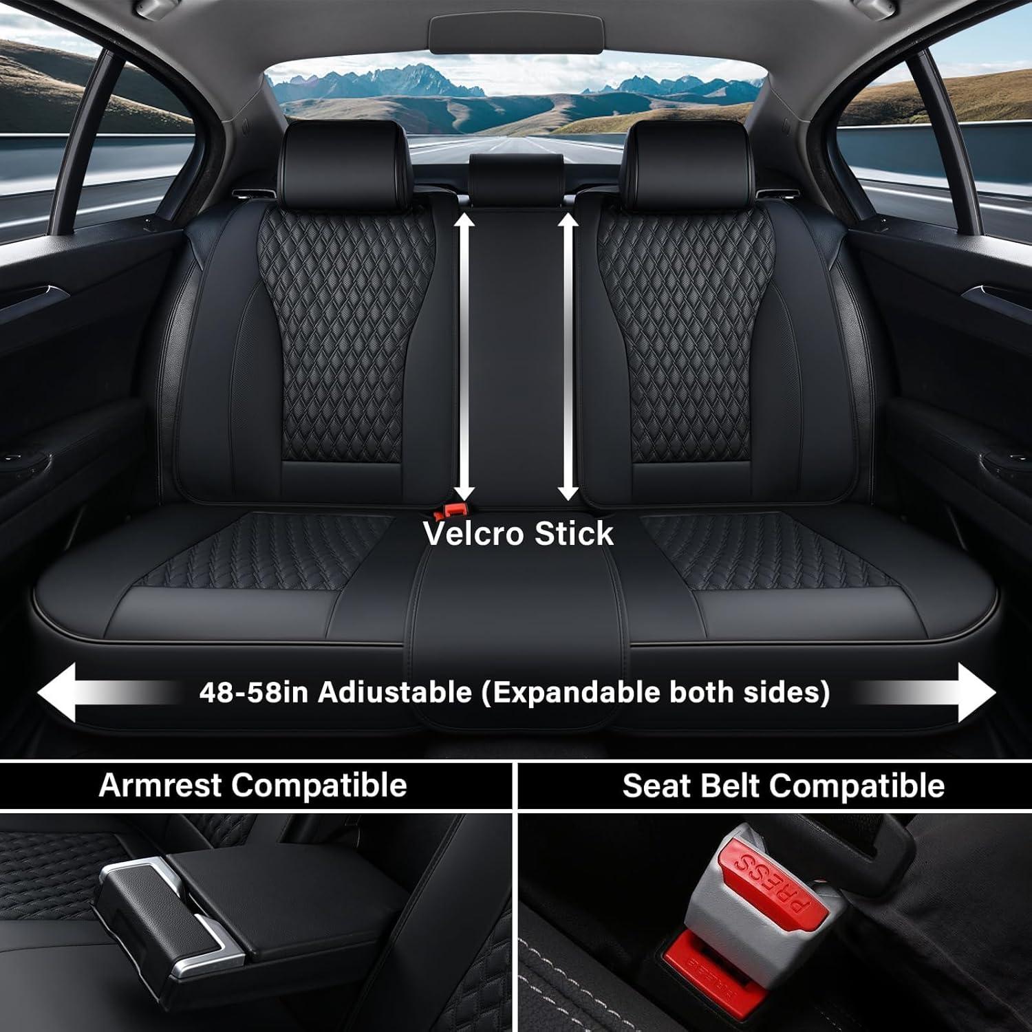 EASY INSTALLATION : Front seat covers can be secured by chucks and hooks. The velcro-together 3-piece rear seat covers can be secured by 2 methods, details as video or user manuel. The middle pieces can be adjustable to fit different seat widths. The bottom of the seat cover is non-slip and will not slide or shift after installation