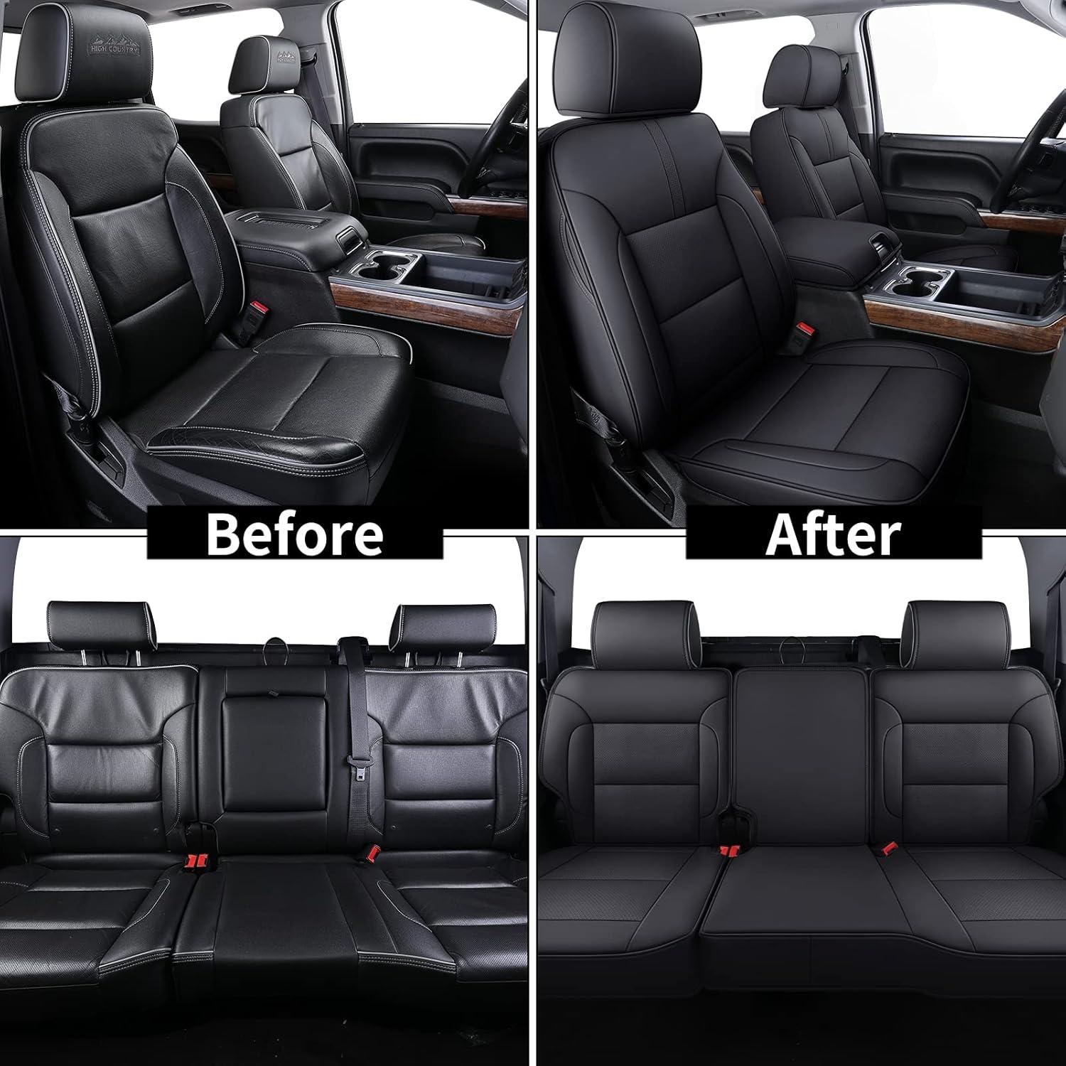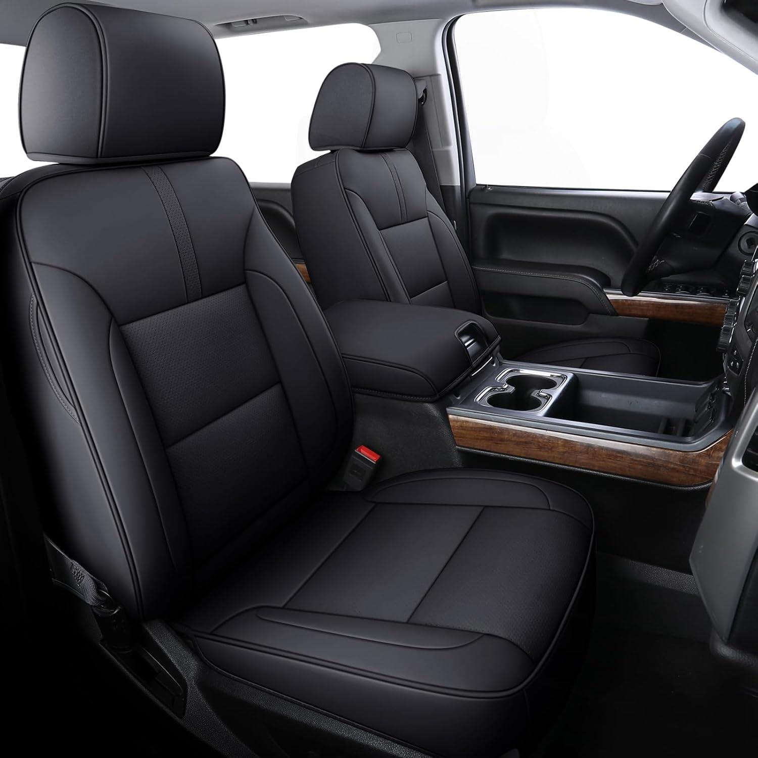 Coverado Full Set Seat Covers Faux Leather(Black) Easy Install,Waterproof, Custom Fit Chevy Silverado/GMC Sierra (2007-2013/2019-2025 1500; 2020-2025 2500HD/3500HD) Crew/Double/Extended Cab(Black-new)