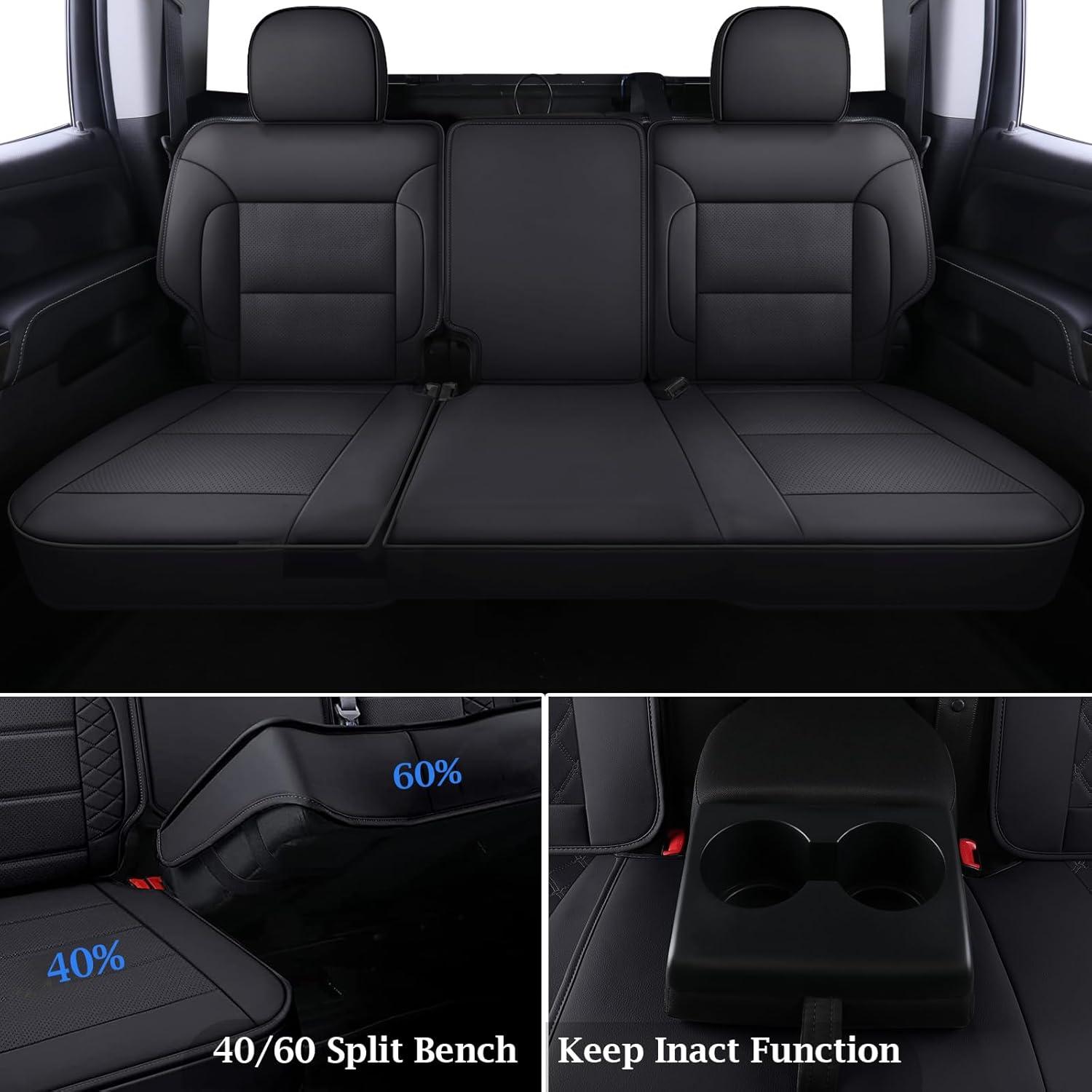 Coverado Full Set Seat Covers Faux Leather(Black) Easy Install,Waterproof, Custom Fit Chevy Silverado/GMC Sierra (2007-2013/2019-2025 1500; 2020-2025 2500HD/3500HD) Crew/Double/Extended Cab(Black)