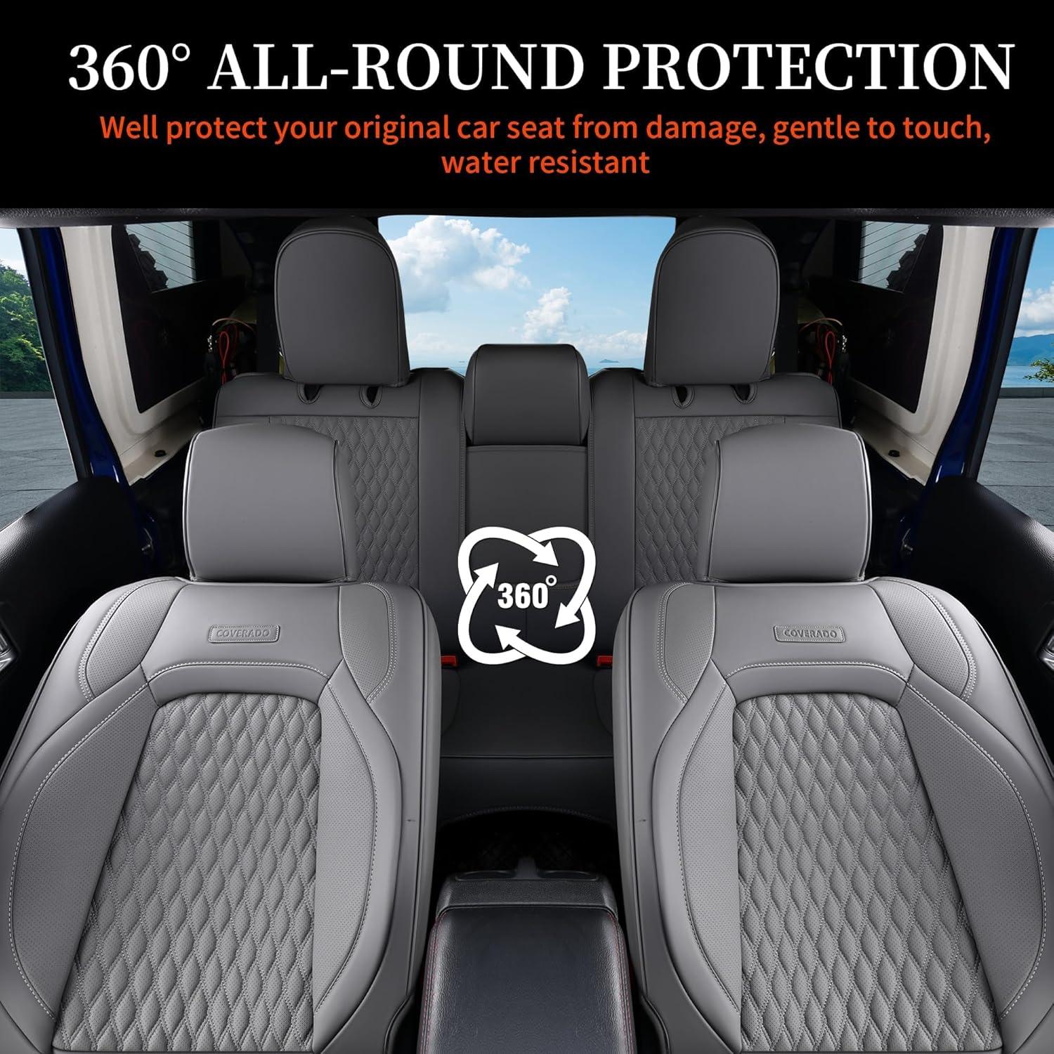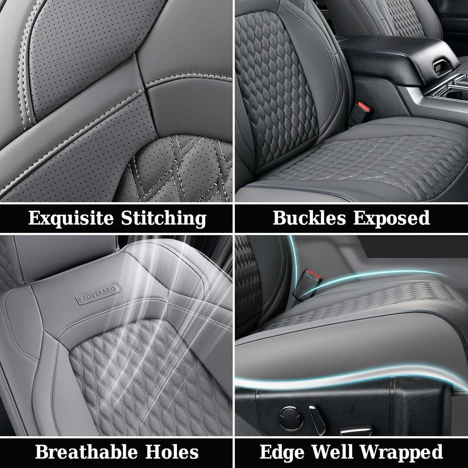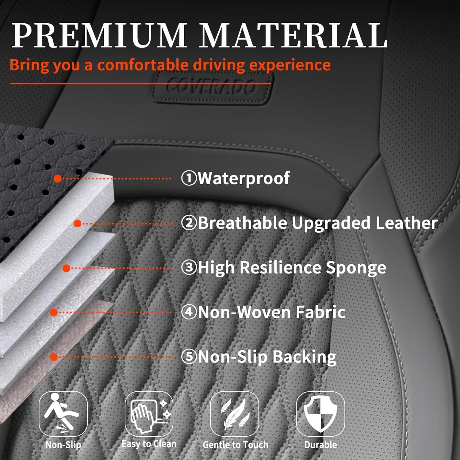 【Premium Faux Leather】Full Coverage Coverado Seat Covers are made of breathable, lightweight, wear-resistant, waterproof, UV-resistant premium durable faux leather fabric with high resilience density foam padding for softer and more comfortable sitting. The automotive seat covers for trucks fit like a glove and never slip, allowing you to enjoy a comfortable ride. These car seat protector are stylish and modern, adding a touch of fashion and luxury to your car interior