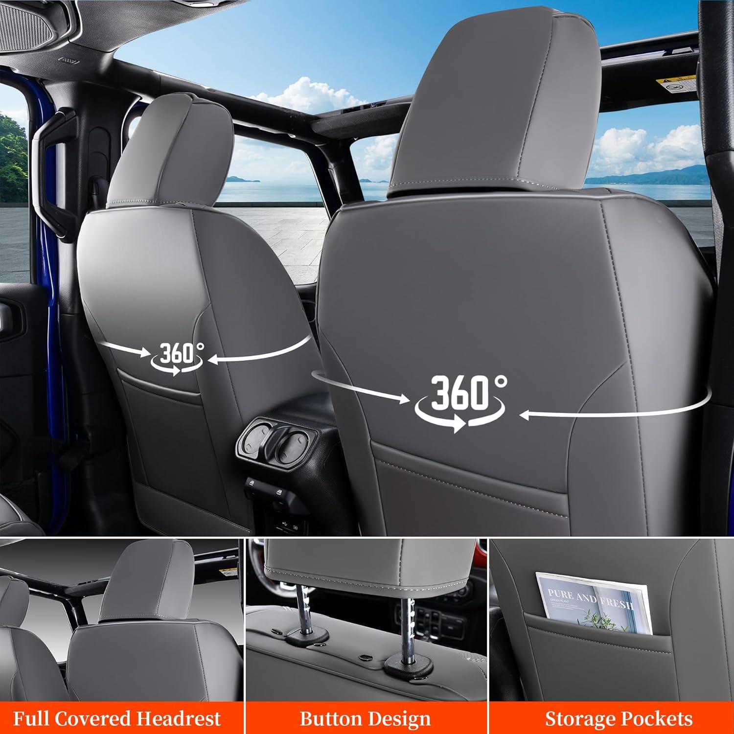 Coverado JK Seat Covers 4 Door Fullset for Jeep Wrangler, Waterproof Leather Car Seat Protector for Truck Automotive Seat Custions Custom Fit for 2013-2017 Jeep Wrangler Full Coverage(Gray)(Gray)