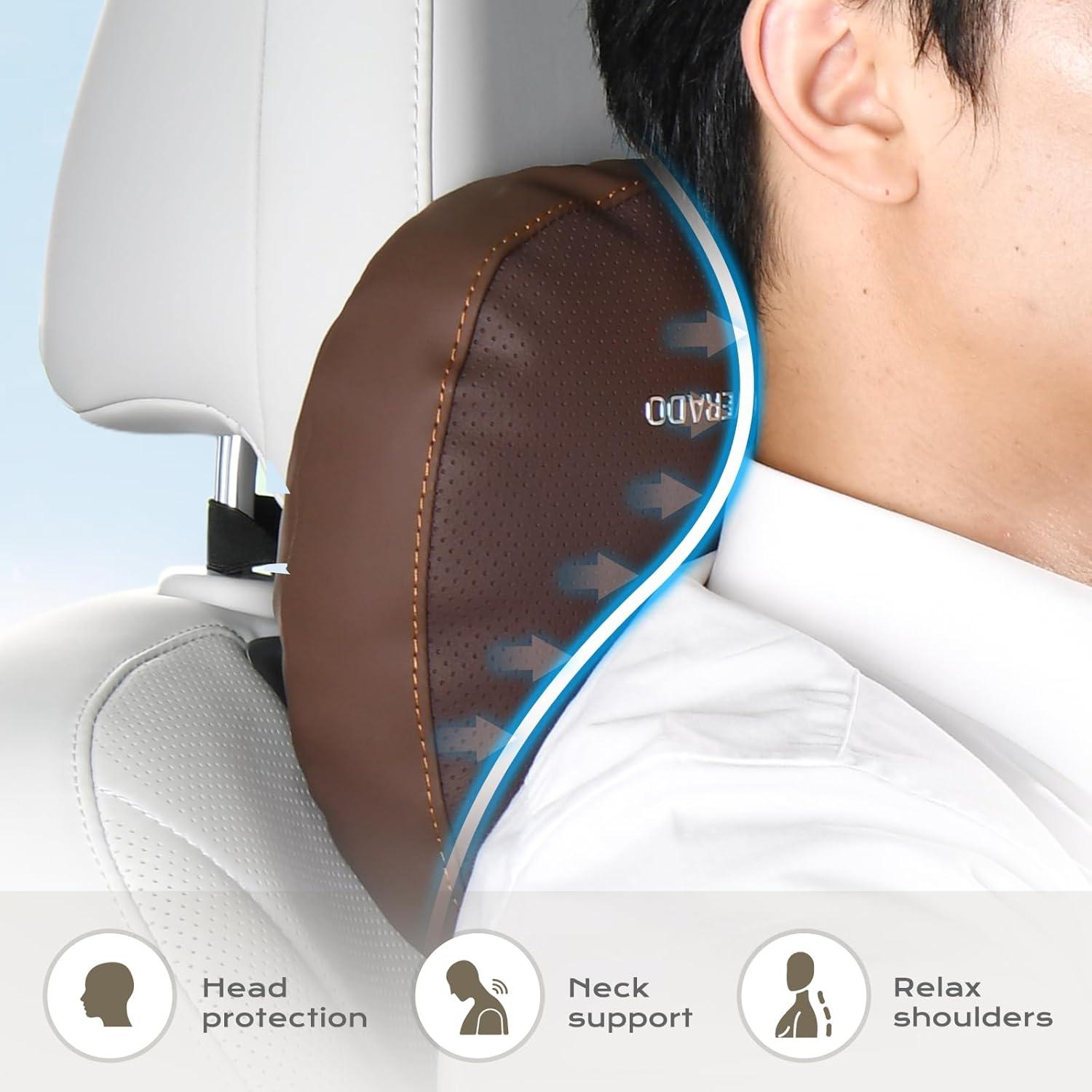 Coverado Leather Car Headrest Pillow Car Neck Pillow with Adjustable Strap, Head Support Rest Driver Relax Head Muscles Relieve Driving Fatigue, Breathable & Removable Cover, Gray