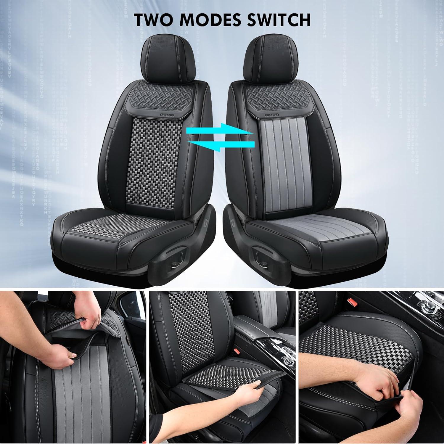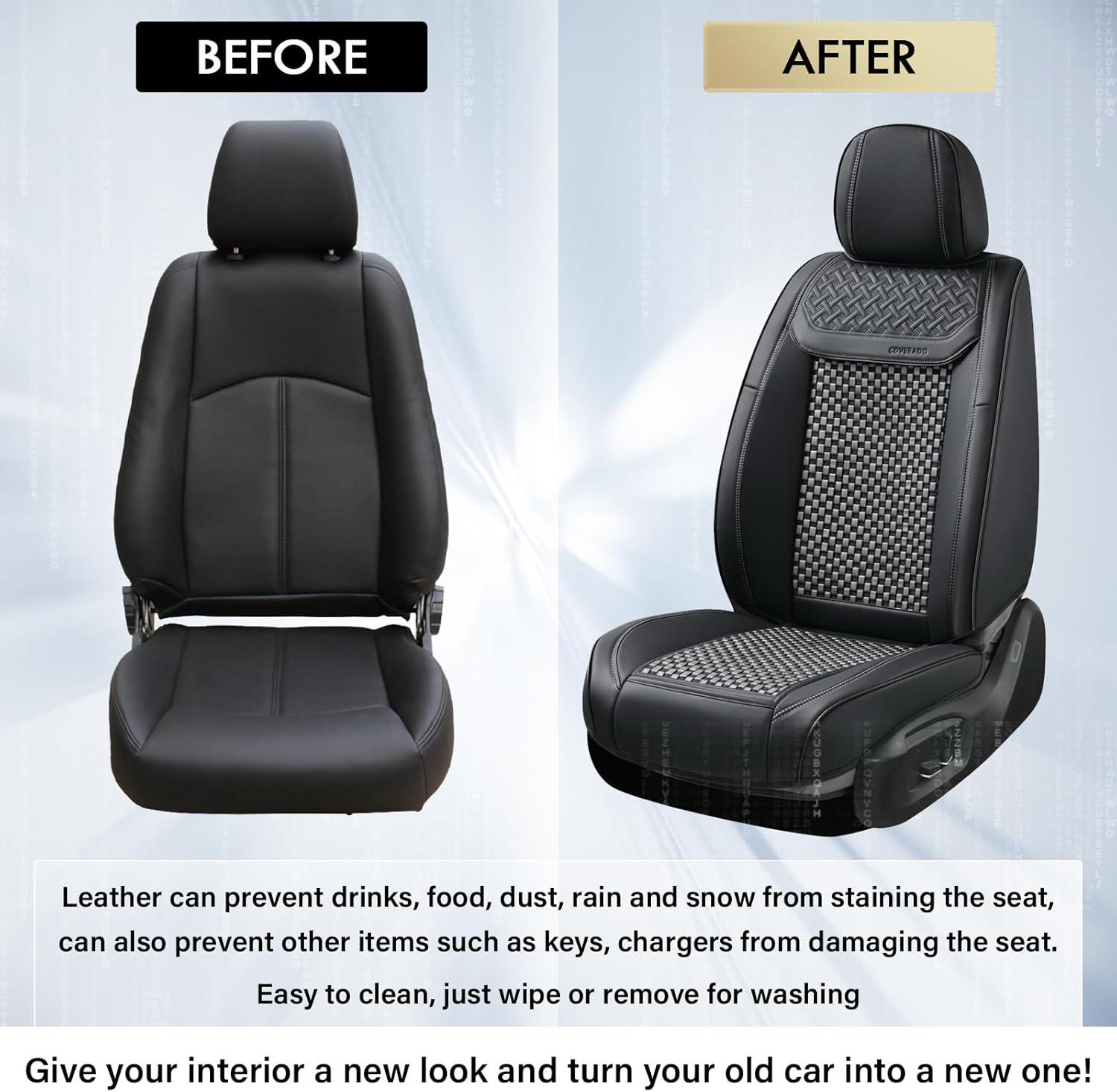 Coverado Leather Front Seat Covers, 2-Pack Universal Waterproof Breathable Leather Woven Leatherette Seat Cushions, Auto Car Seats Protectors, Fit for Most Vehicles-Blackpure(B-2in1Black&Gray)